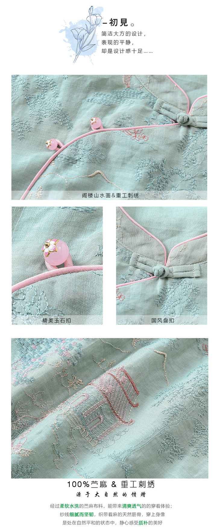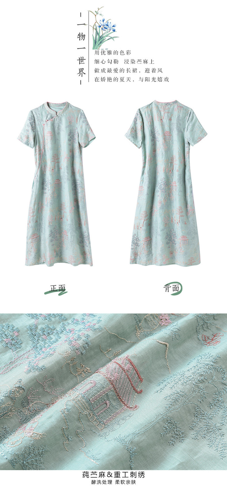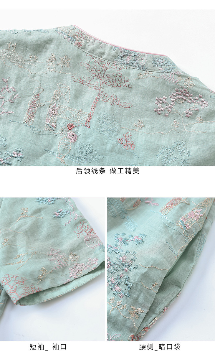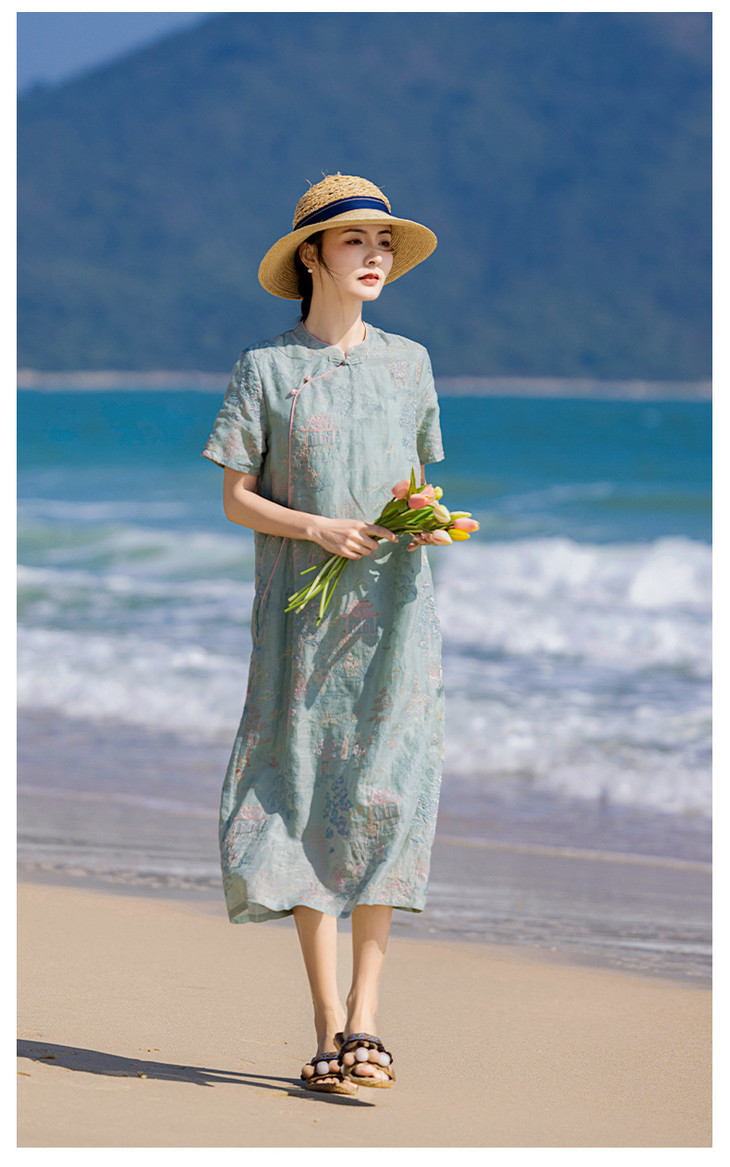 春夏新款中国风楼阁刺绣苎麻改良旗袍文艺连衣裙YM-S470