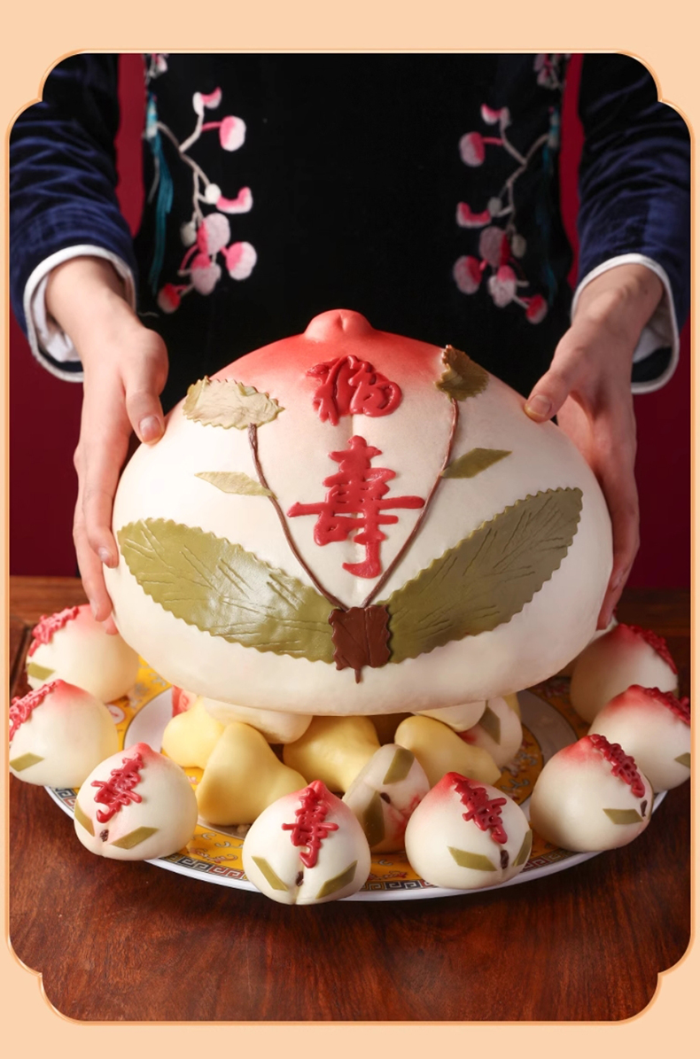 御茶膳房寿桃馒头生日礼盒福寿双全过寿糕点老人祝寿蛋糕大寿桃包