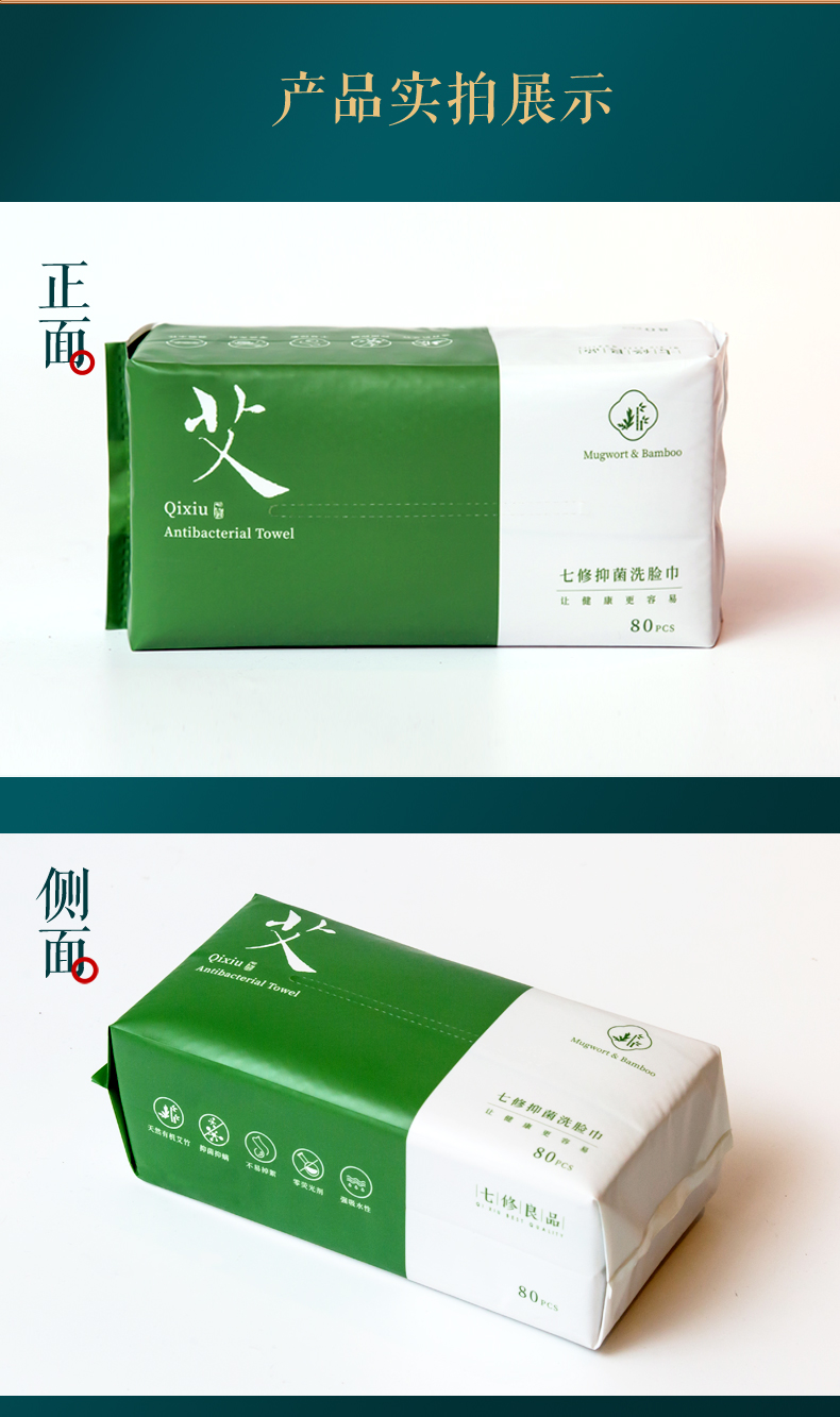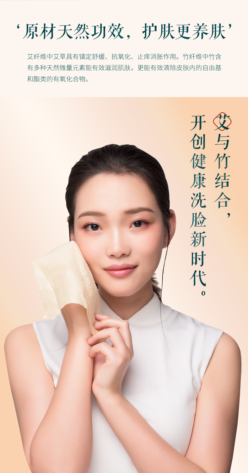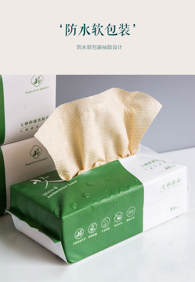 (送体验装)原生态艾草和竹子制成的抑菌洗脸巾 80片/包