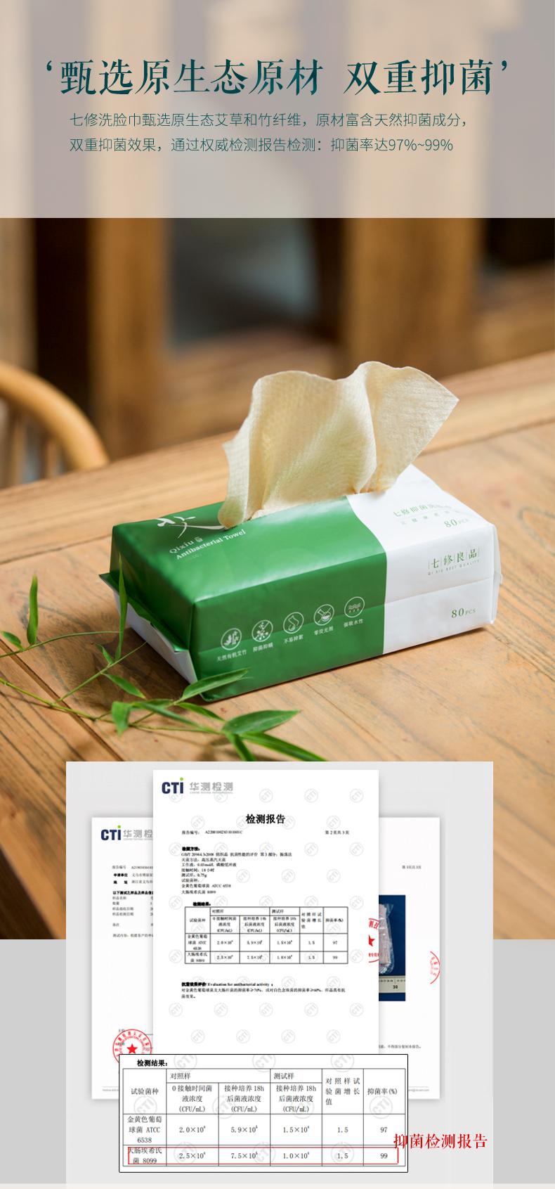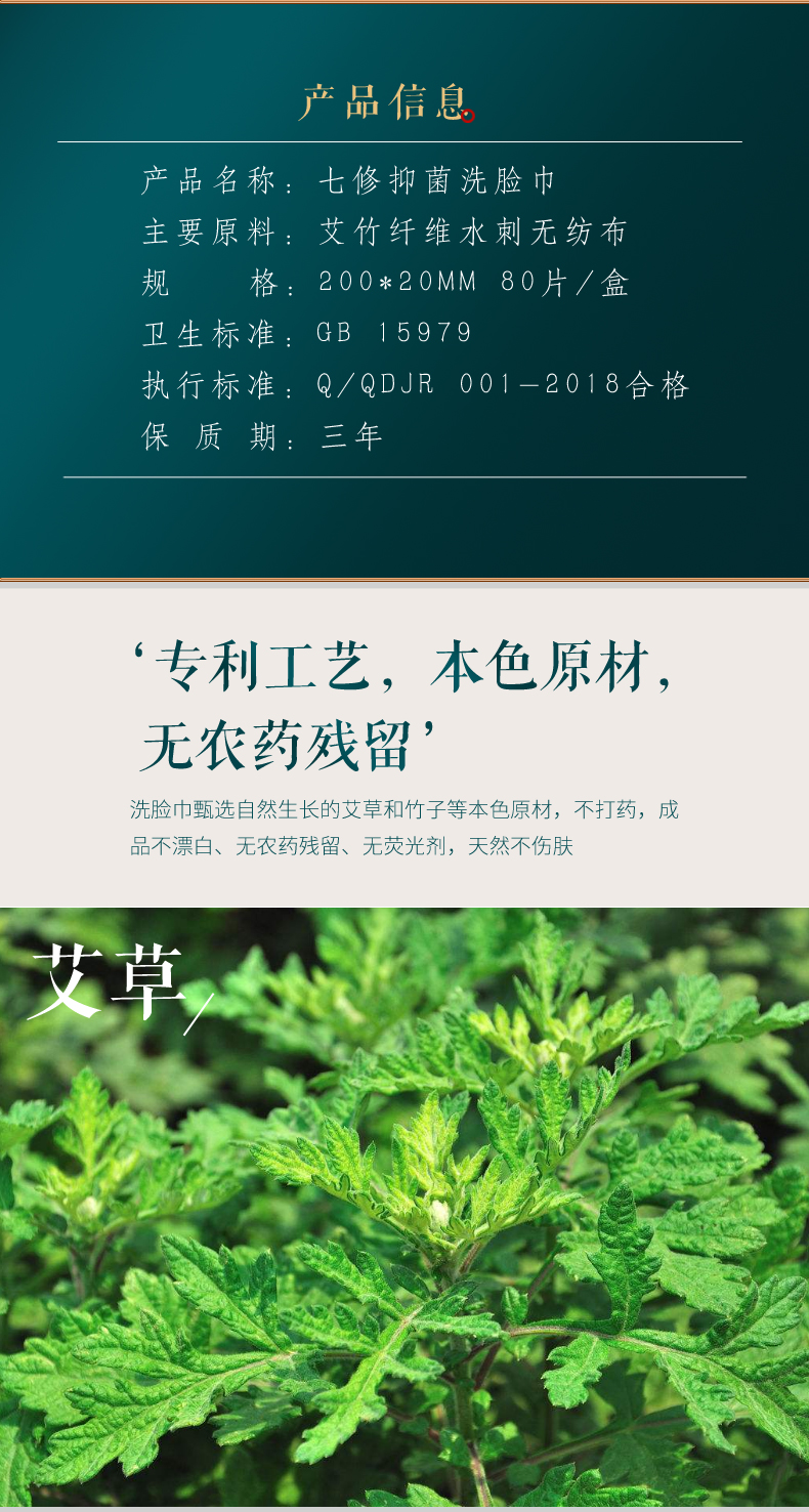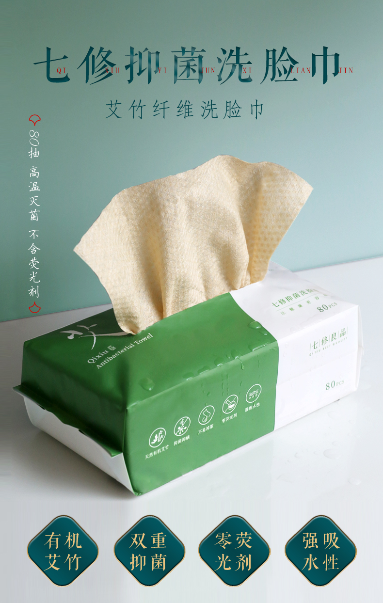 (送体验装)原生态艾草和竹子制成的抑菌洗脸巾 80片/包