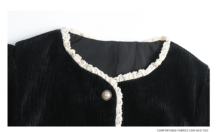 V领荷叶边洋气修身,显瘦丝绒长袖小衫KQL-2365
