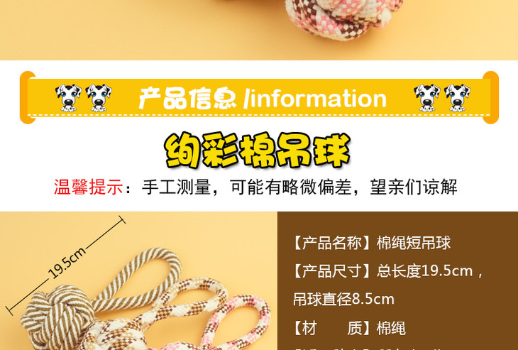 宠物狗狗玩具 棉绳球手提球手拉式单吊球玩具 磨牙猫玩具宠物用品