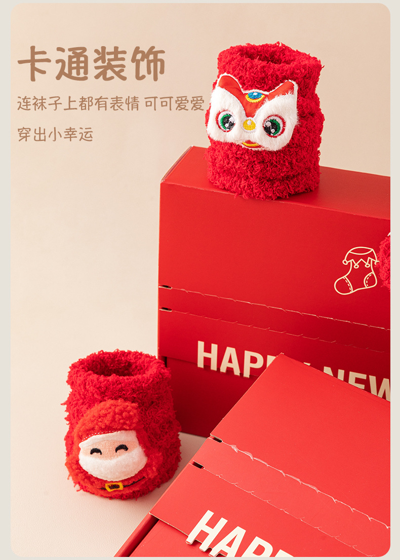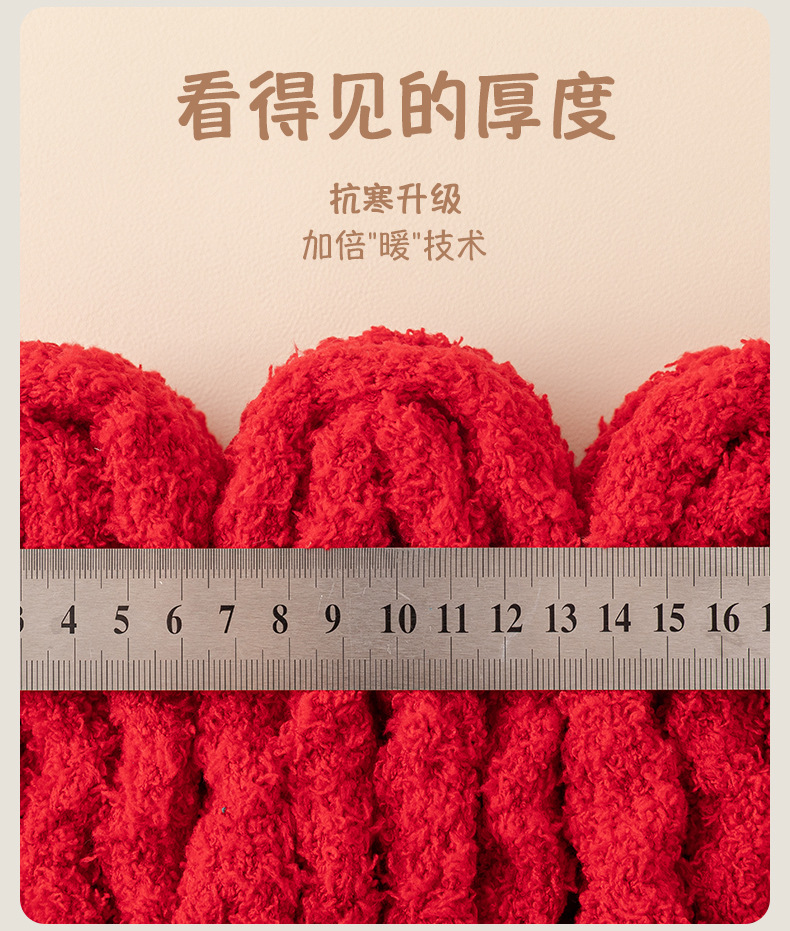 【新年珊瑚绒袜子女】冬季加厚保暖 本命年毛毛睡眠袜 圣诞新年红色礼盒