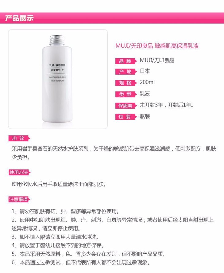 【保税仓】MUJI/无印良品 敏感肌用乳液高保湿型 200ml