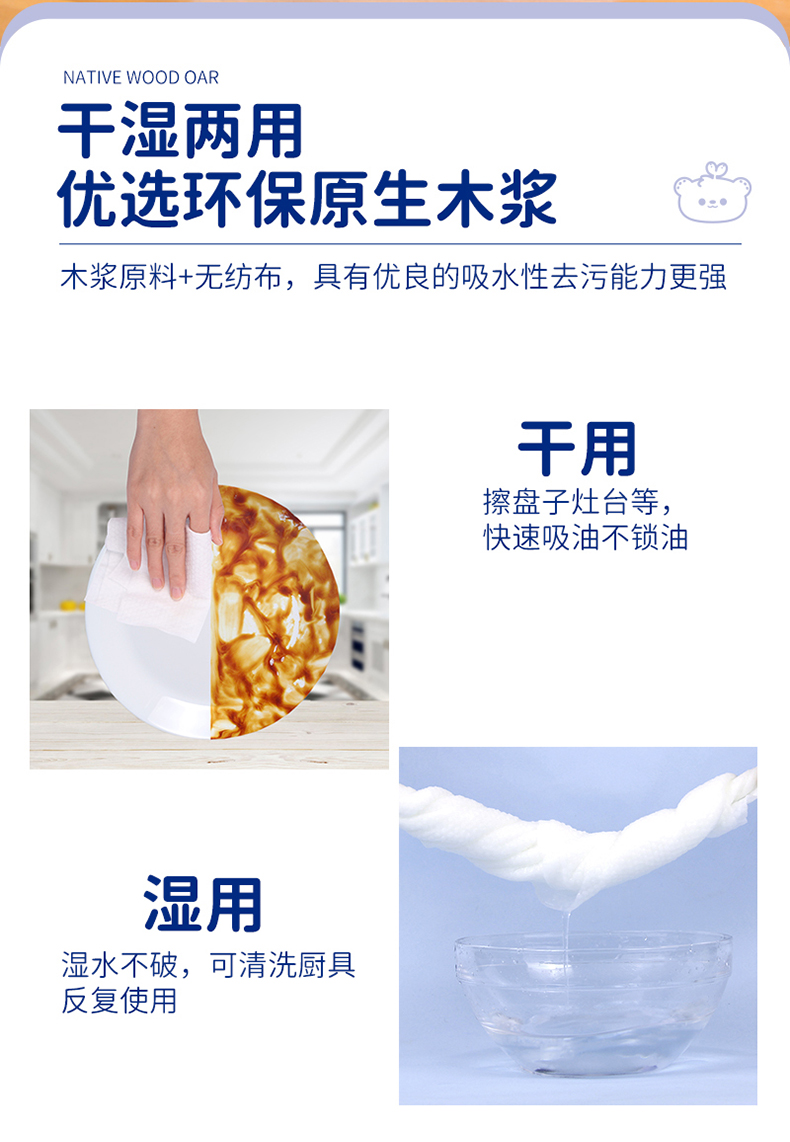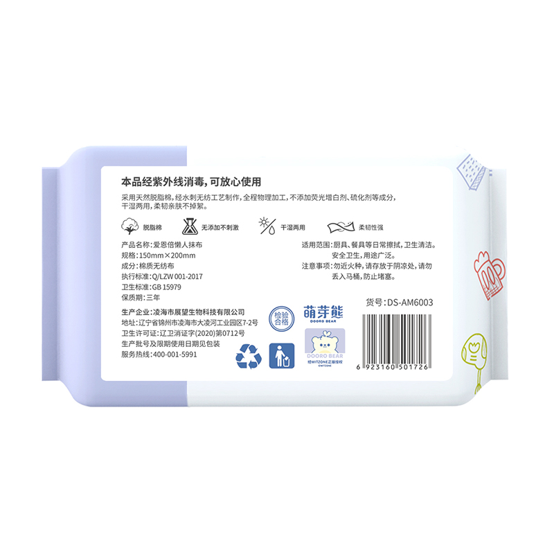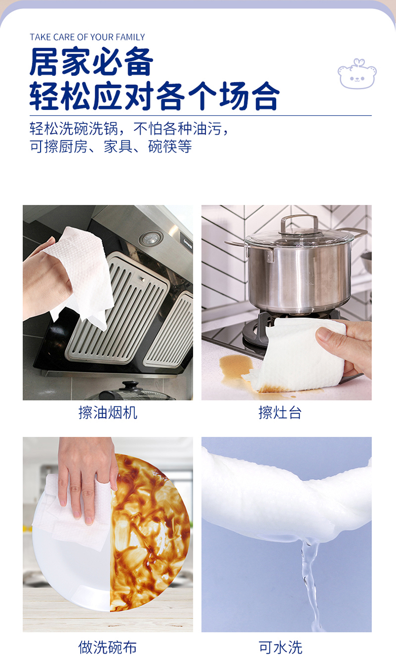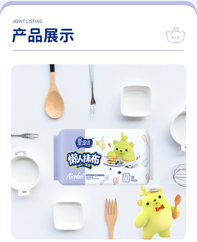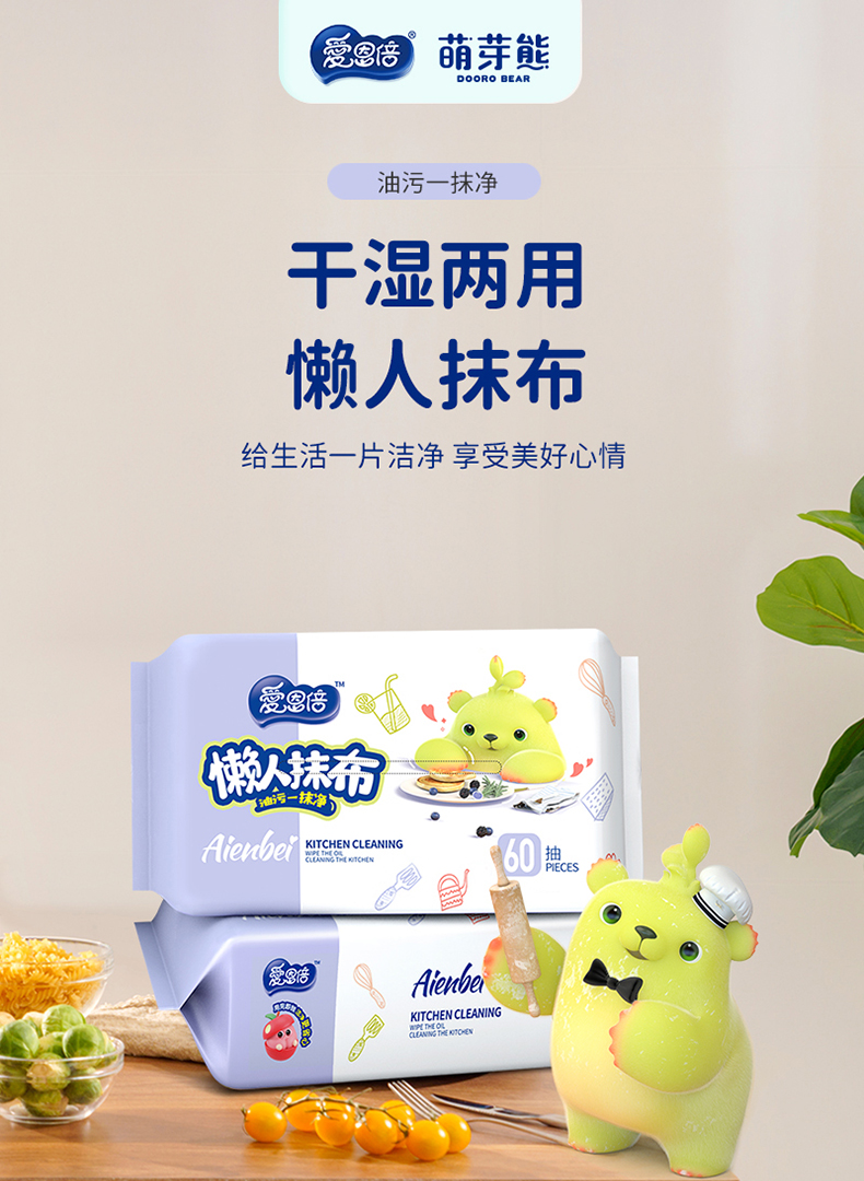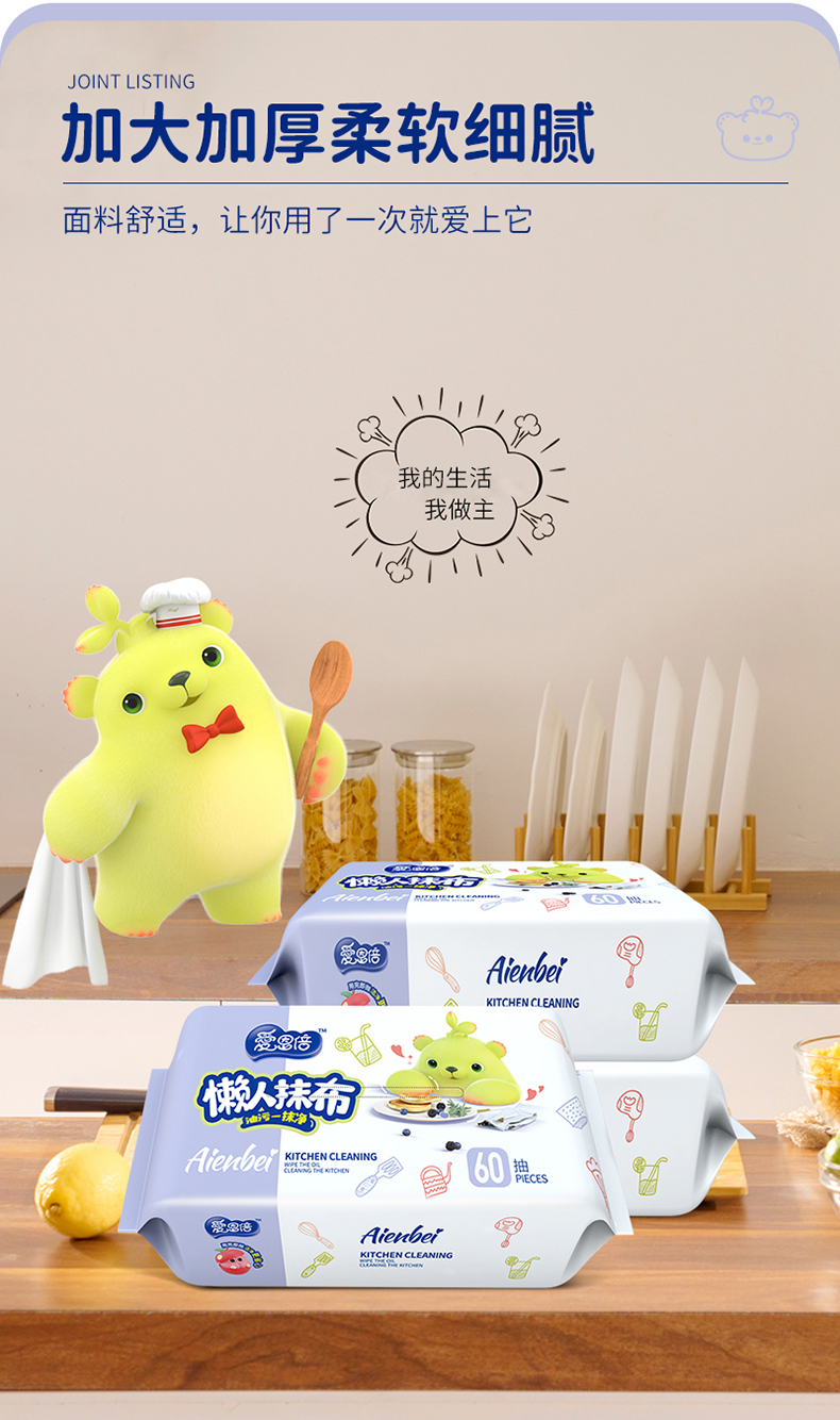 爱恩倍懒人抹布(萌芽熊联名款)厨房一次性抹布洗碗布加厚加大60抽袋装 萌芽熊联名款60抽*3包