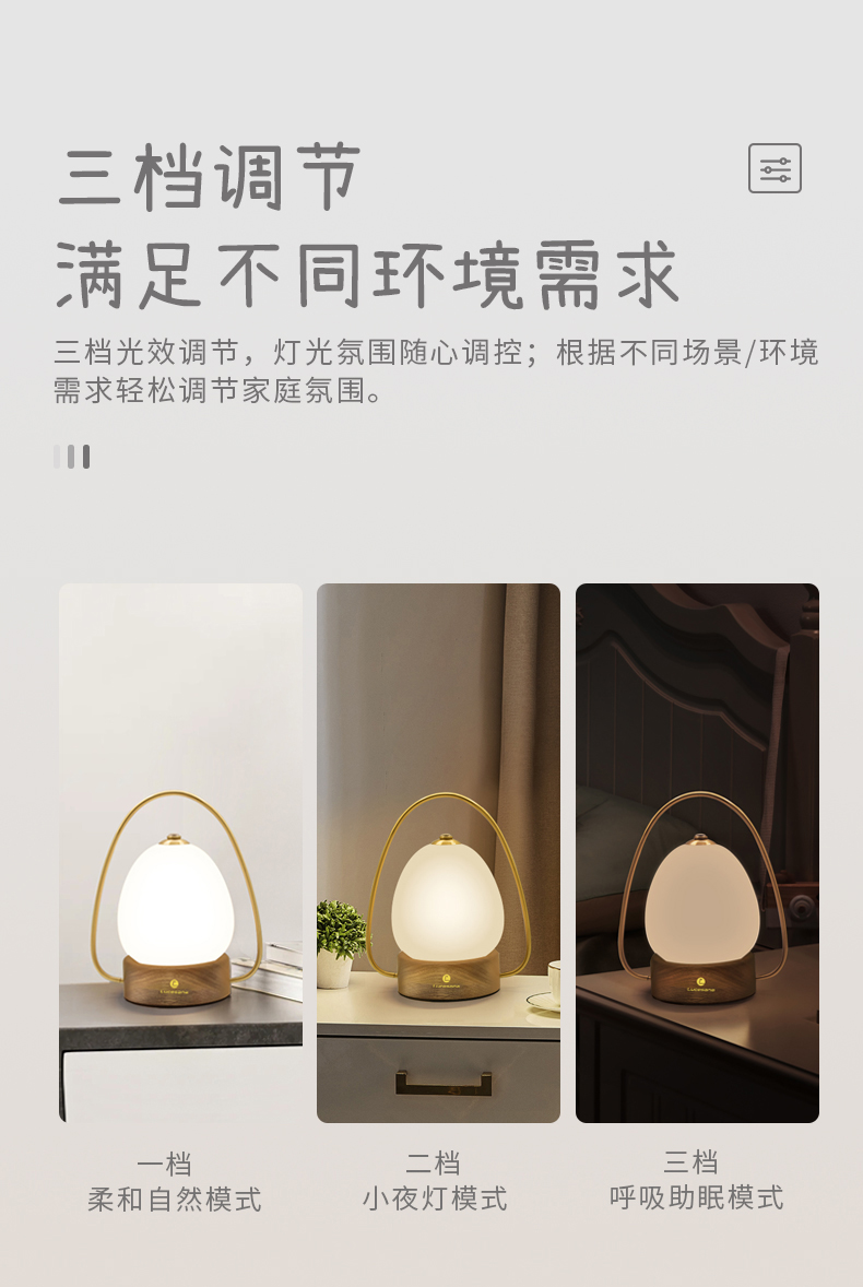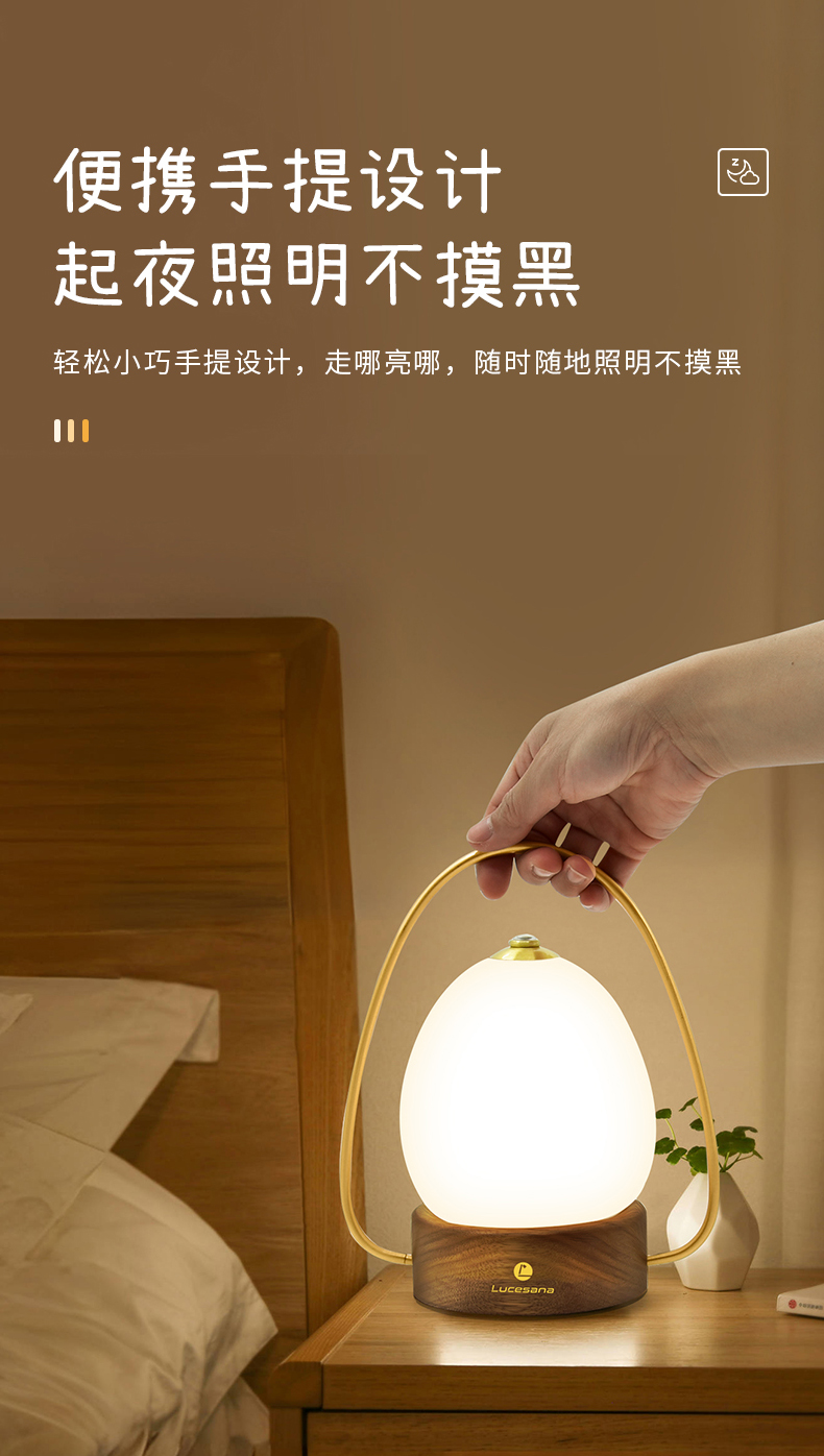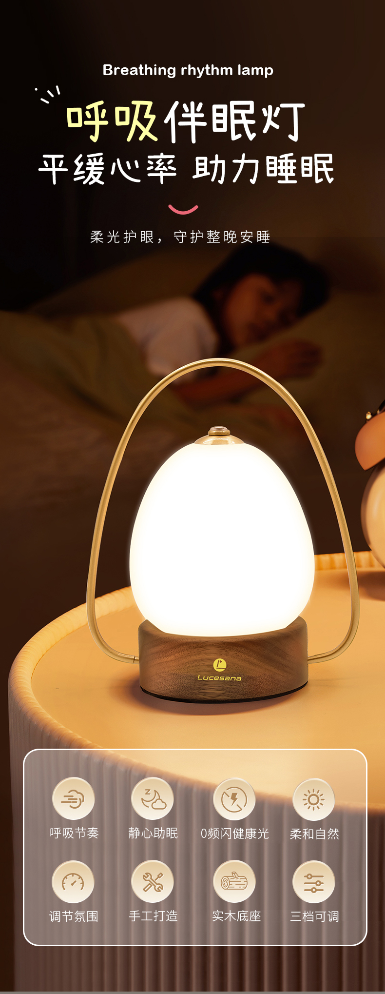 ⁶【呼吸睡眠灯】露营充电手提灯奶油风实木卧室台灯触摸喂奶护眼小夜灯伴眠呼吸灯SS06-QTT-LPS