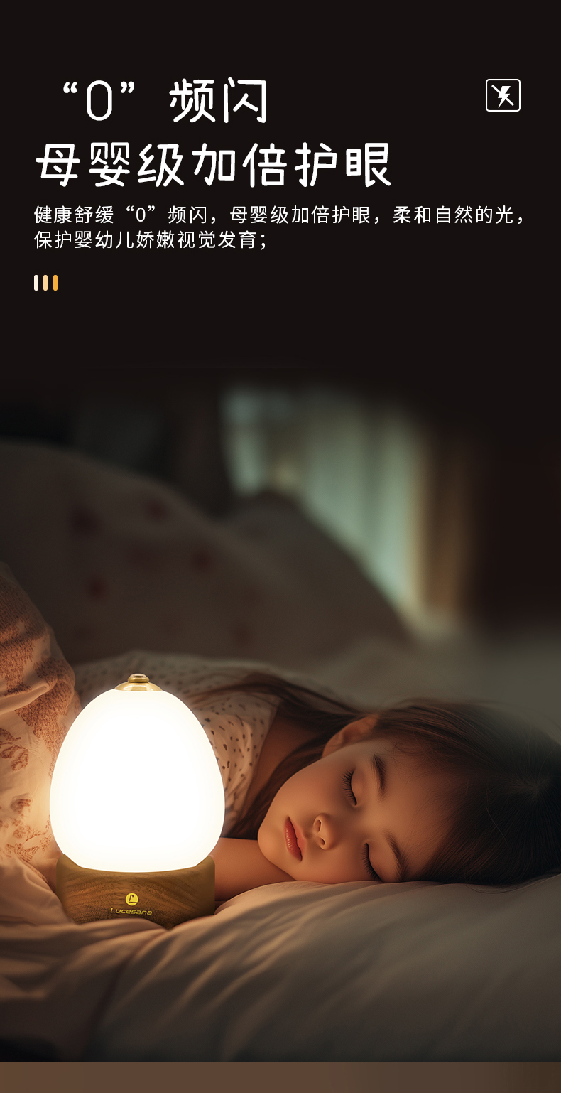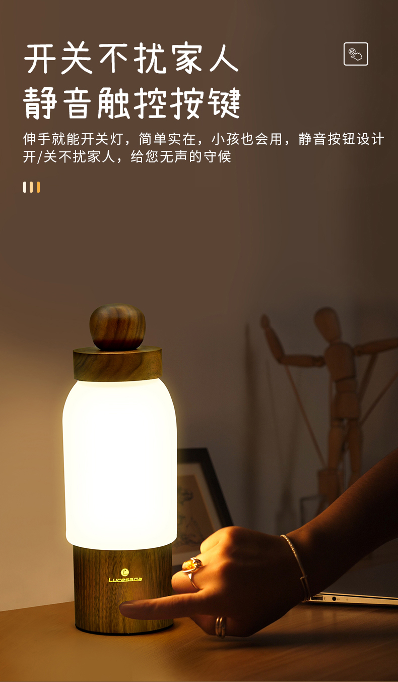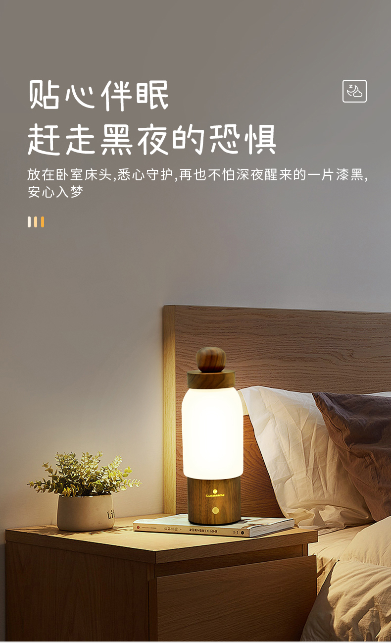 ⁶【呼吸睡眠灯】露营充电手提灯奶油风实木卧室台灯触摸喂奶护眼小夜灯伴眠呼吸灯SS06-QTT-LPS