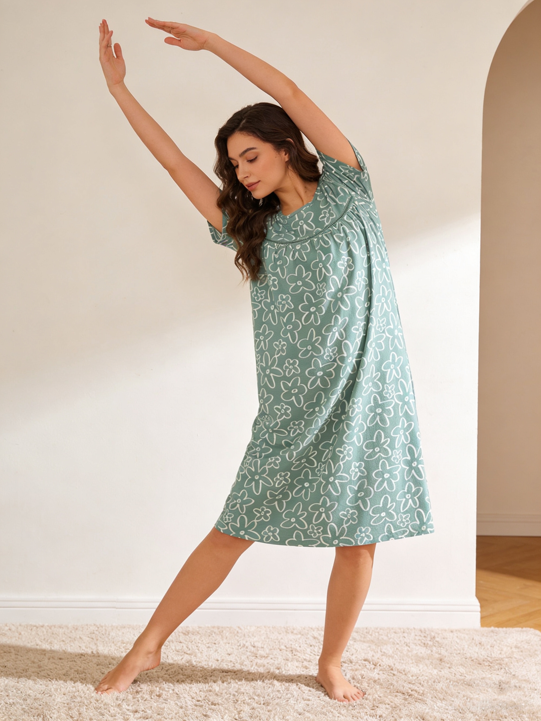 【32S棉莫单面布】SCHIESSER德国舒雅女士32S单面棉莫短袖连衣裙31/24800D