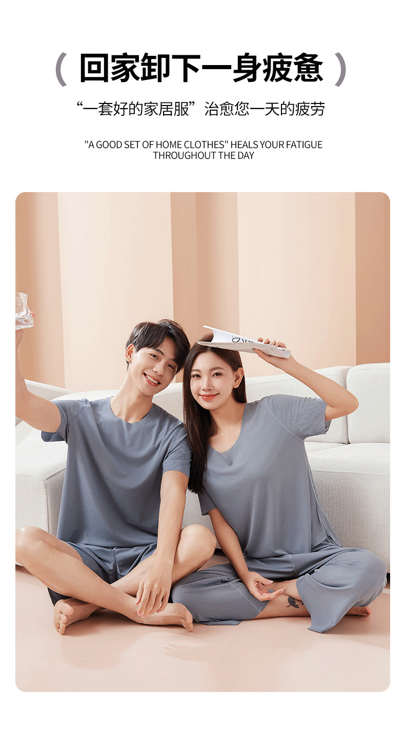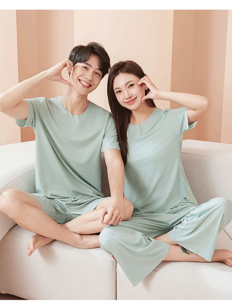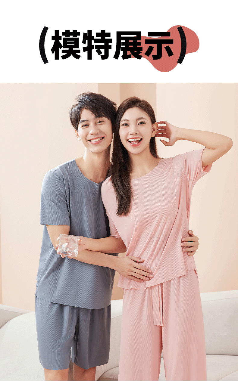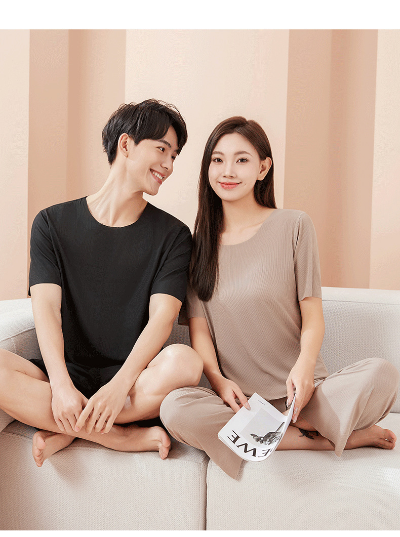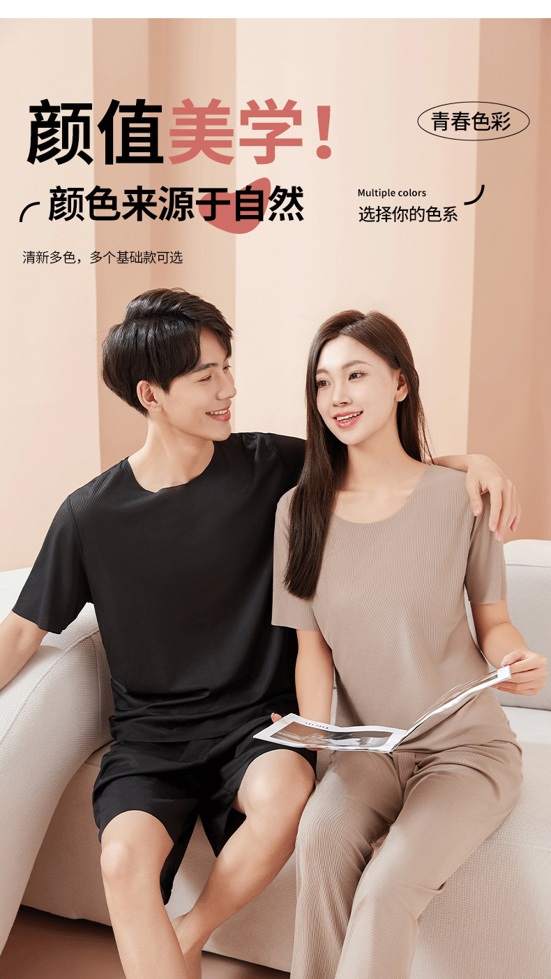 【休闲家居服❗可外穿】爆款无痕情侣睡衣女夏季冰丝清凉短袖圆领男女时尚家居服套装。rh