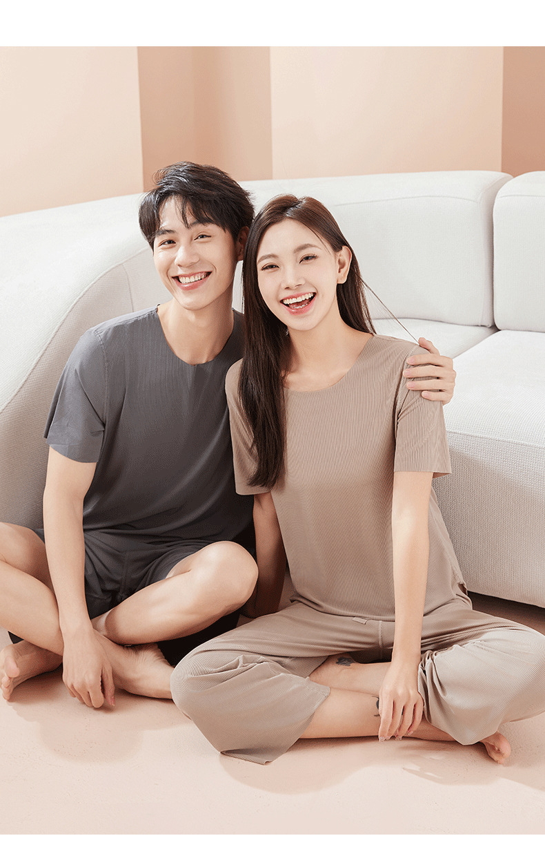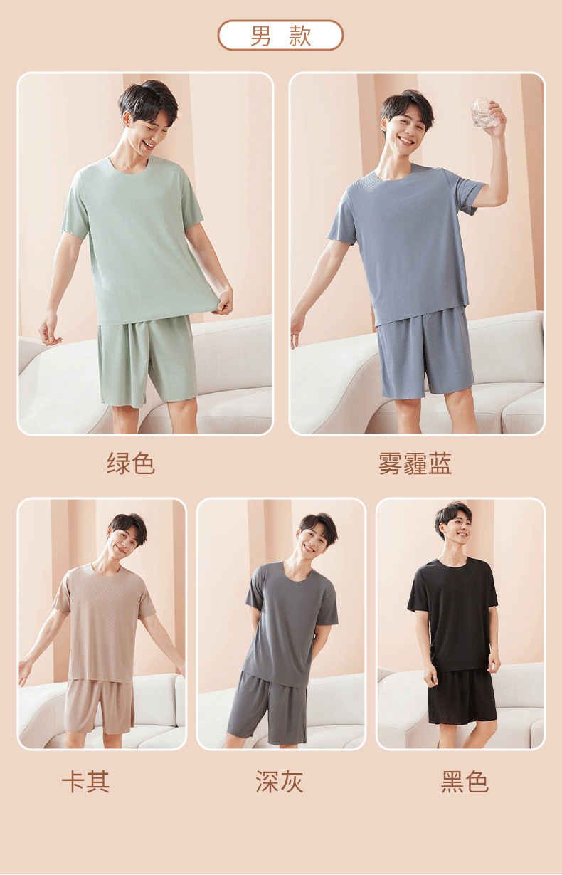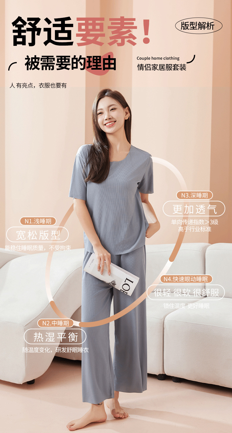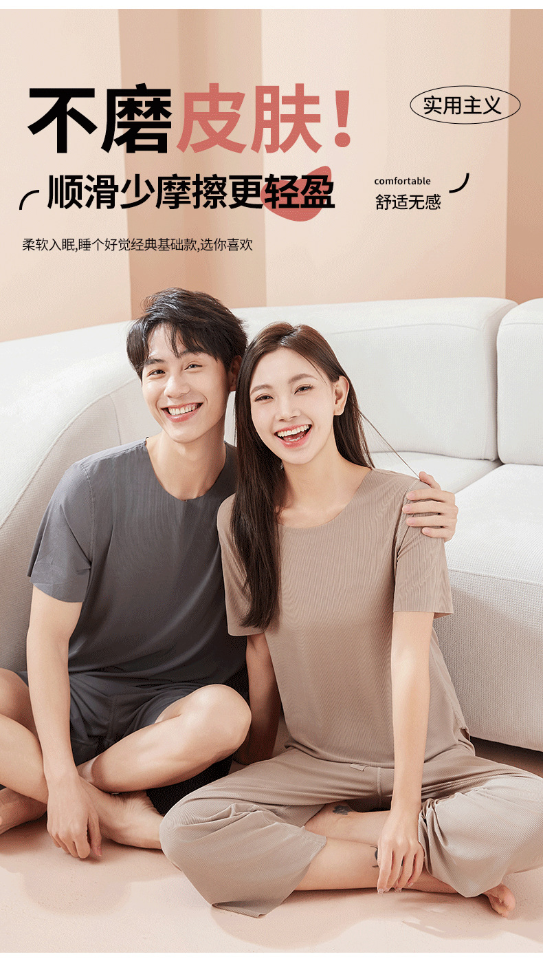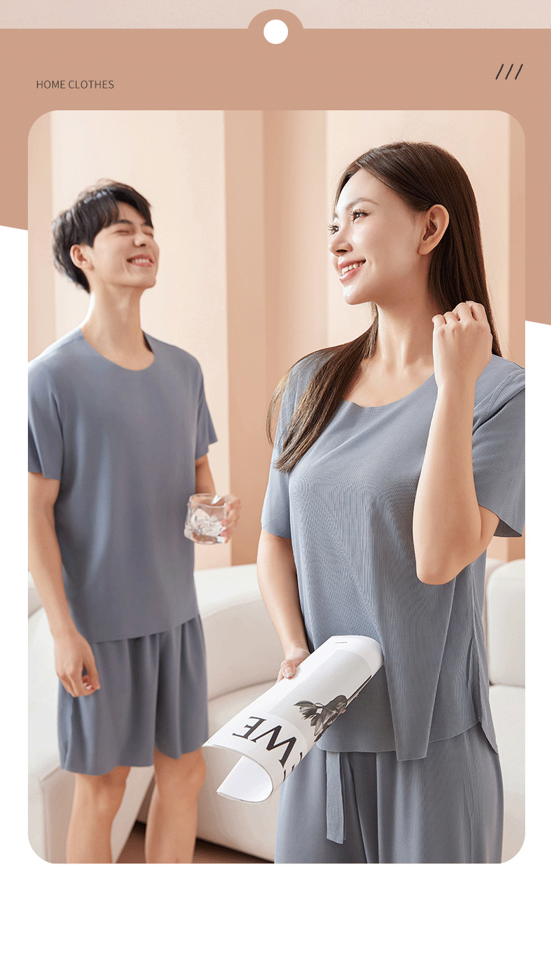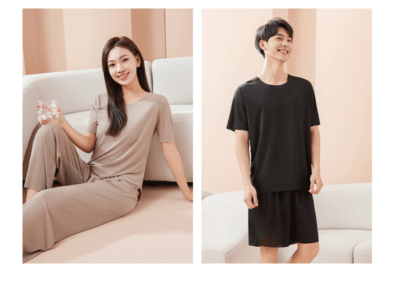 【休闲家居服❗可外穿】爆款无痕情侣睡衣女夏季冰丝清凉短袖圆领男女时尚家居服套装。rh