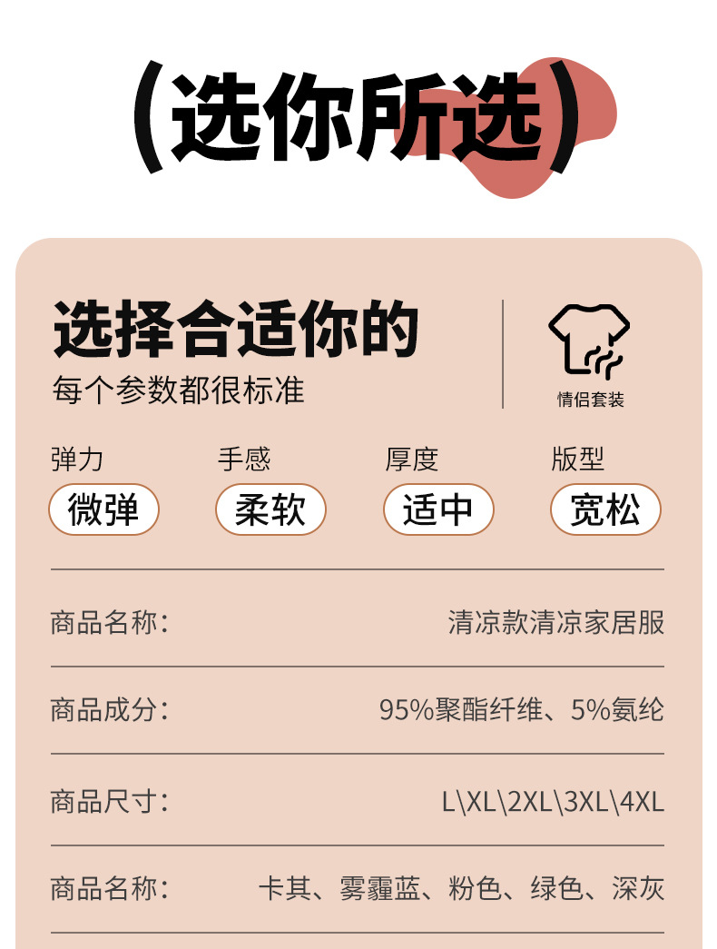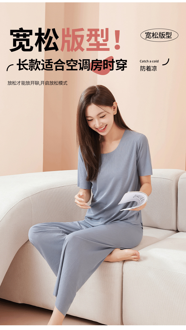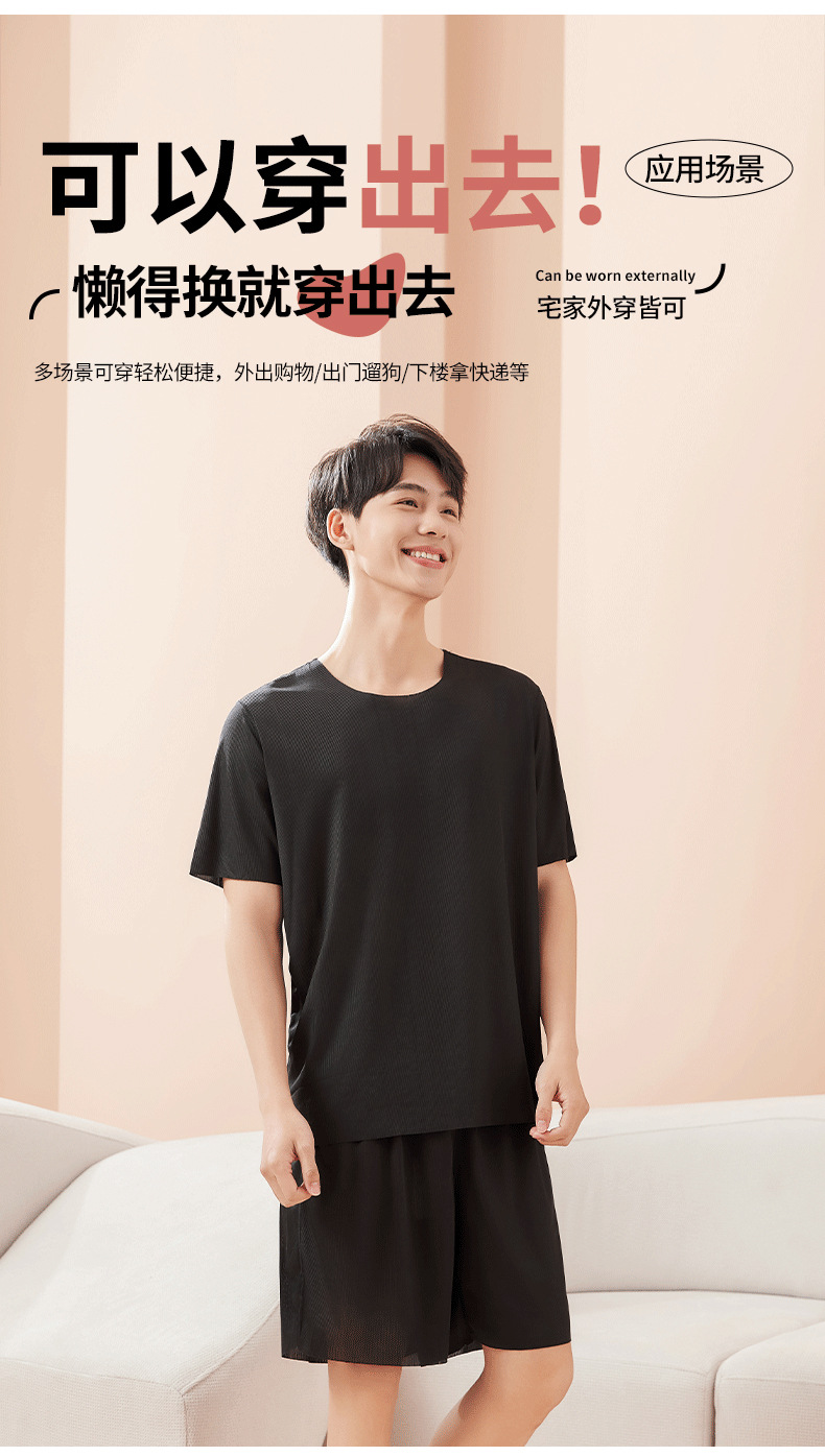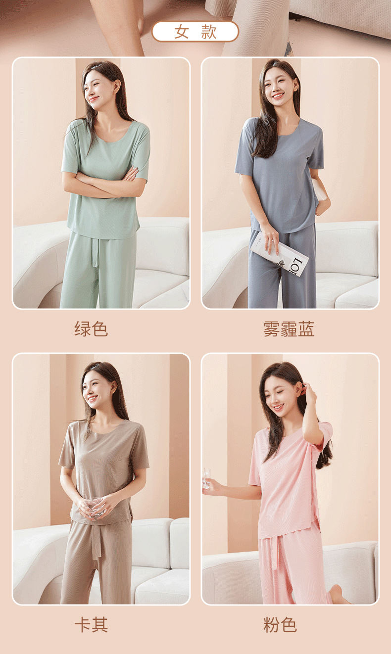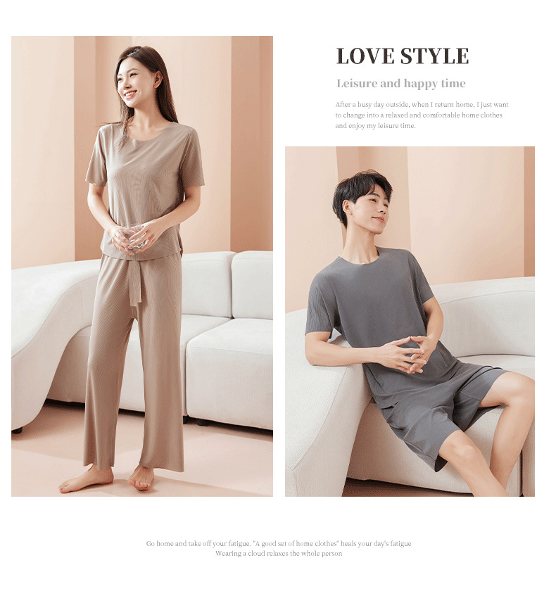 【休闲家居服❗可外穿】爆款无痕情侣睡衣女夏季冰丝清凉短袖圆领男女时尚家居服套装。rh