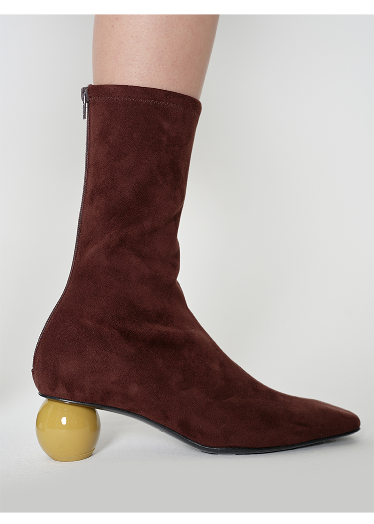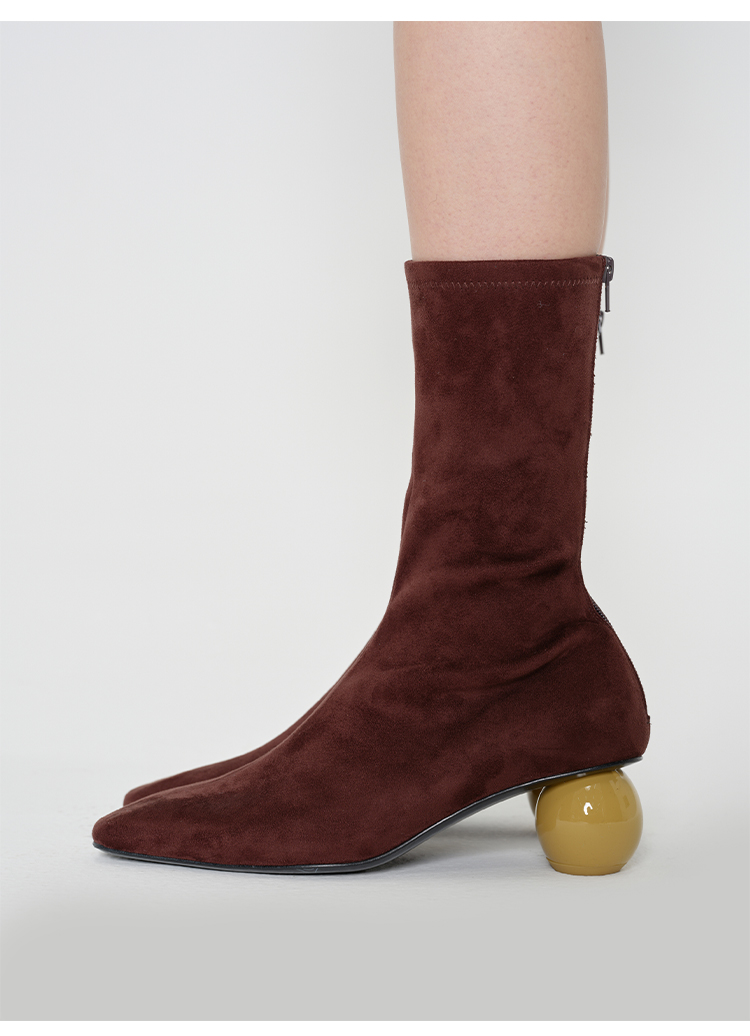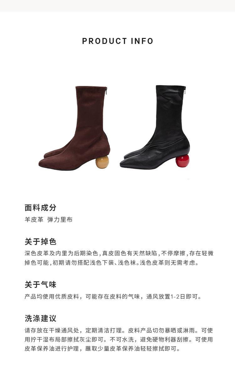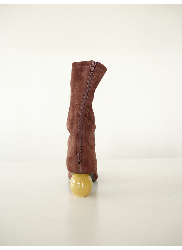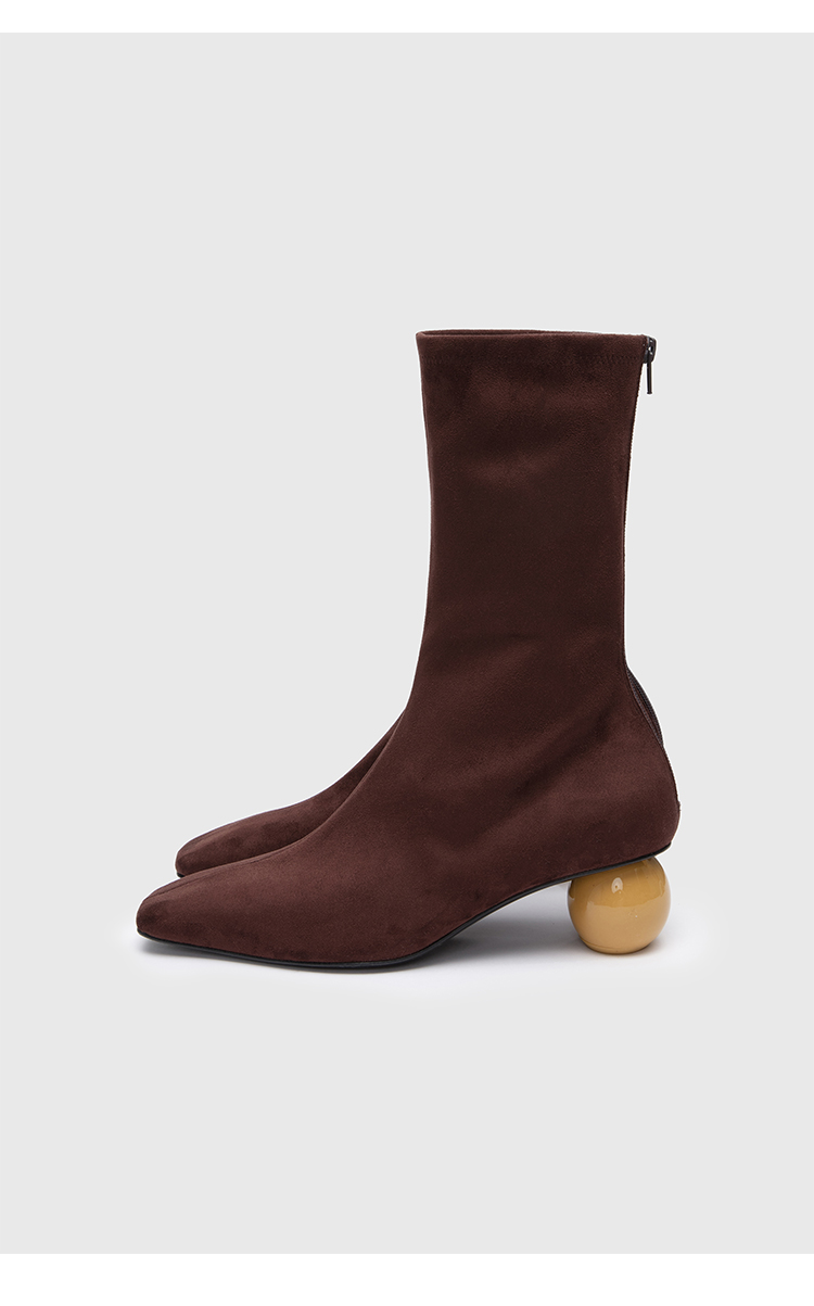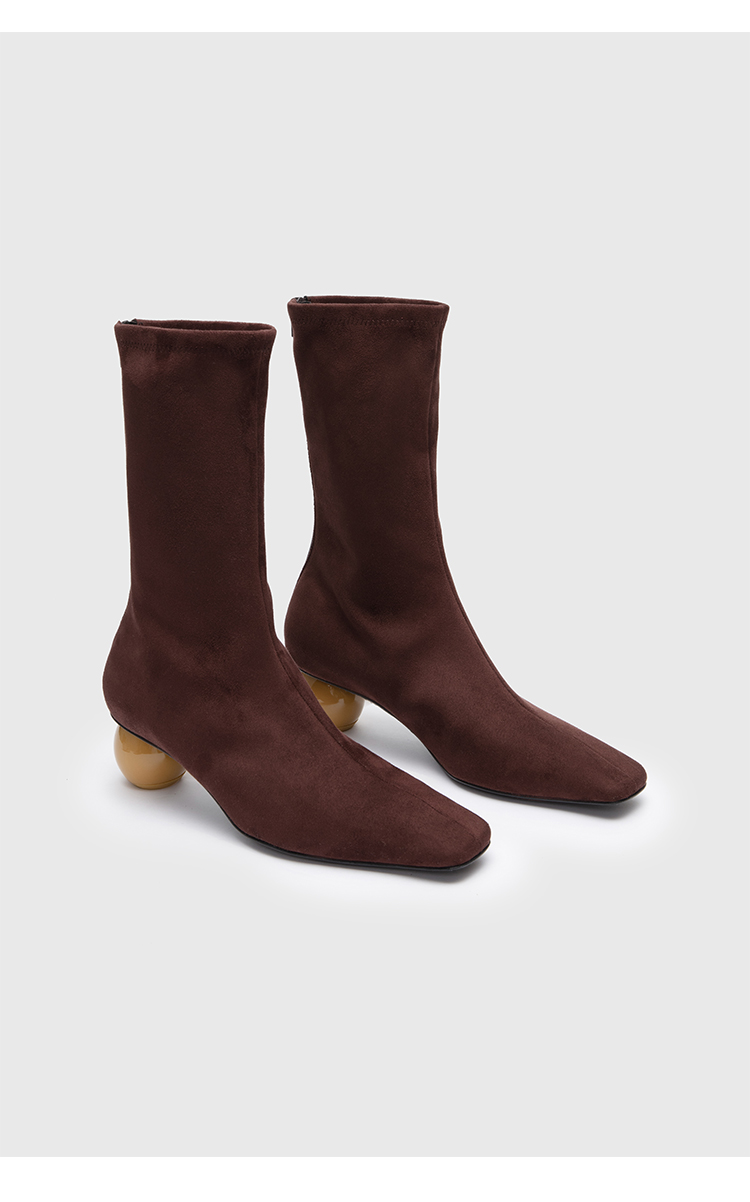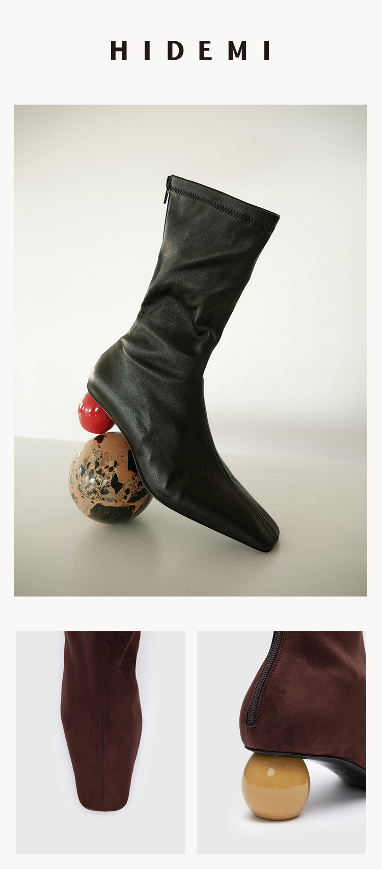 HIDEMI 【当当同款】做旧感进口弹力羊皮艺术感撞色球体异形跟中跟显瘦踝靴 古铜棕麂皮/黑色光面皮