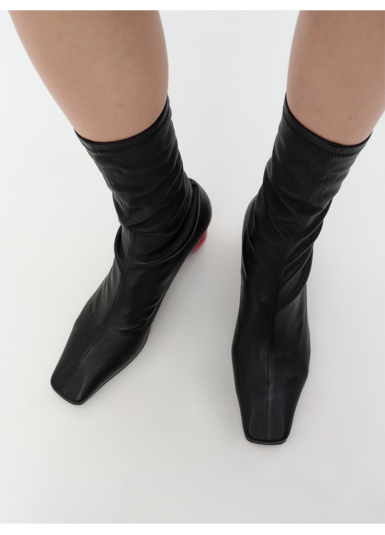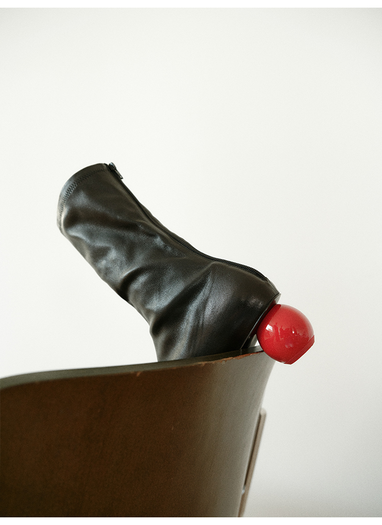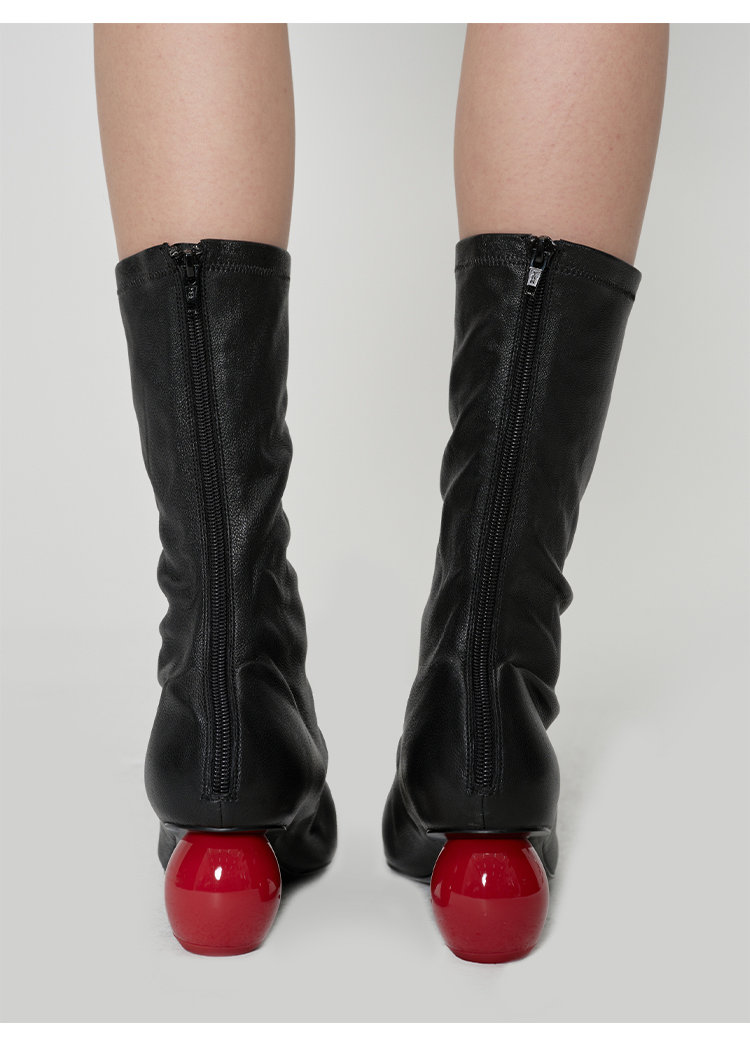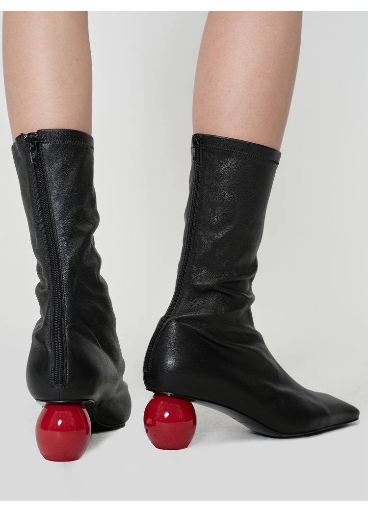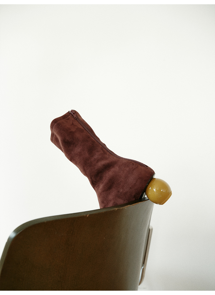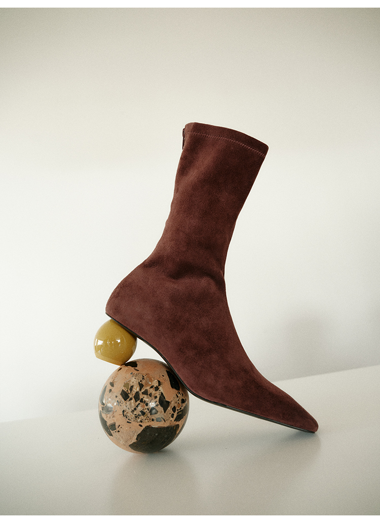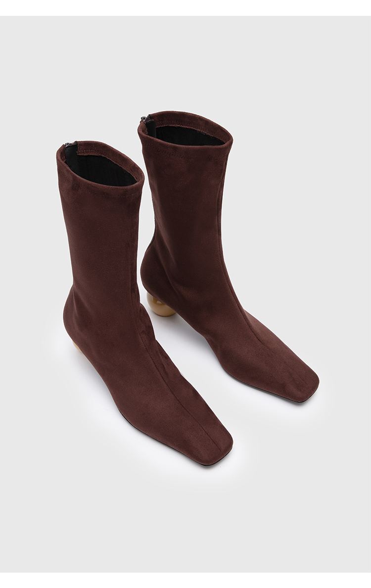 HIDEMI 【当当同款】做旧感进口弹力羊皮艺术感撞色球体异形跟中跟显瘦踝靴 古铜棕麂皮/黑色光面皮