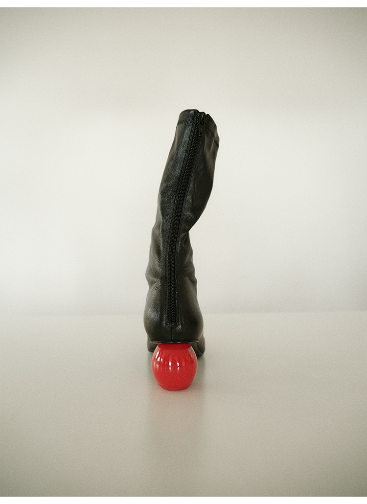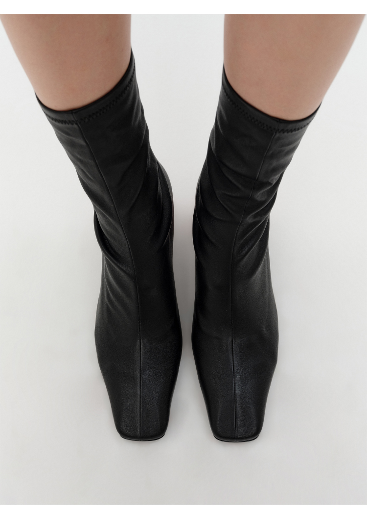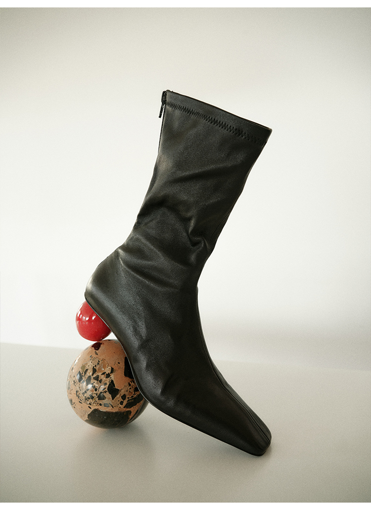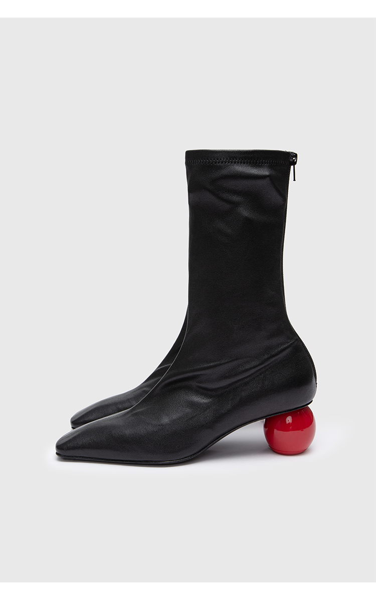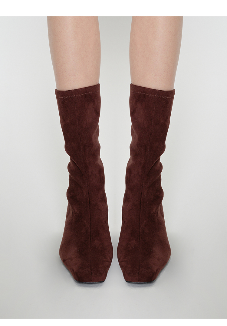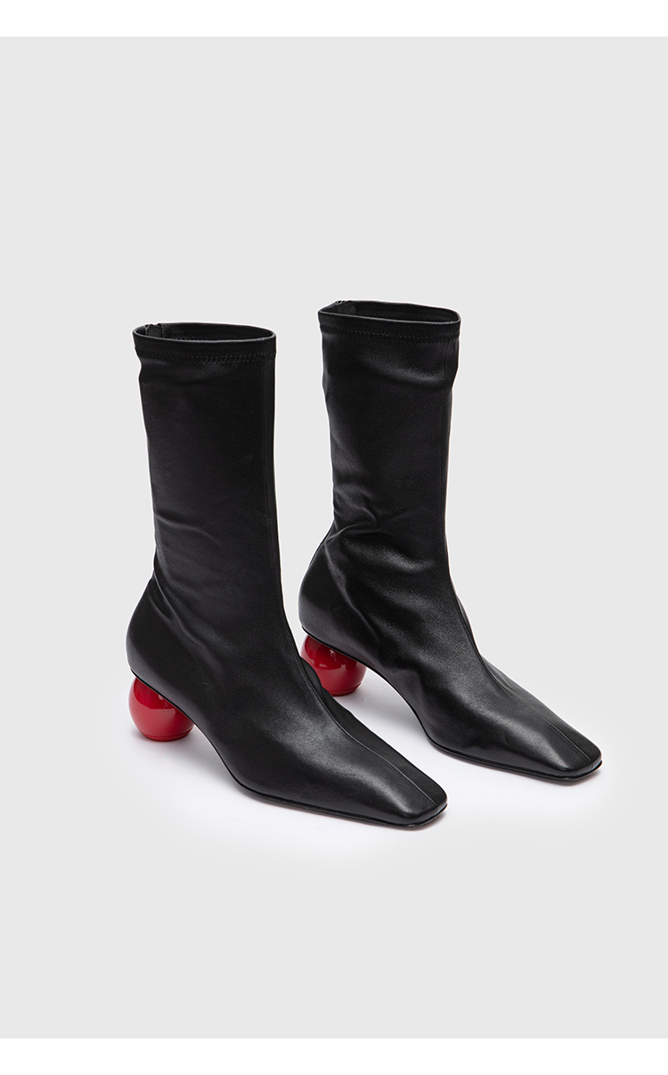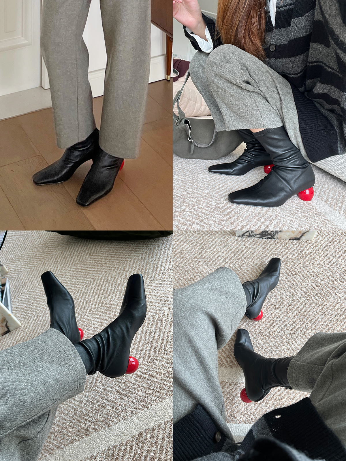 HIDEMI 【当当同款】做旧感进口弹力羊皮艺术感撞色球体异形跟中跟显瘦踝靴 古铜棕麂皮/黑色光面皮