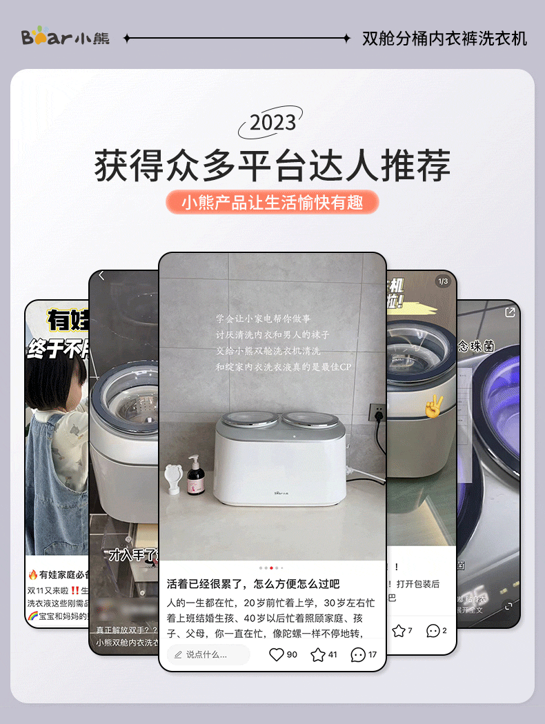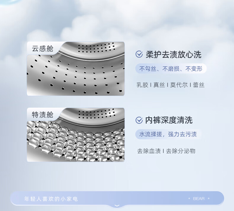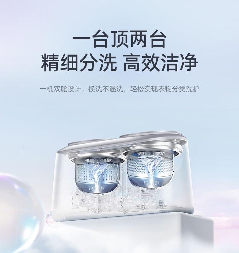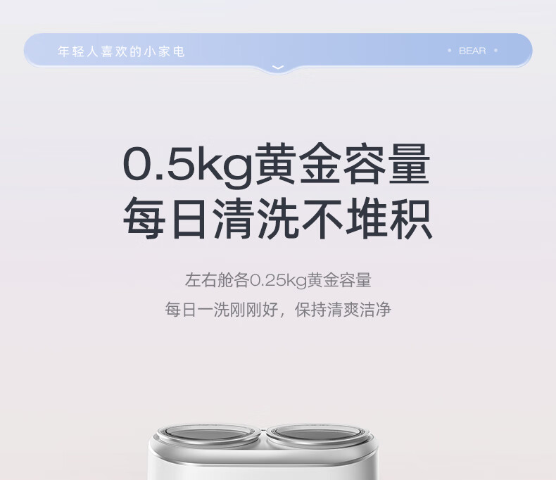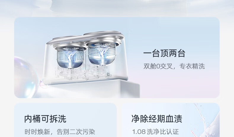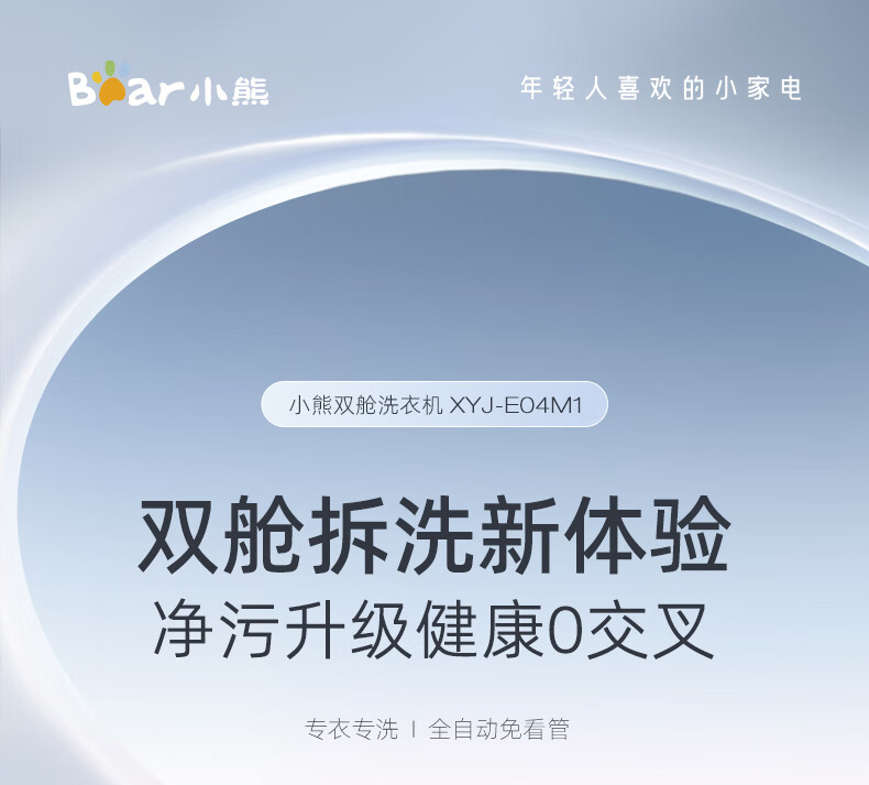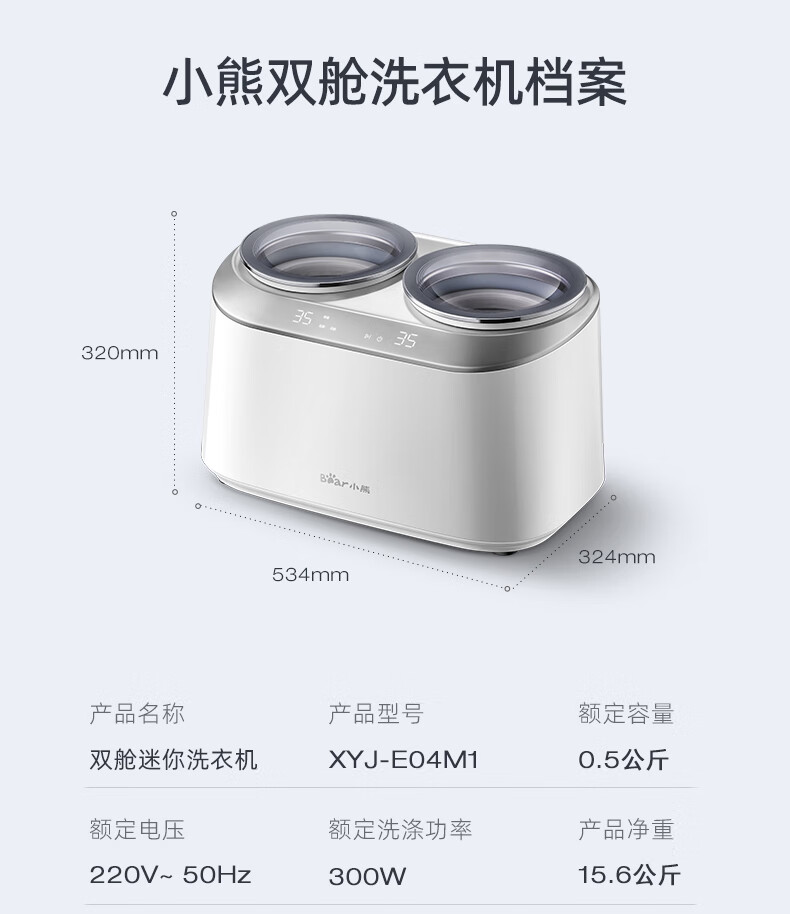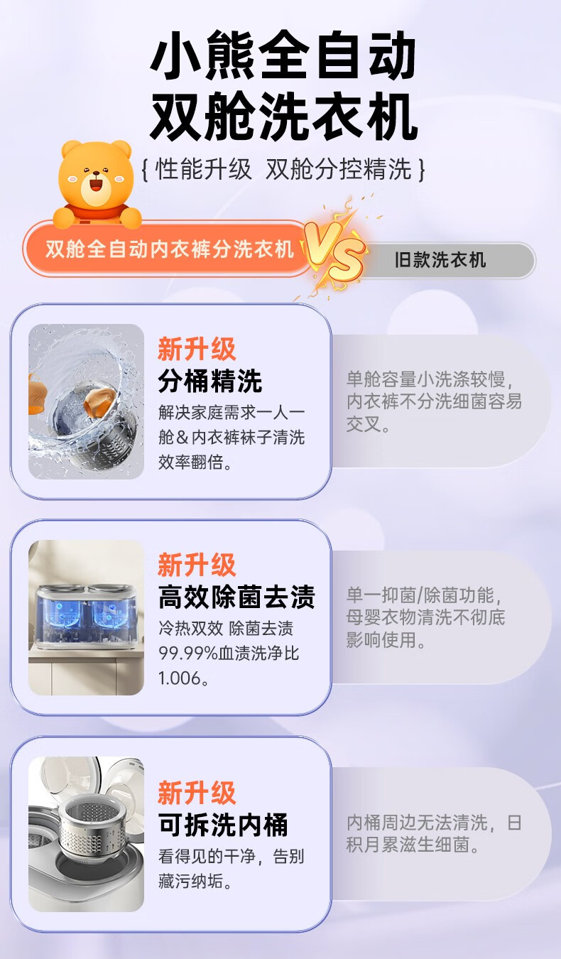 小熊(Bear)全自动双舱洗衣机 家用迷你内衣内裤清洗机 专用洗袜神器婴儿洗脱一体高温洗衣机分桶清洗