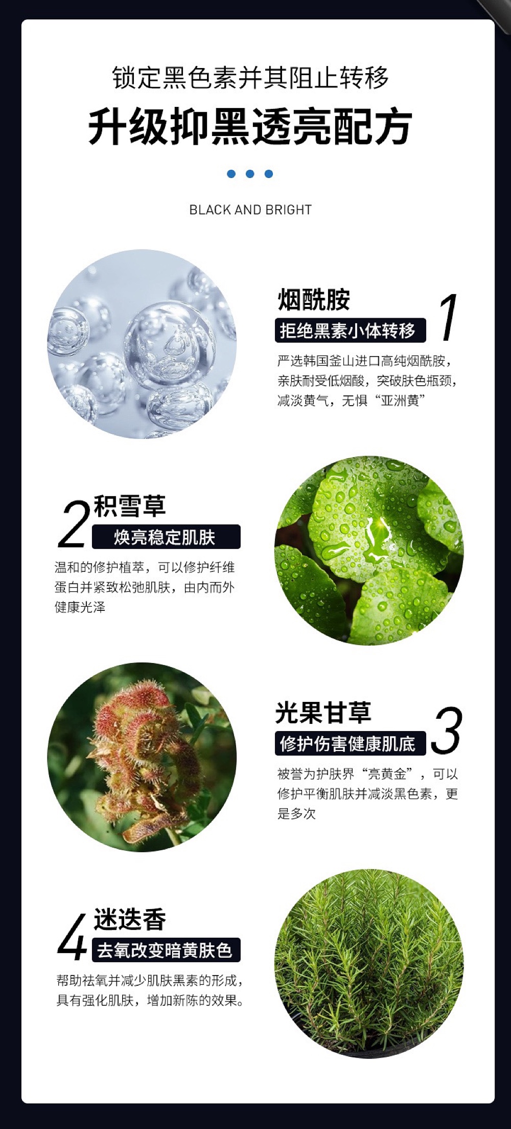 【成分】烟酰胺、积雪草、光果甘草、迷迭香等