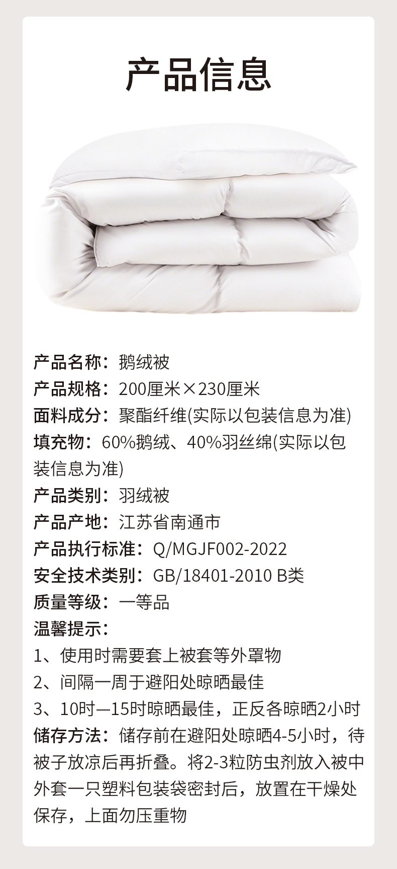 【专享】笙观相沐鹅绒被 95%绒子含量 大朵白鹅绒填充 高蓬饱满 轻盈保暖