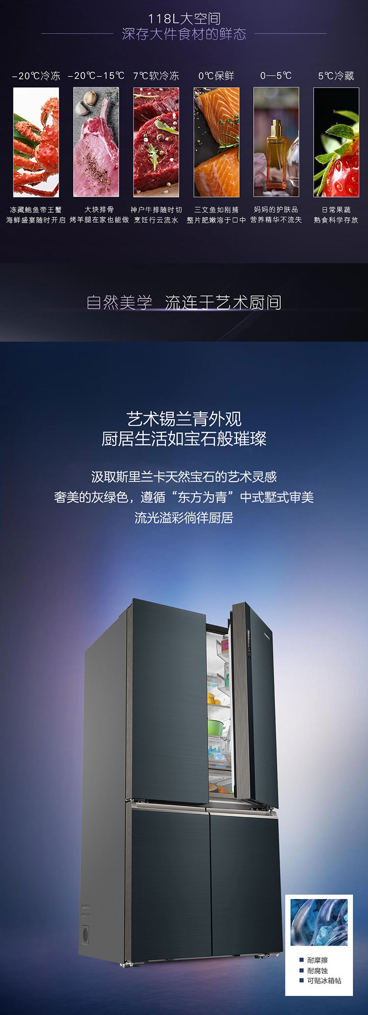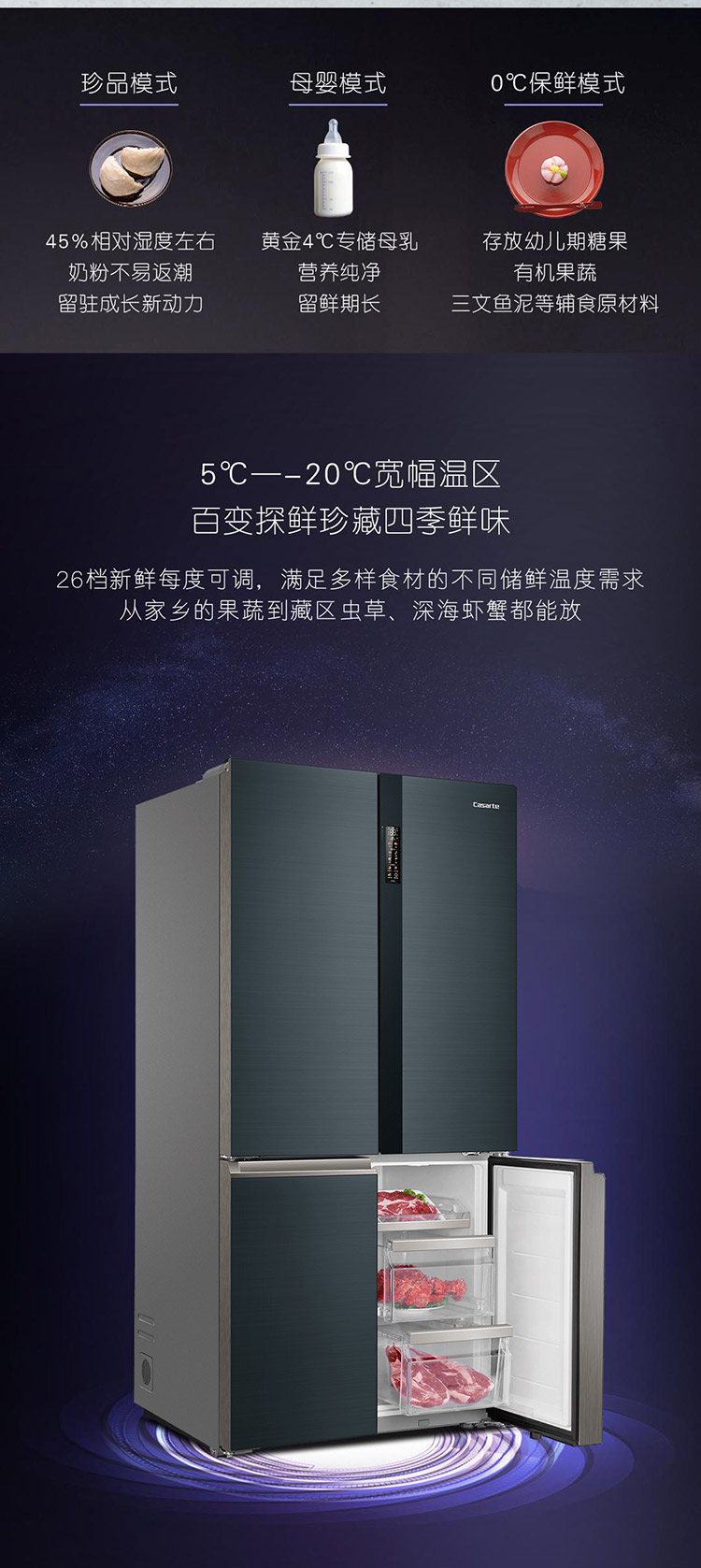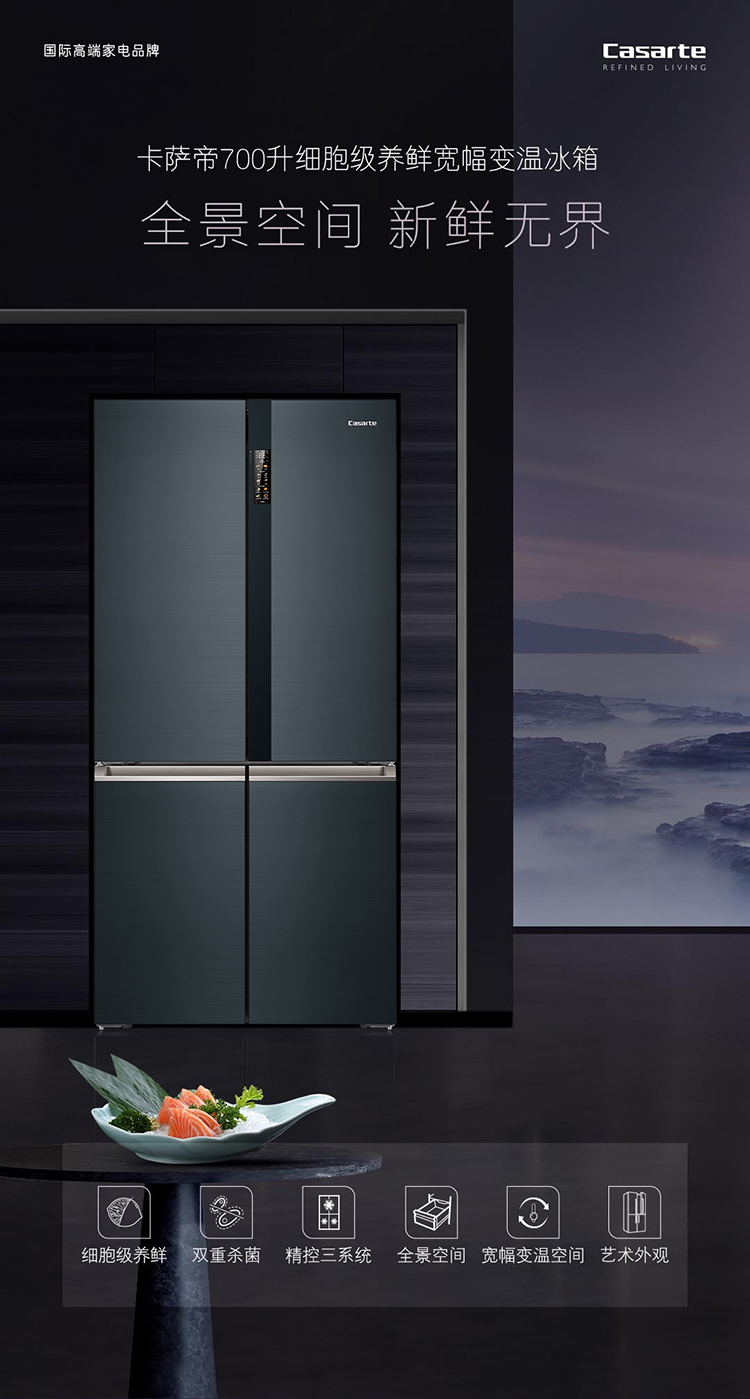 卡萨帝700升十字对开门冰箱变频风冷无霜 全景空间宽幅变温 三系统BCD-700WGCTD87C3U1