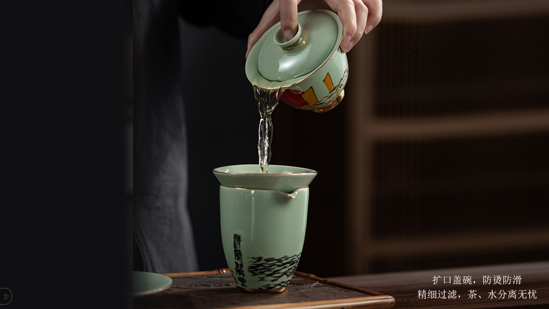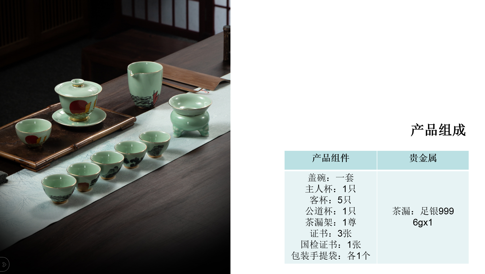 茶具的滤网是使用6g纯银打造,用银过滤后的水质会更加柔和,泡出的茶水会更加高级好喝,严格遵循德化白瓷古法烧制技艺,精选德化当地上等白瓷瓷土,历经数次精雕细琢,高温烧制,终成此器。名画与名瓷巧妙结合,二者相得益彰,具有极高的绘画造诣和 吉祥的祝福寓意。