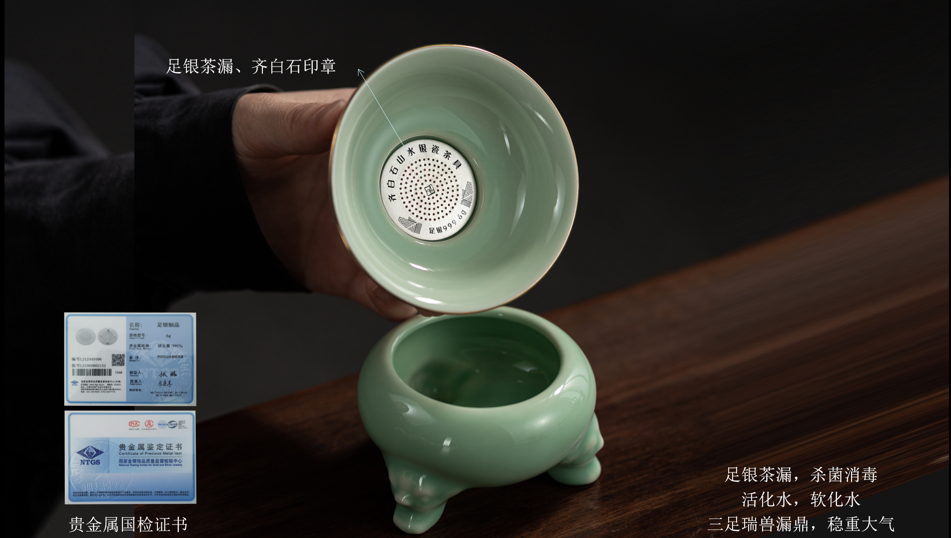 【齐白石山水银瓷茶具套装】由中国陶瓷艺术家陈国钦老师亲自操刀完成。