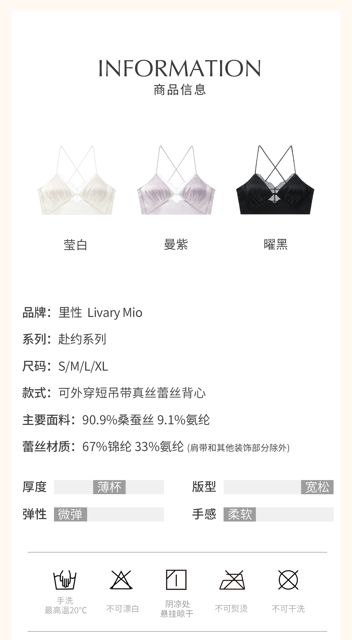 【明星同款】里性 LIVARY MIO 赴约 度假系列性感真丝吊带美背文胸女可外穿内衣