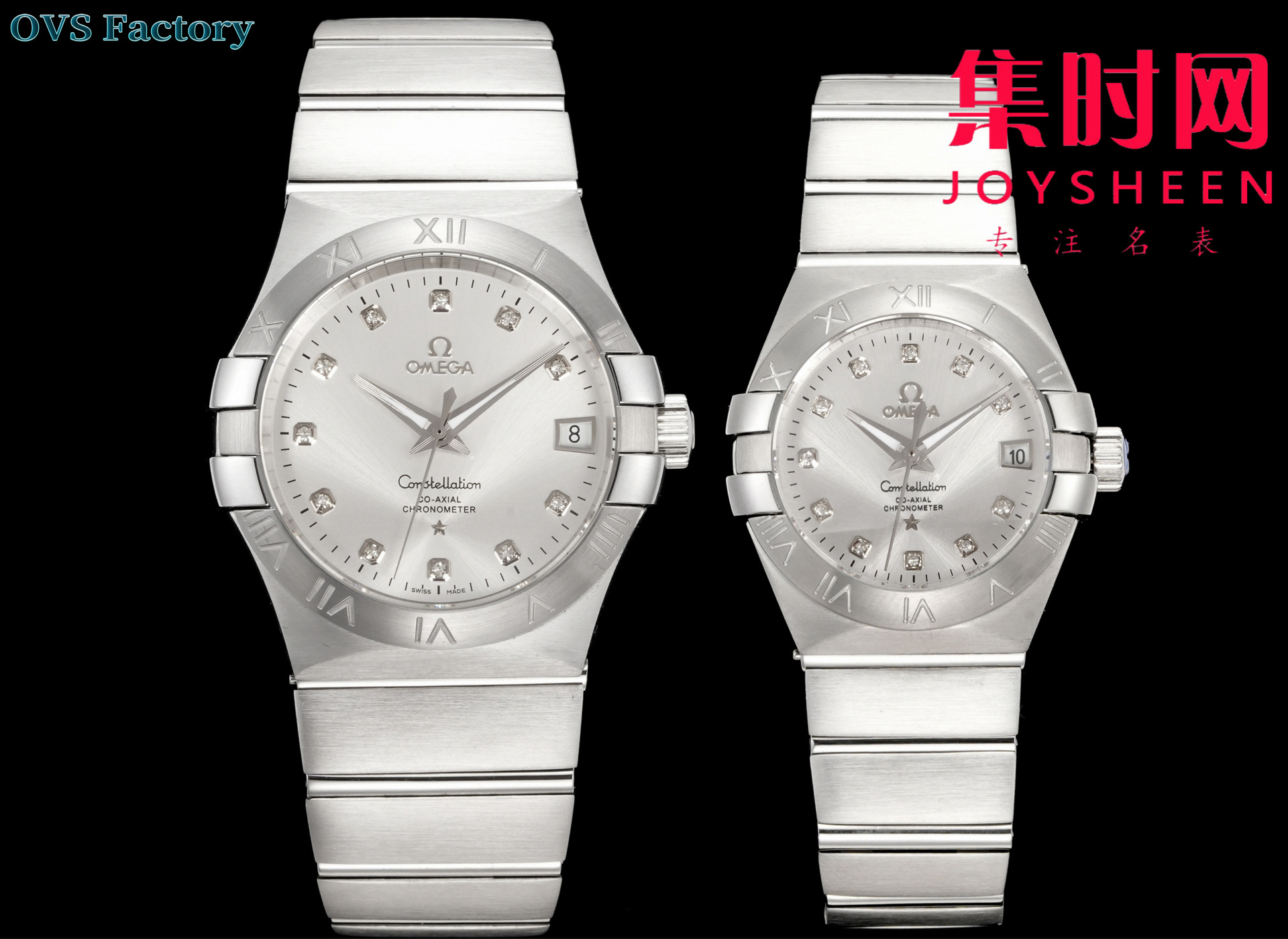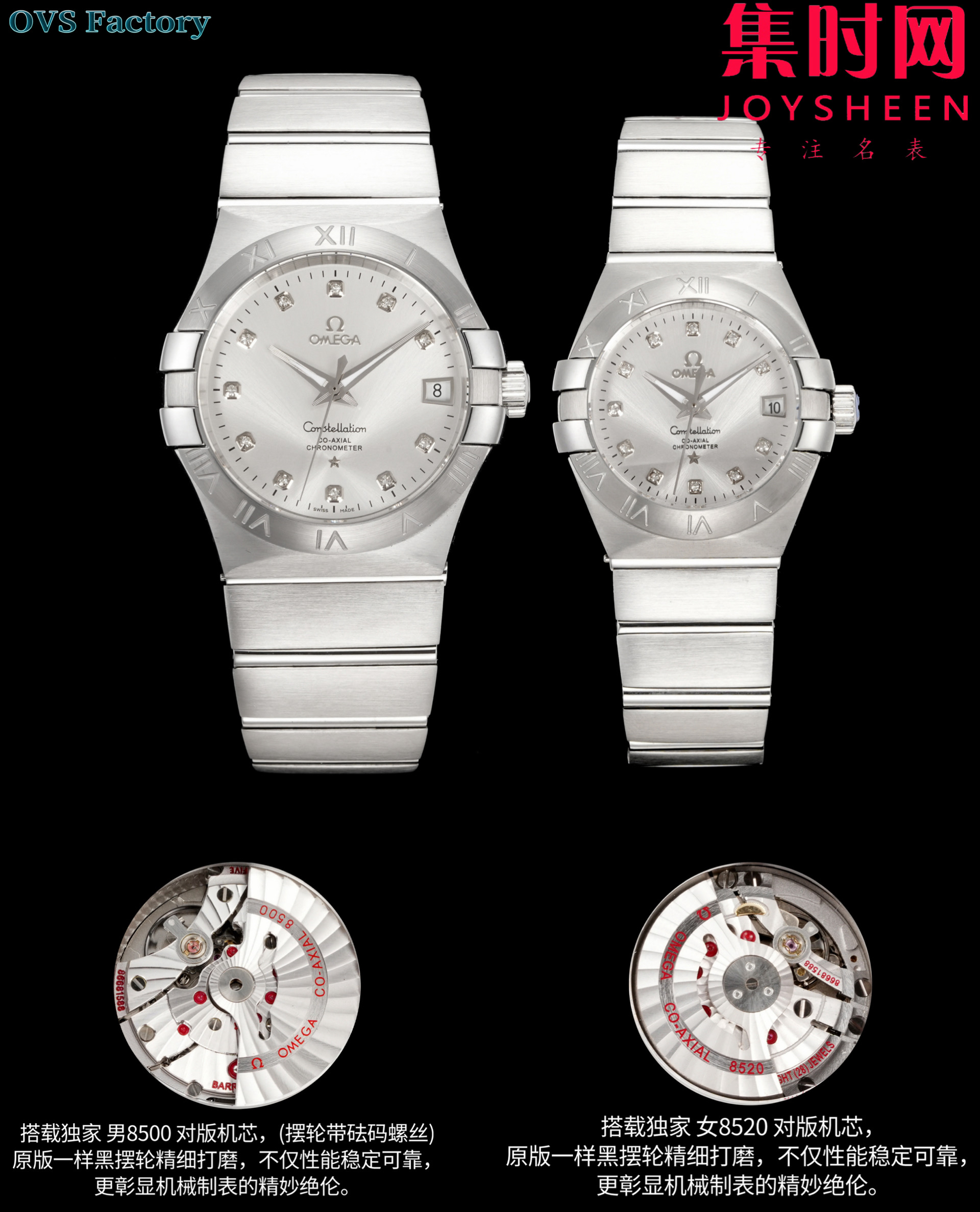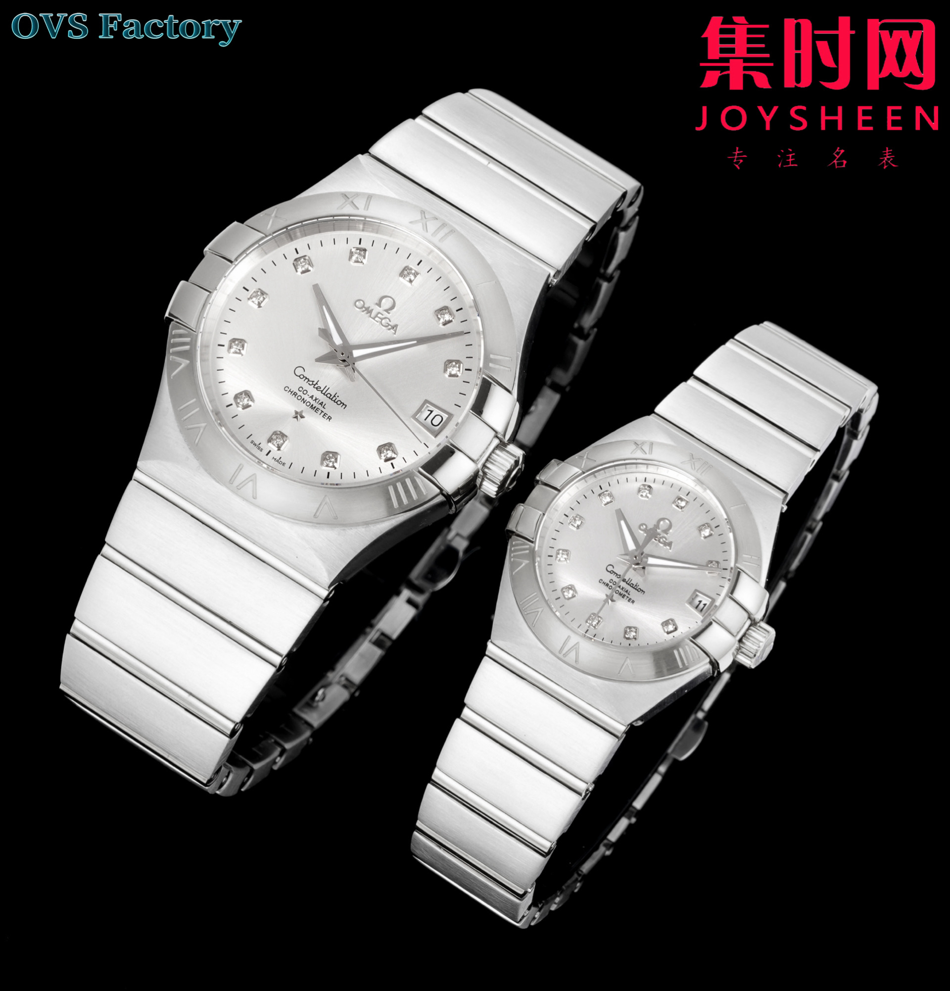 经典传承,卓越新生——欧米茄OVS星座情侣系列 情侣机械腕表 对版摆轮带砝码螺丝 双T黑摆轮 表盘尺寸:男款38mm 女款27mm