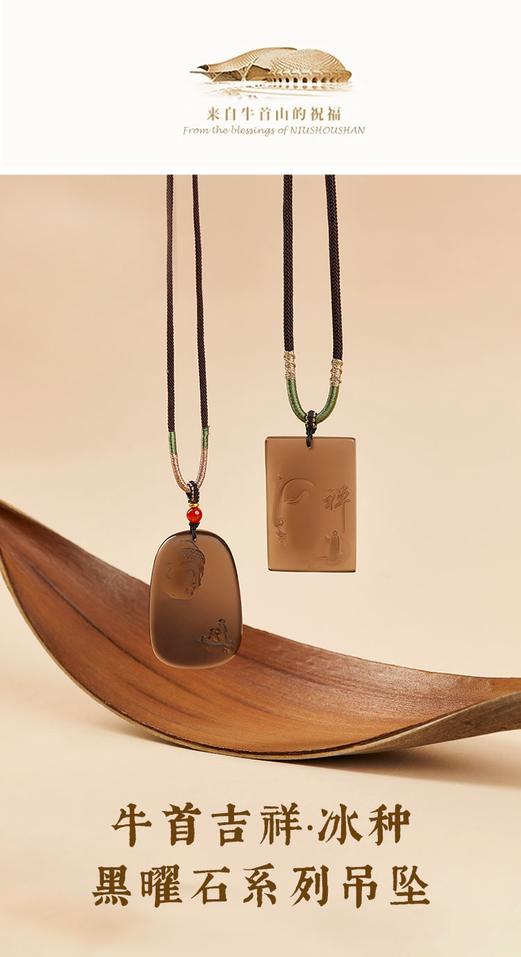 牛首山文创牛首吉祥·冰种黑曜石系列吊坠挂件南京纪念品节日礼物