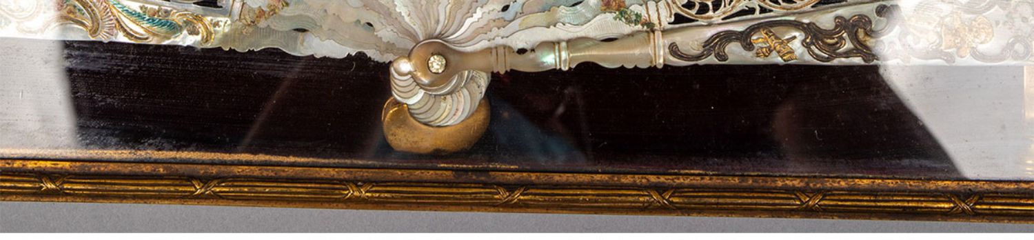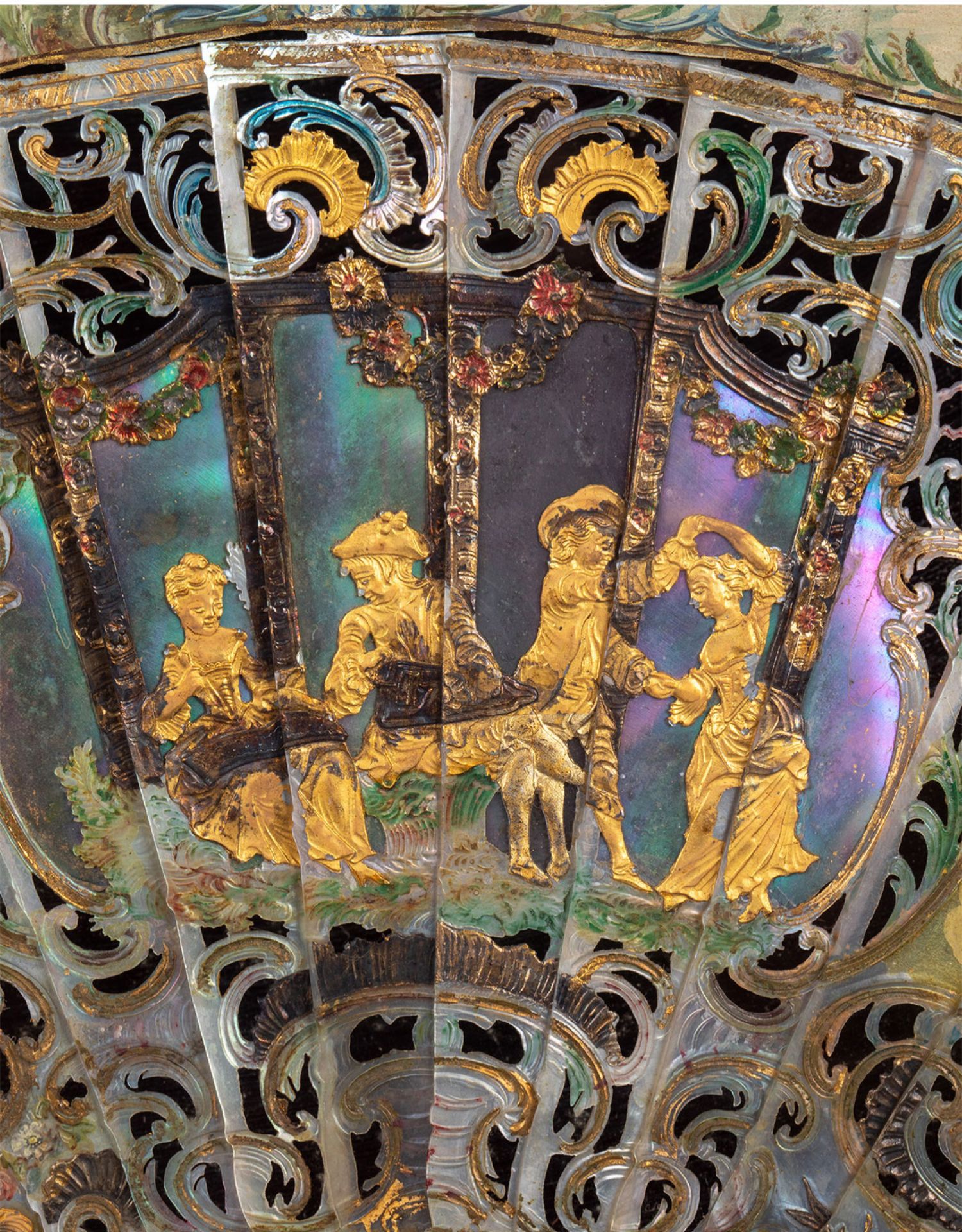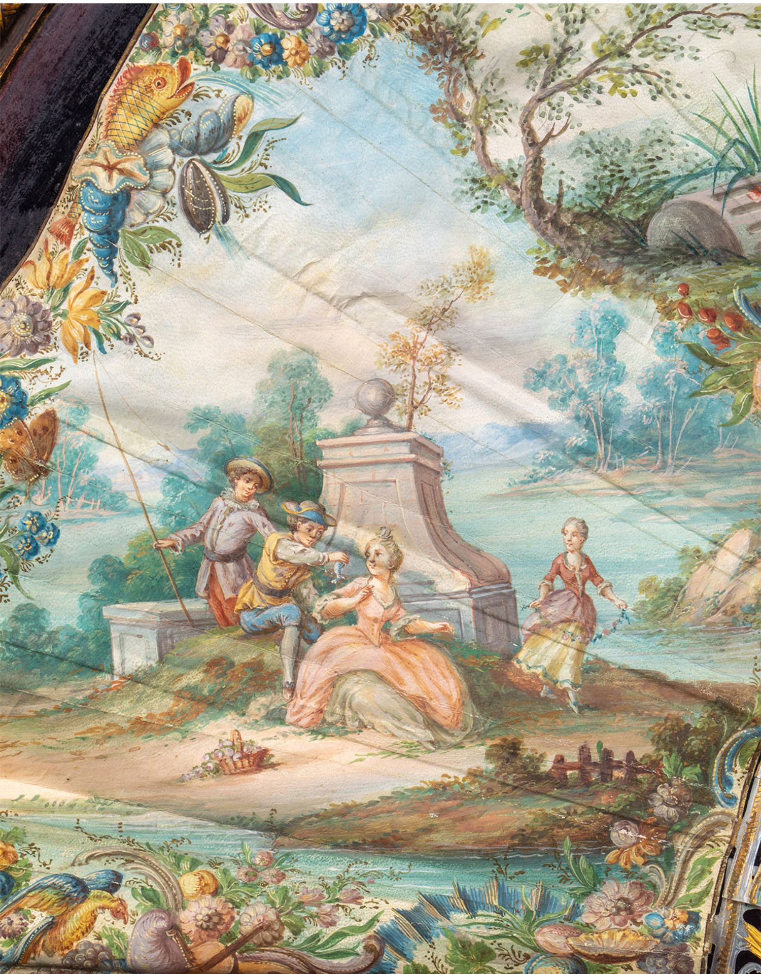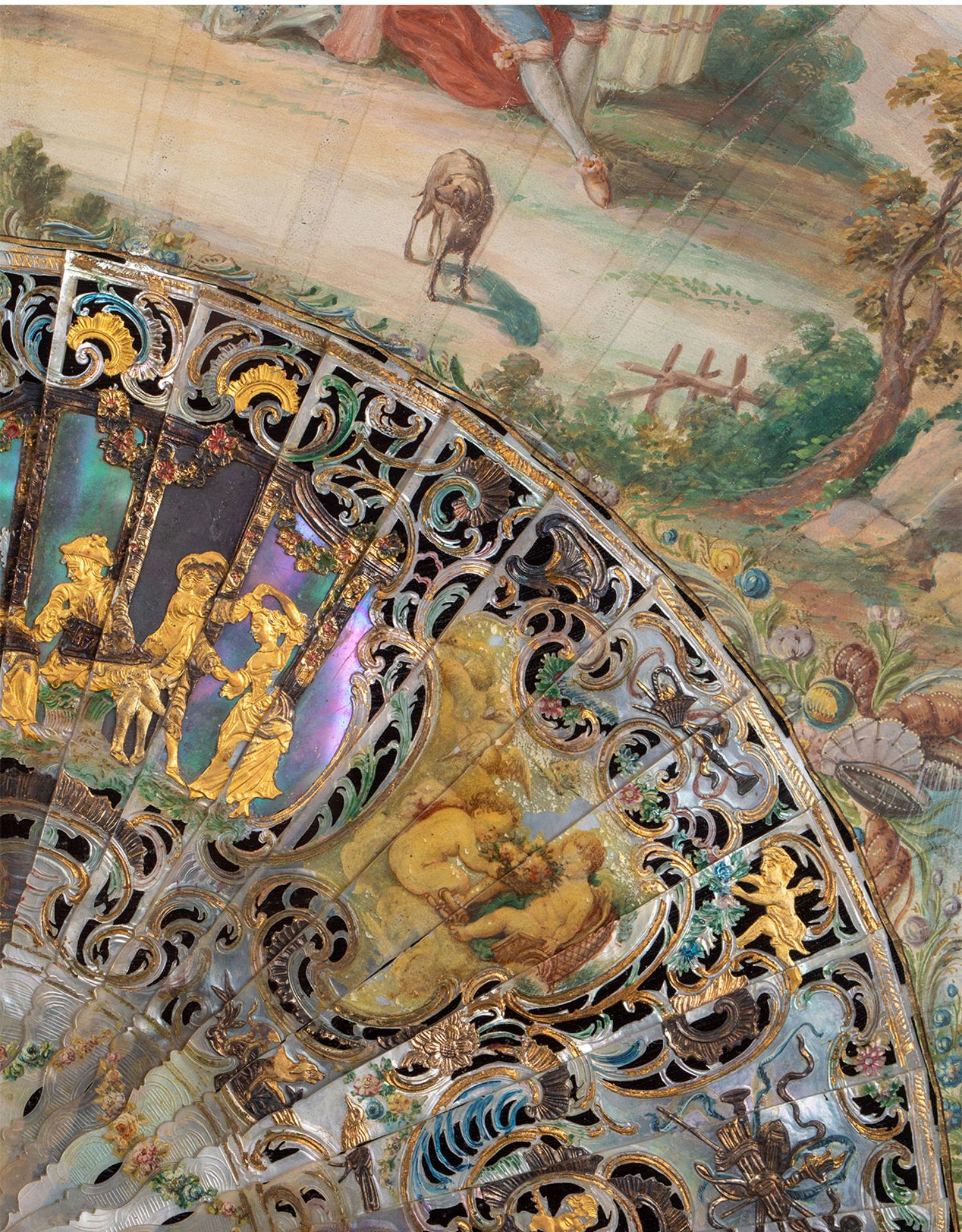独角鹿西洋古董欧洲手绘纸面扇面彩绘描金镂雕母贝扇骨折扇