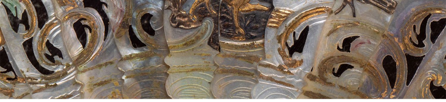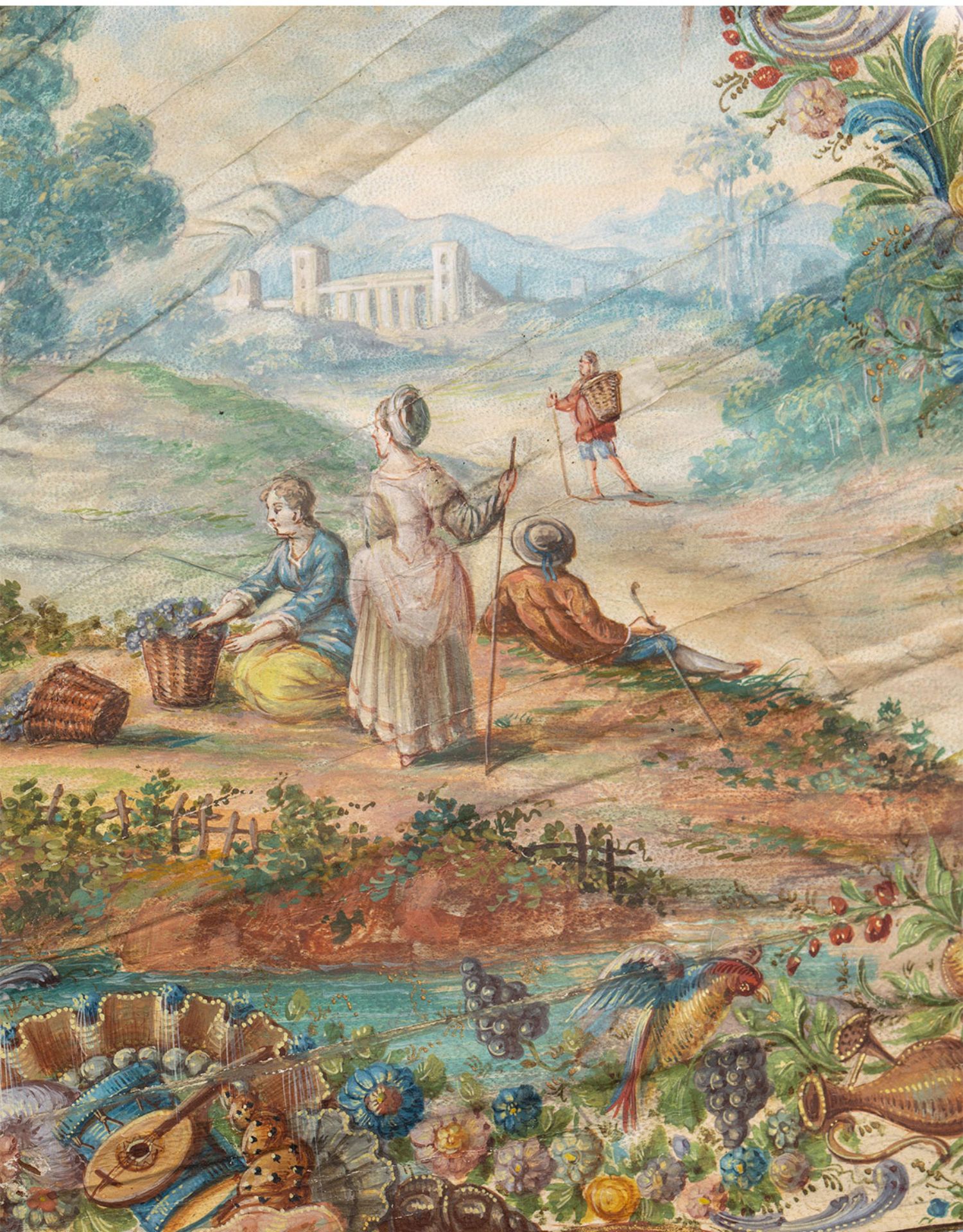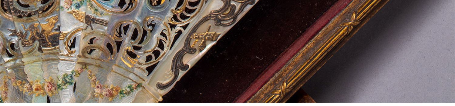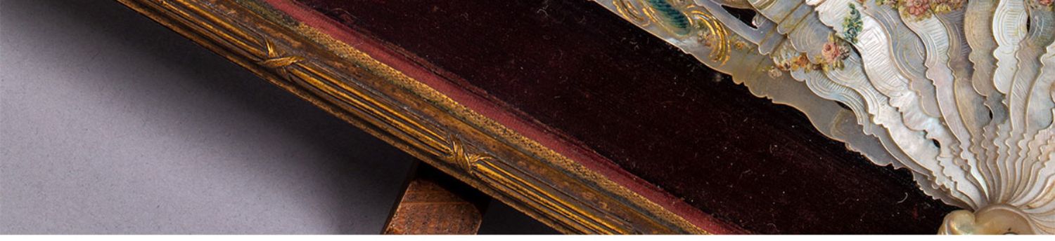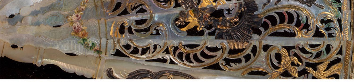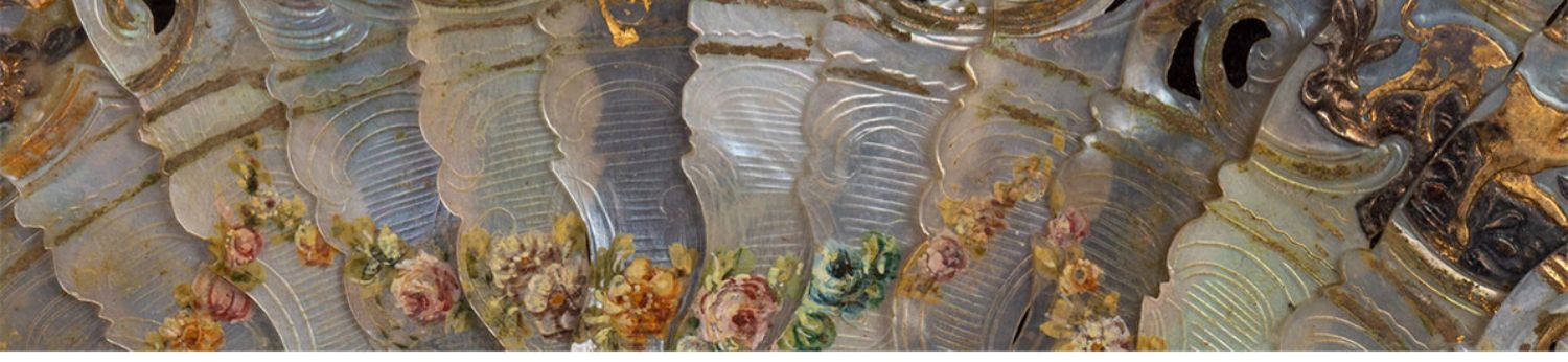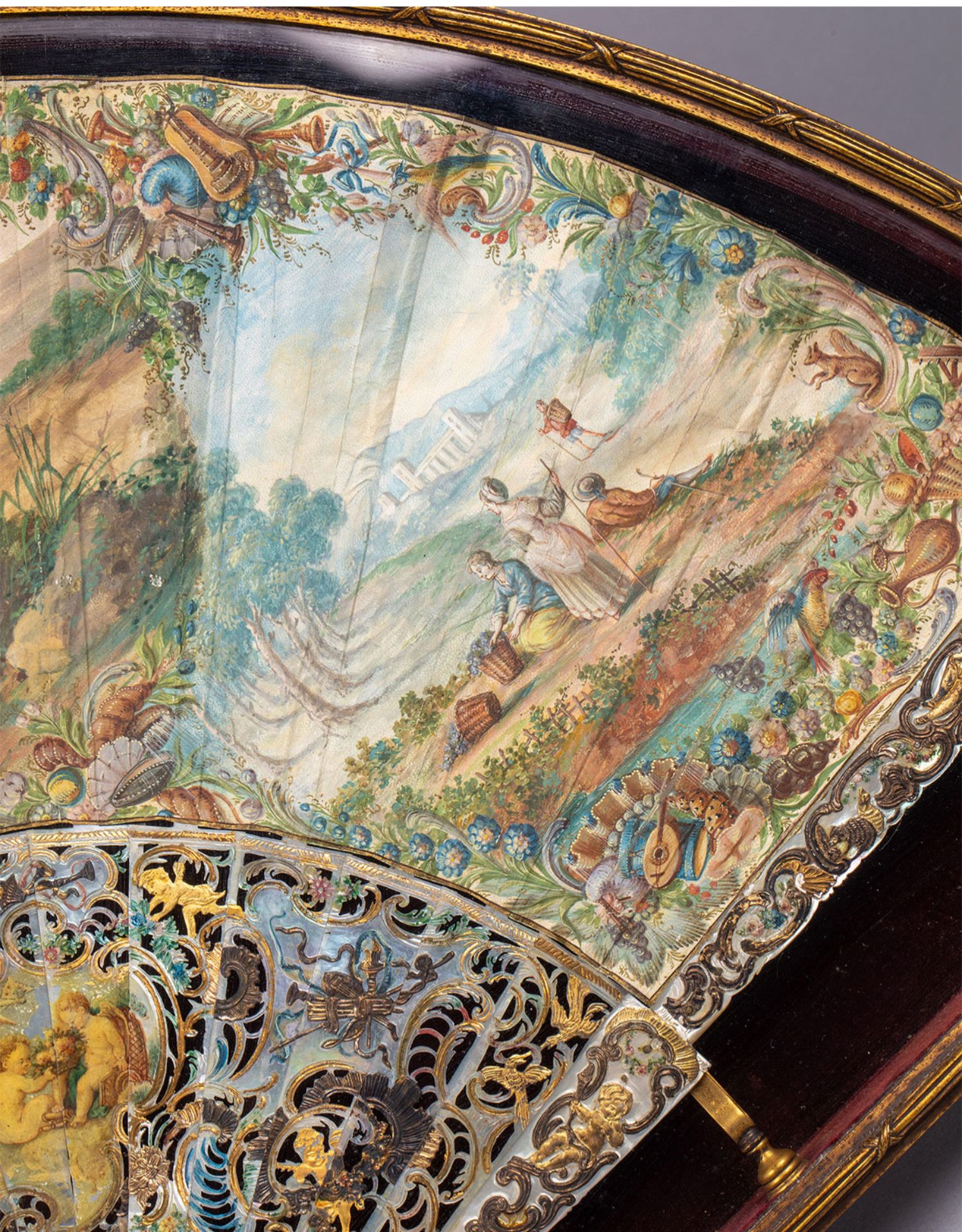 独角鹿西洋古董欧洲手绘纸面扇面彩绘描金镂雕母贝扇骨折扇