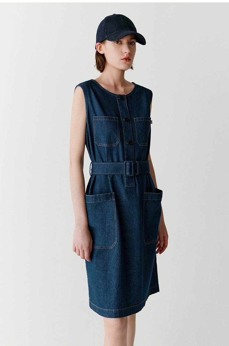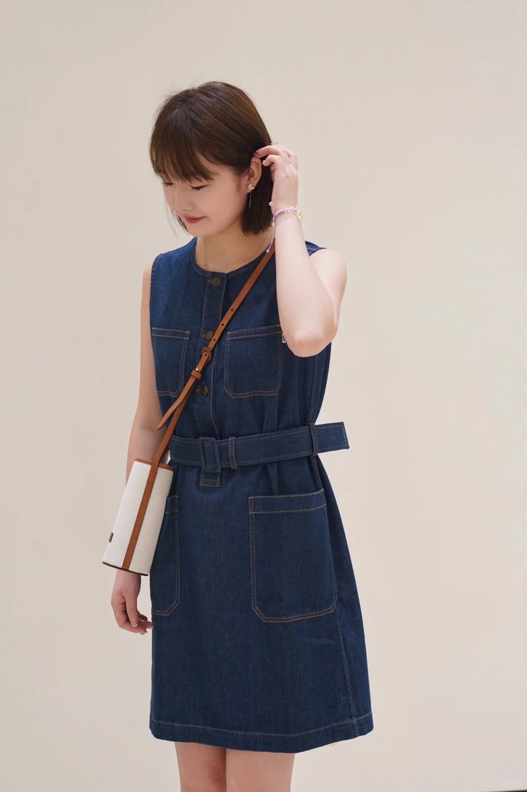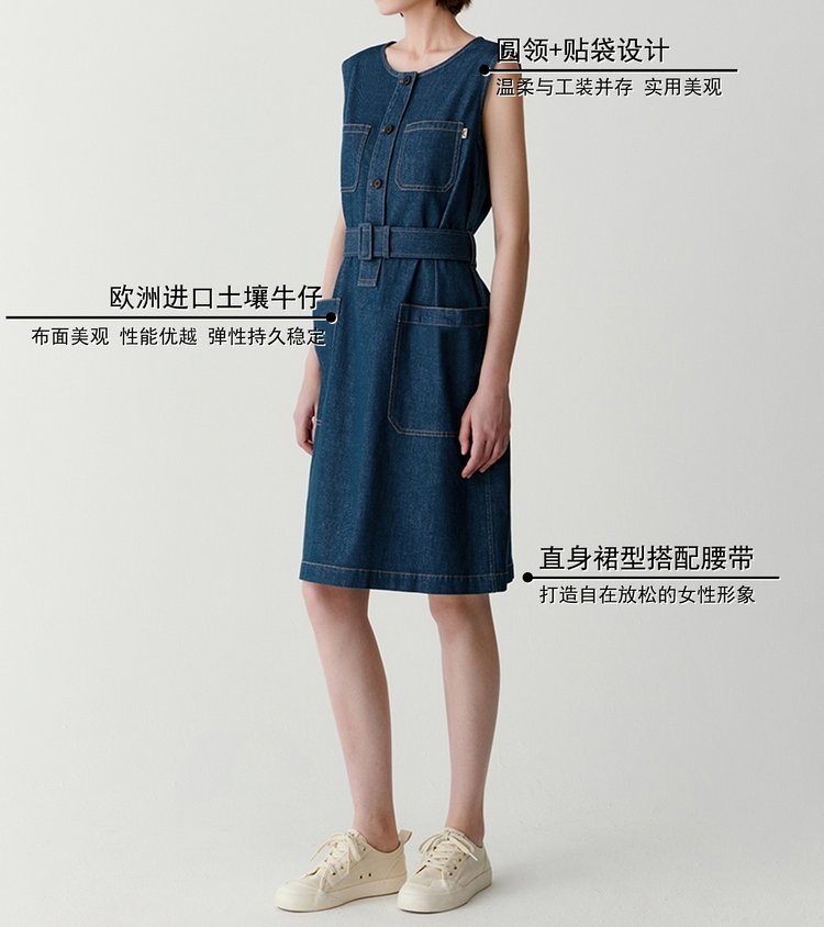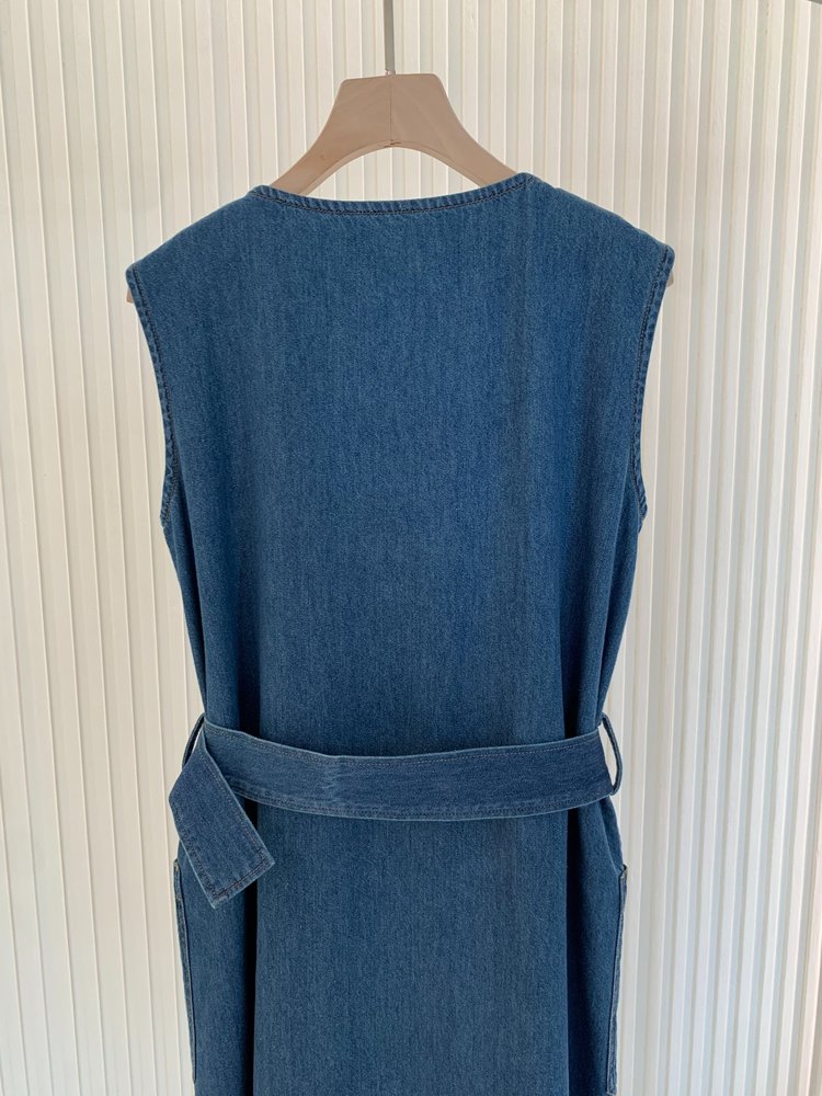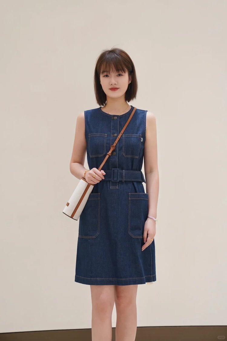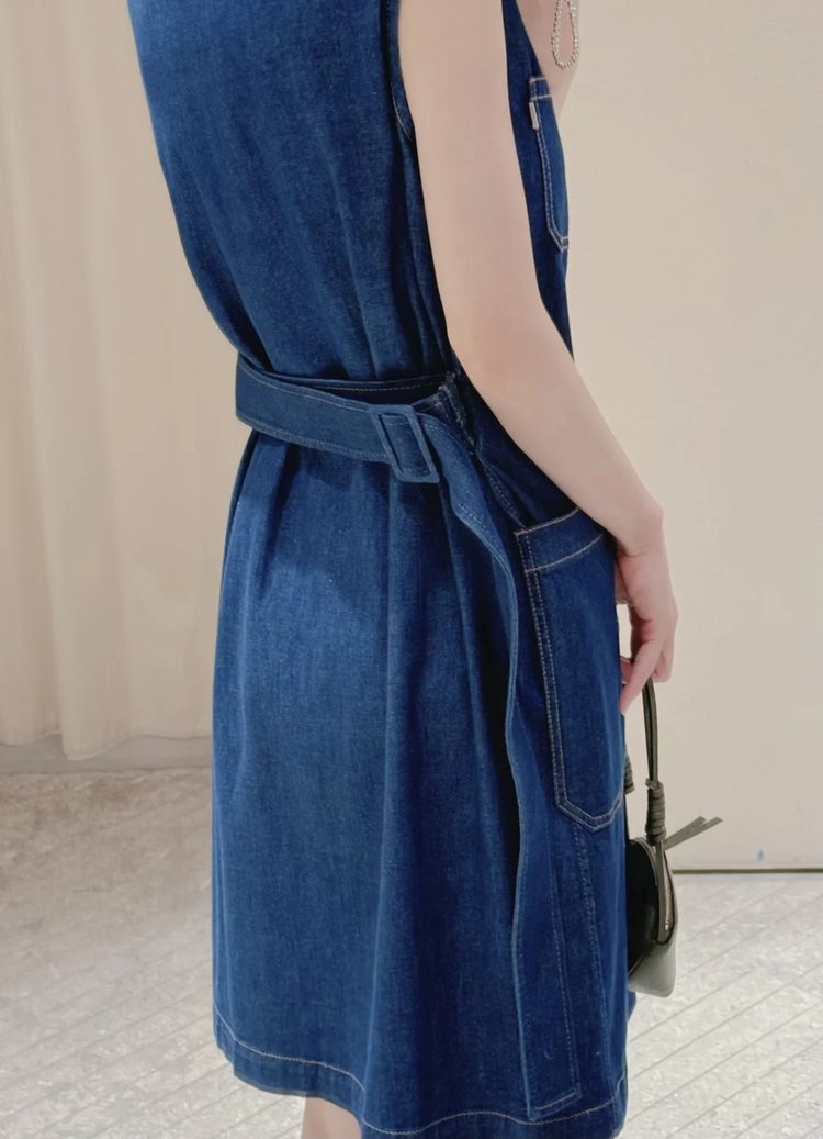 小禾同款欧洲进口牛仔无袖腰带连衣裙