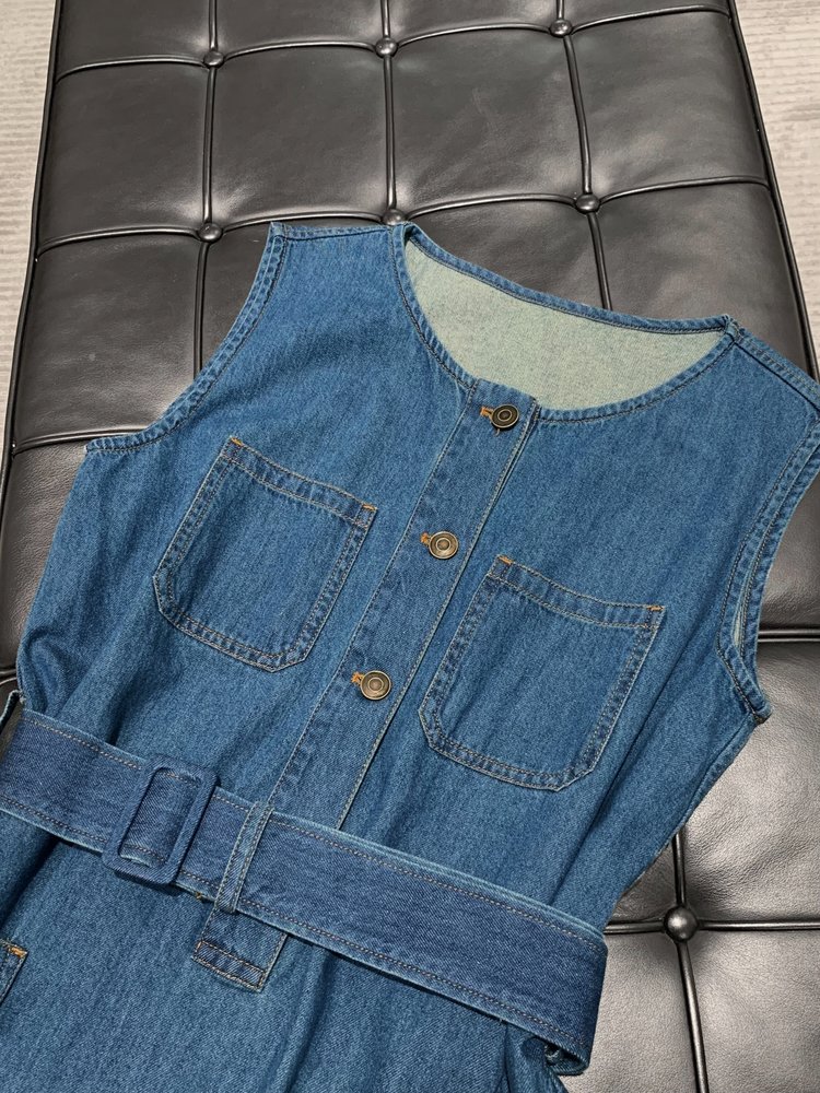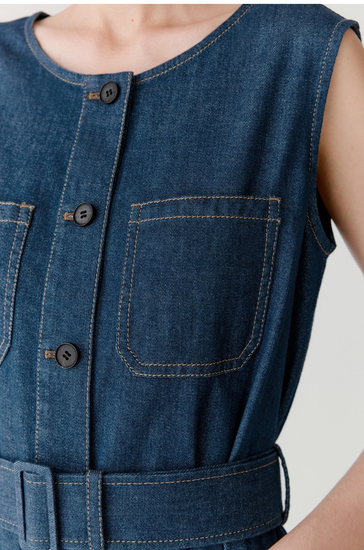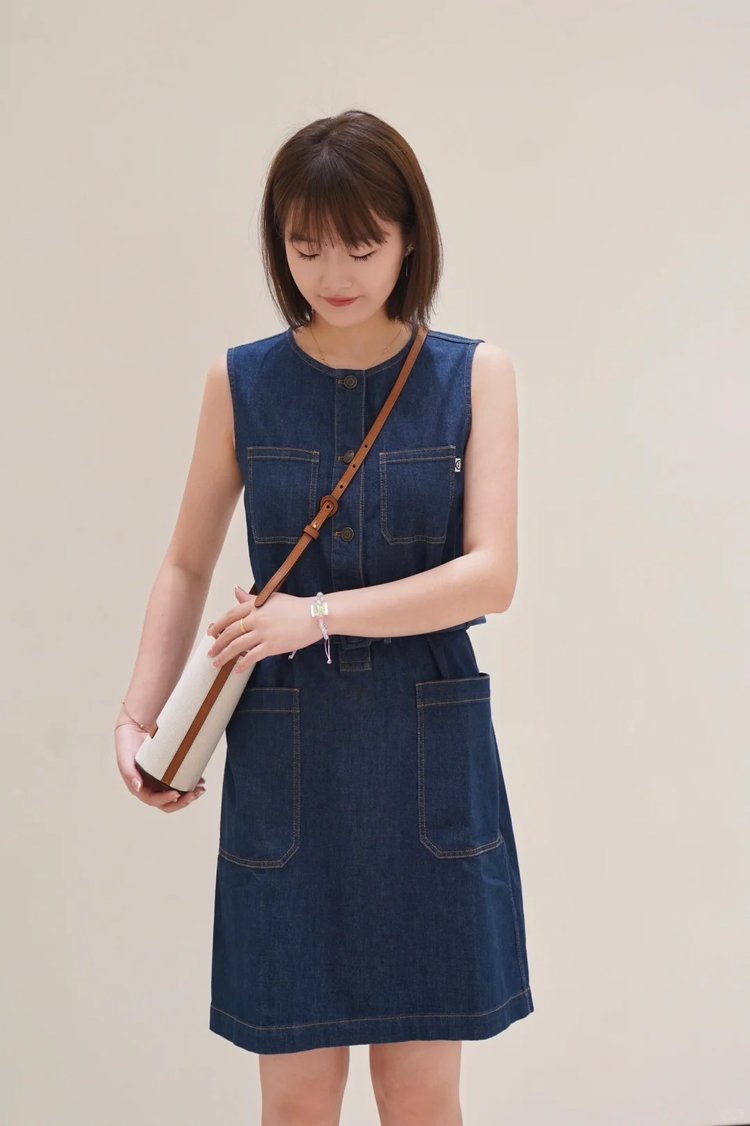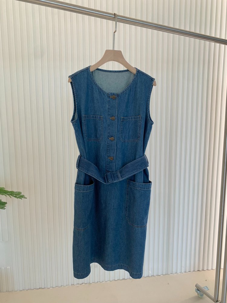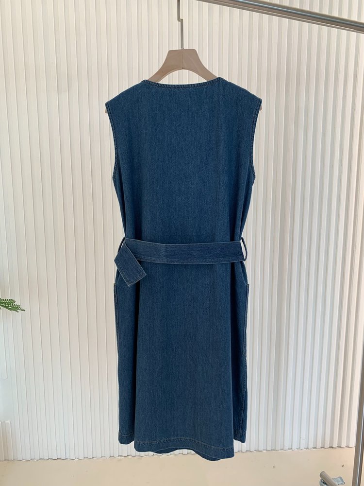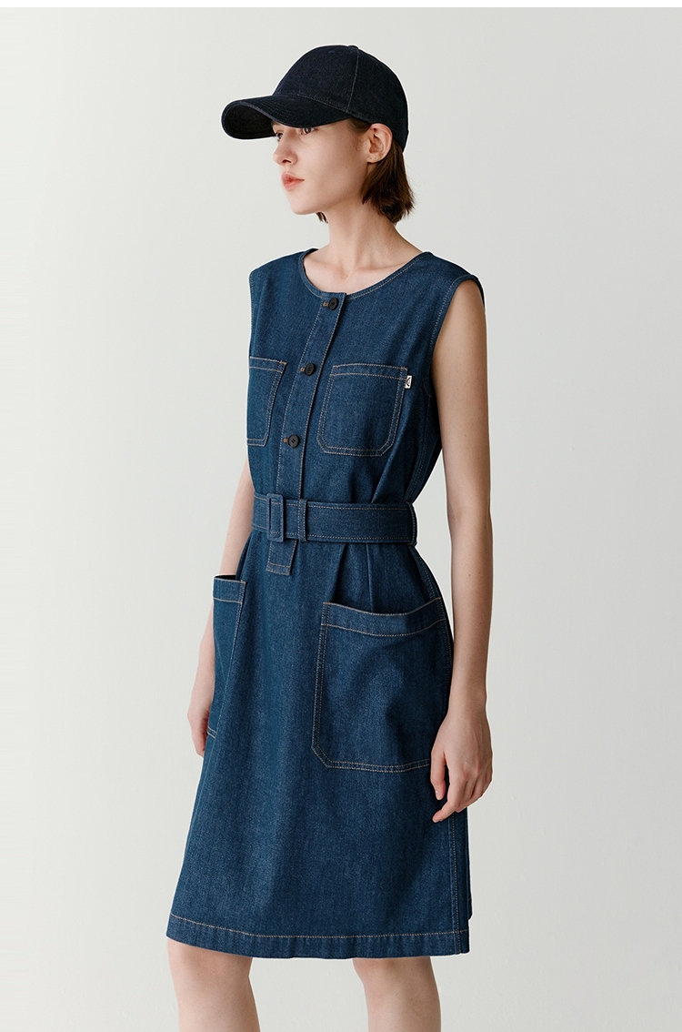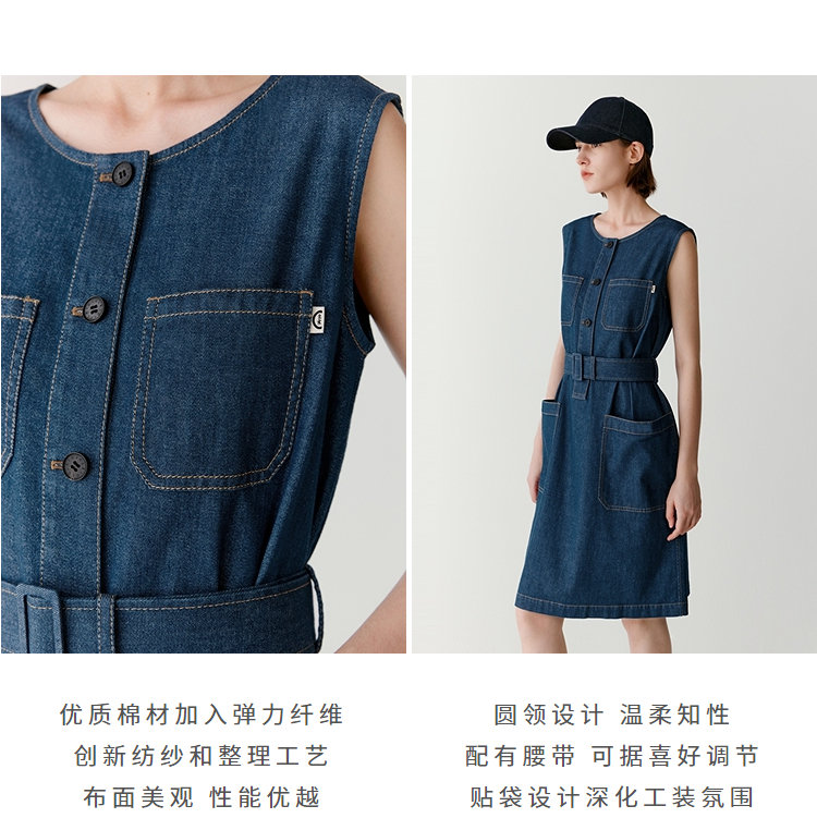 小禾同款欧洲进口牛仔无袖腰带连衣裙