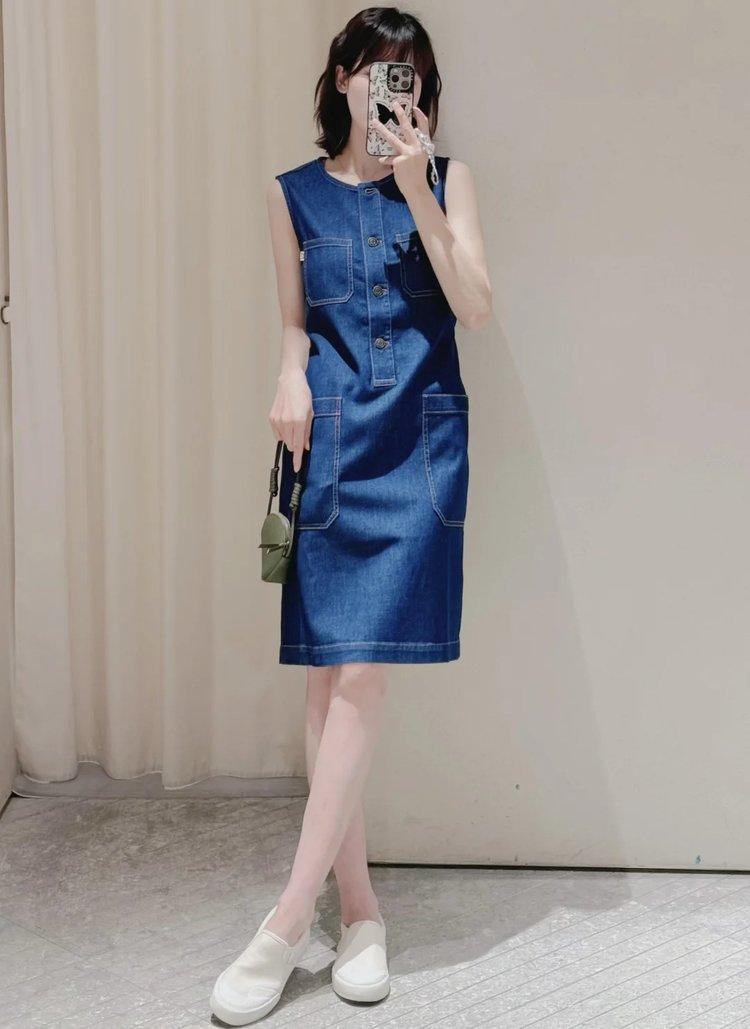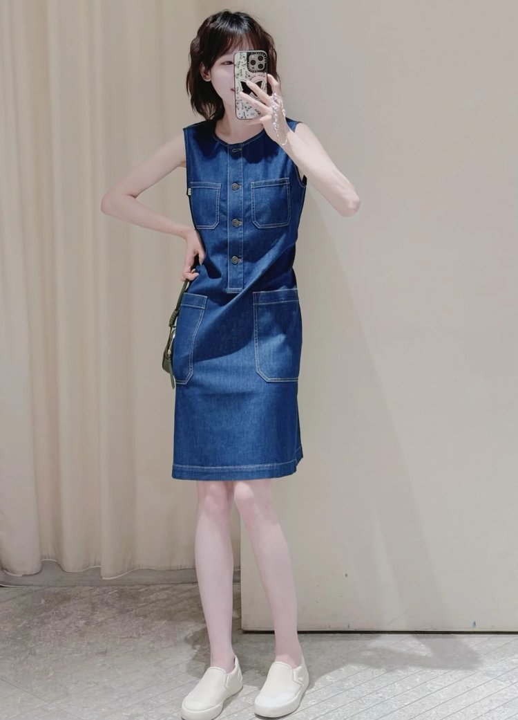 【高品质私服】【IC轻薄棉弹牛仔及膝连衣裙】经典藏青色牛仔 配色隽永 不易过时,优雅又性感N1281-CC【无标出货 介意慎拍】