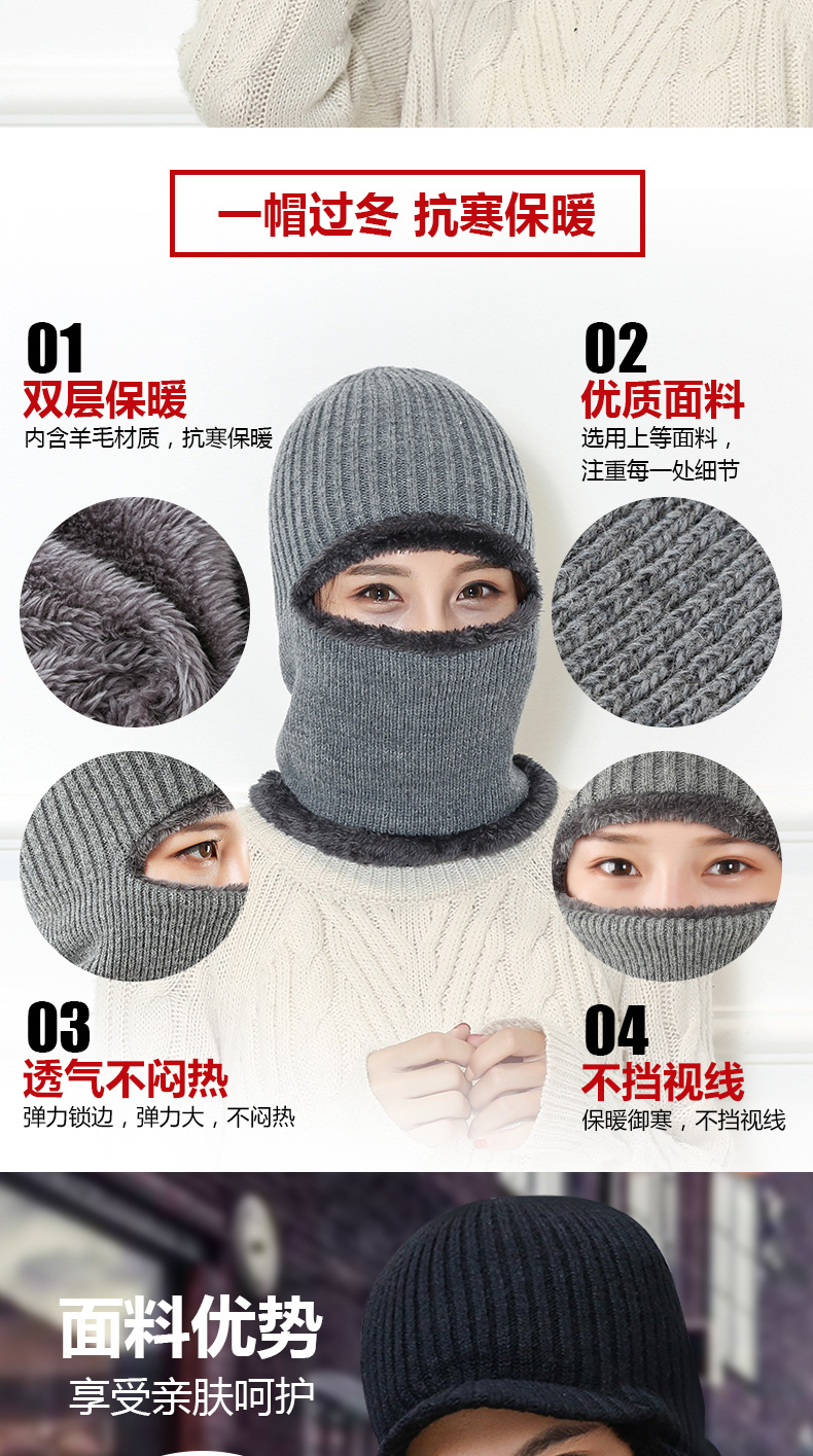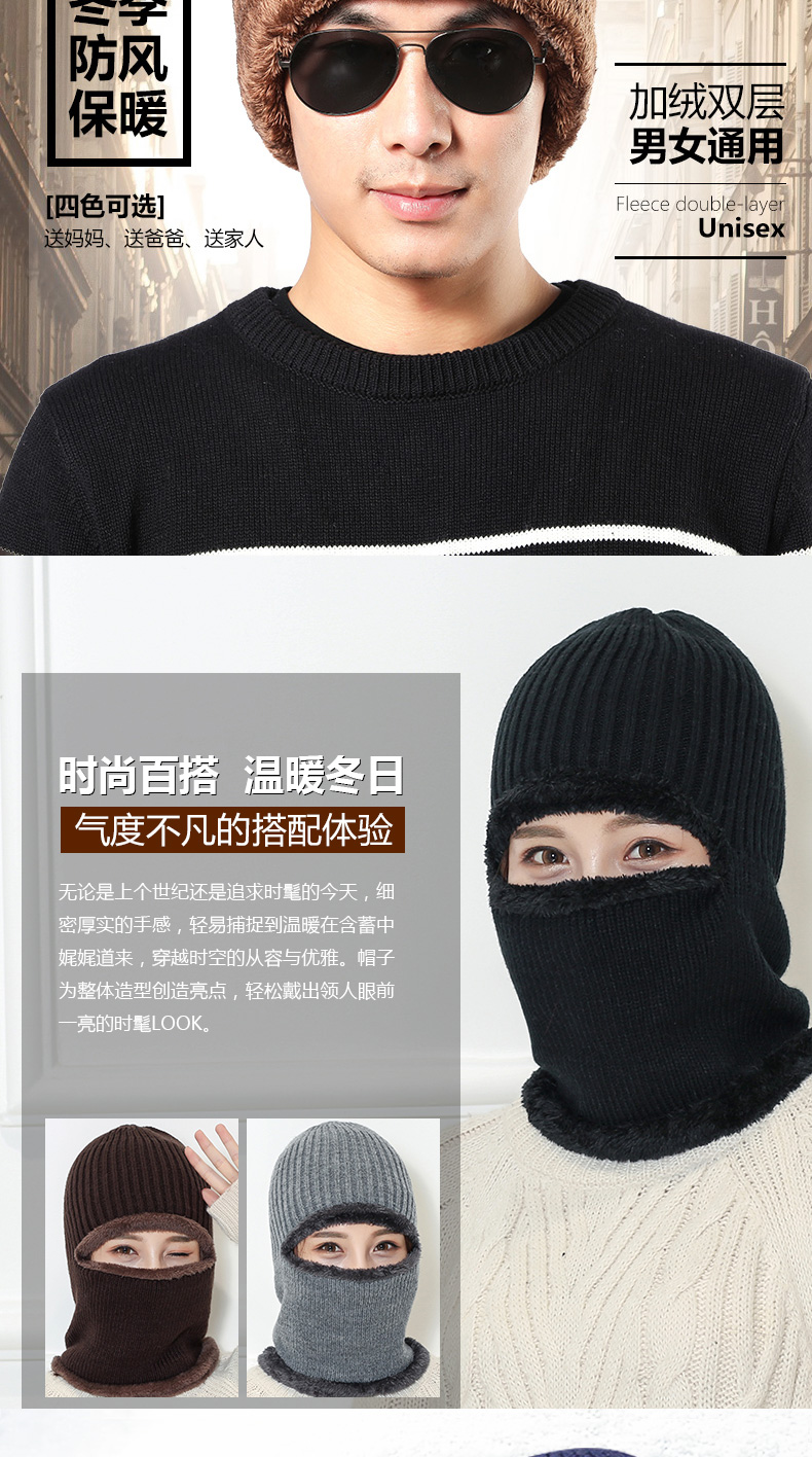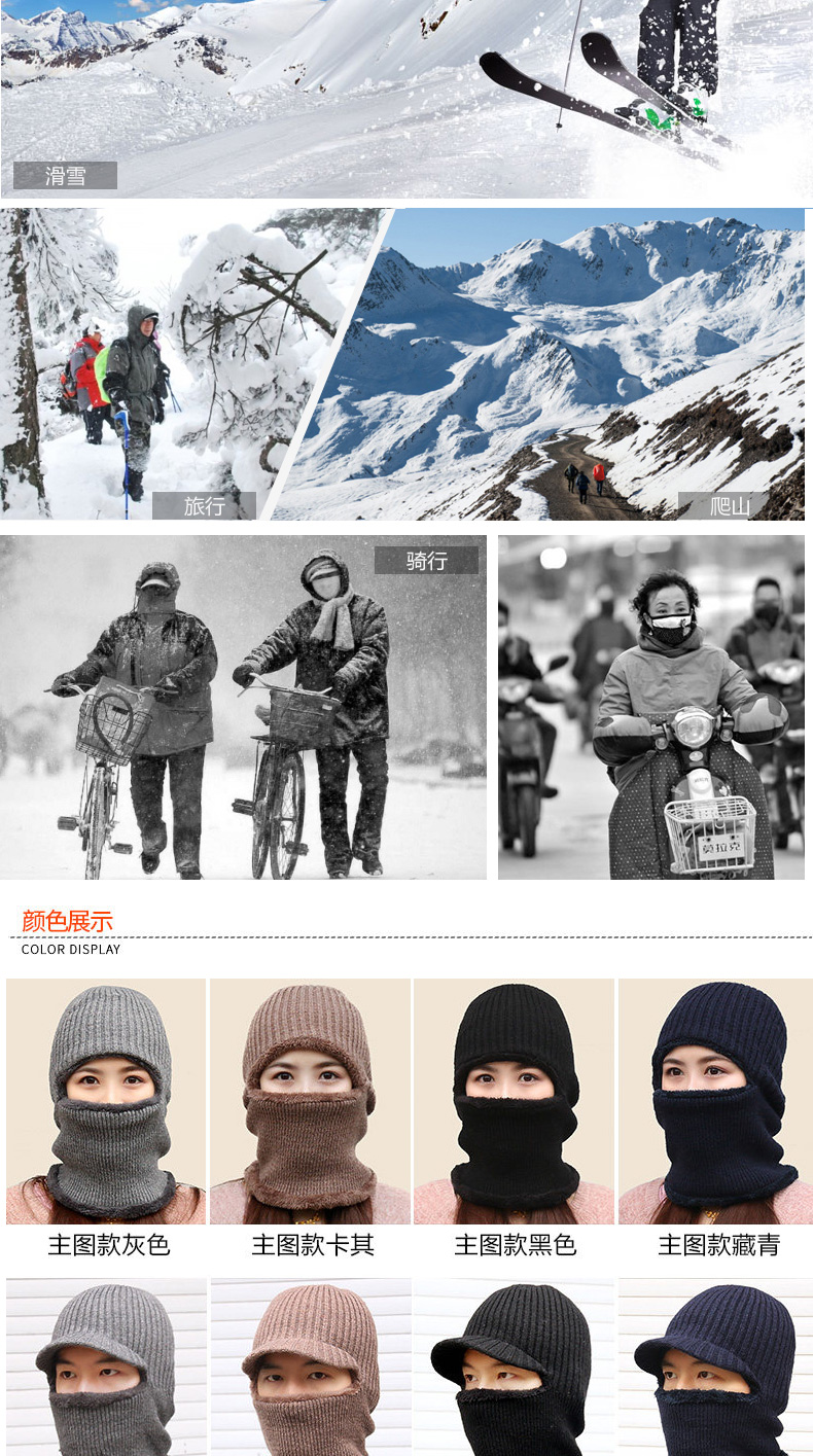 冬季毛线帽防寒男士套头保暖加绒防风围脖骑车蒙面包头女棉帽