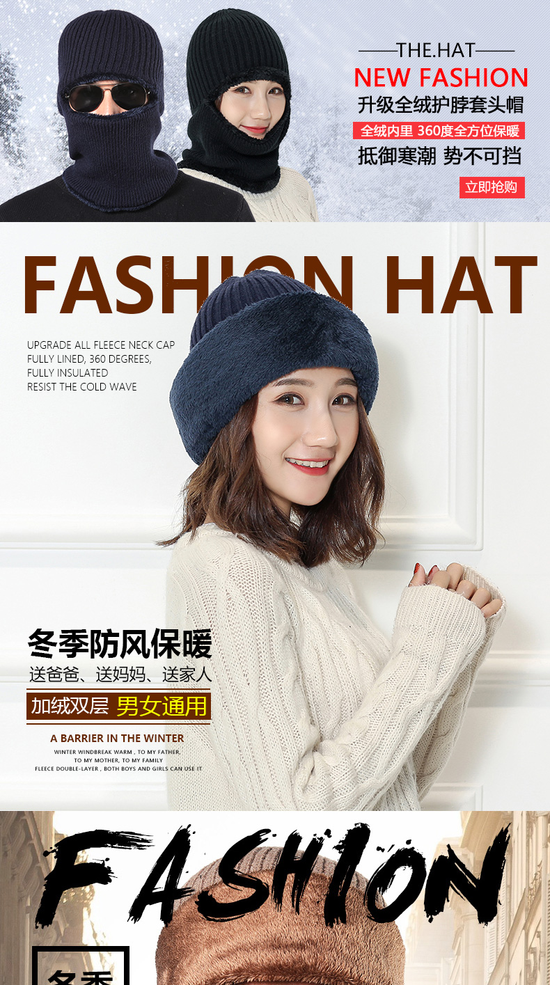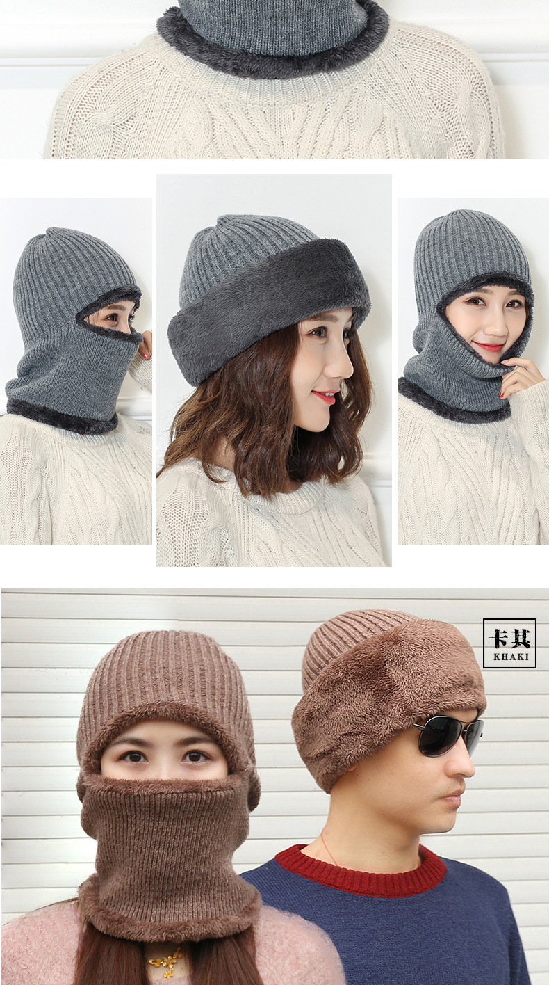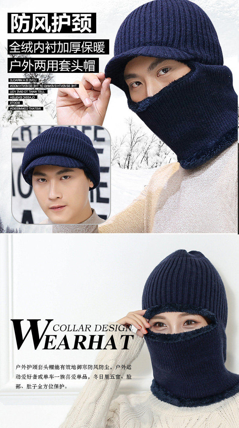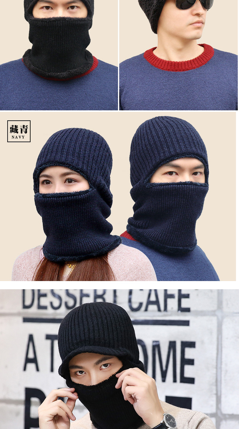 冬季毛线帽防寒男士套头保暖加绒防风围脖骑车蒙面包头女棉帽