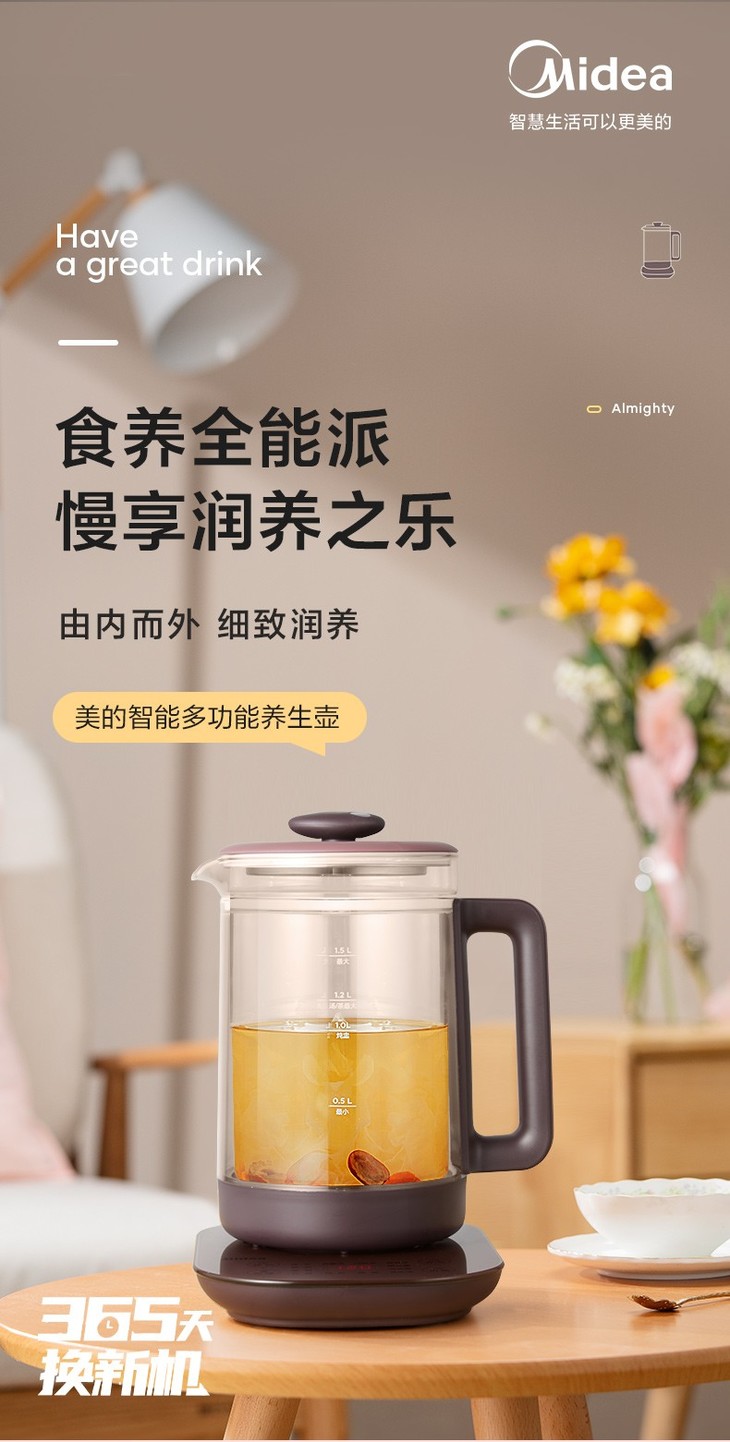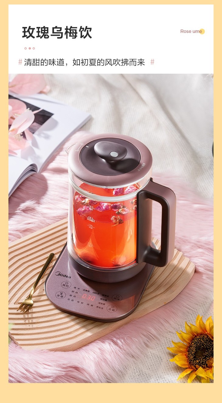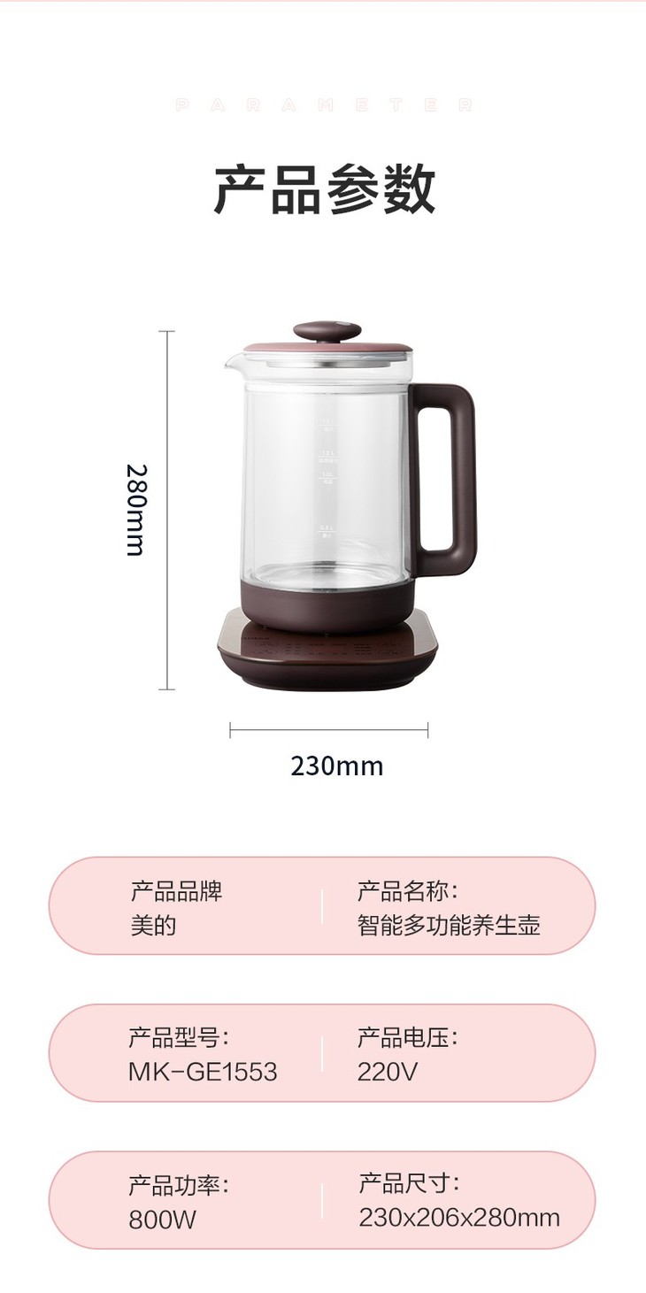美的(509647)壶煮茶器电水壶家用烧水壶煎壶 1.5L容量 双层防烫 4段温控 家用定时520 MK-GE1553
