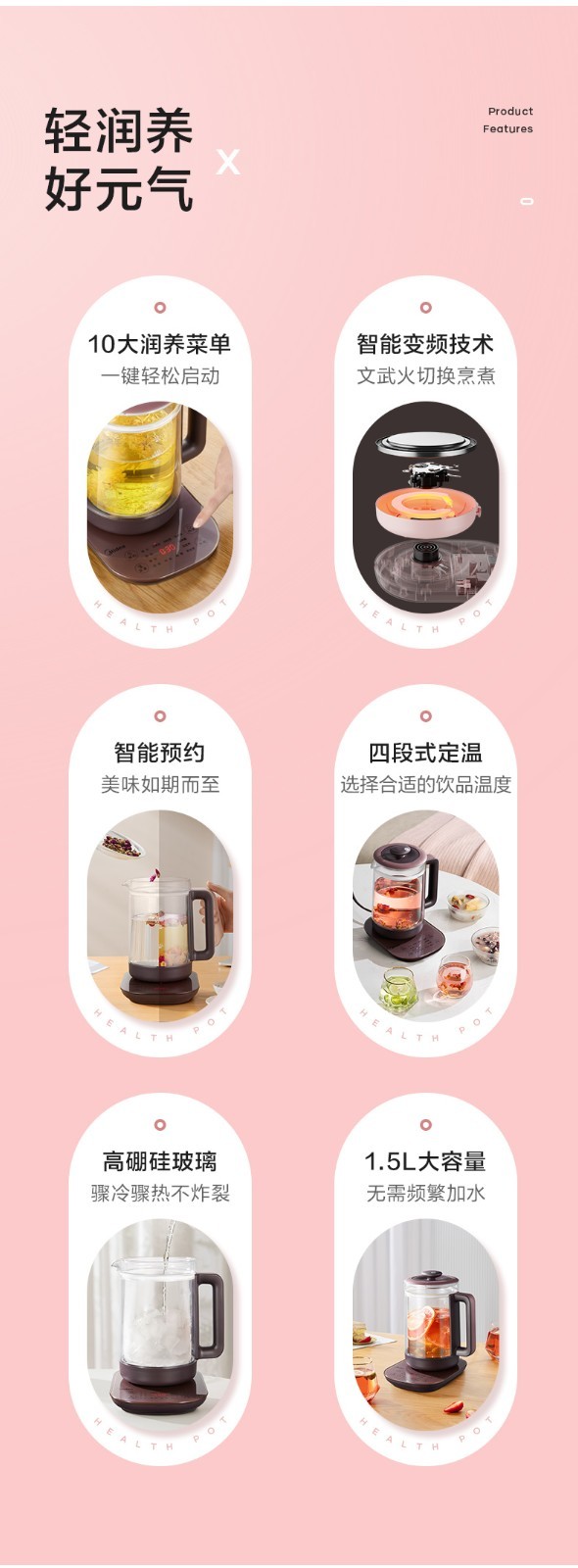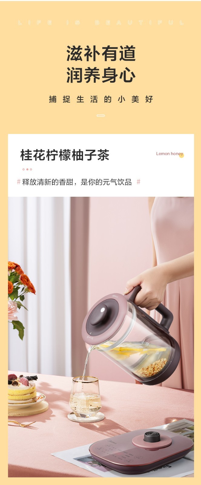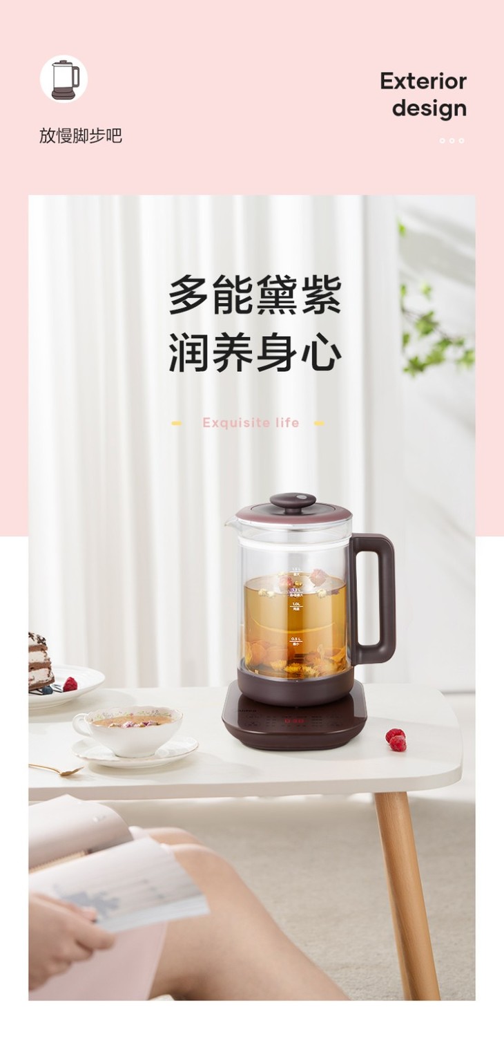 美的(509647)壶煮茶器电水壶家用烧水壶煎壶 1.5L容量 双层防烫 4段温控 家用定时520 MK-GE1553