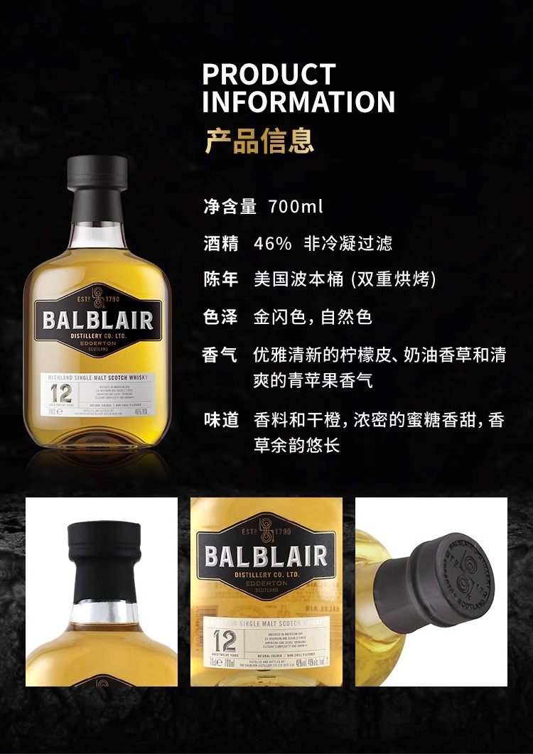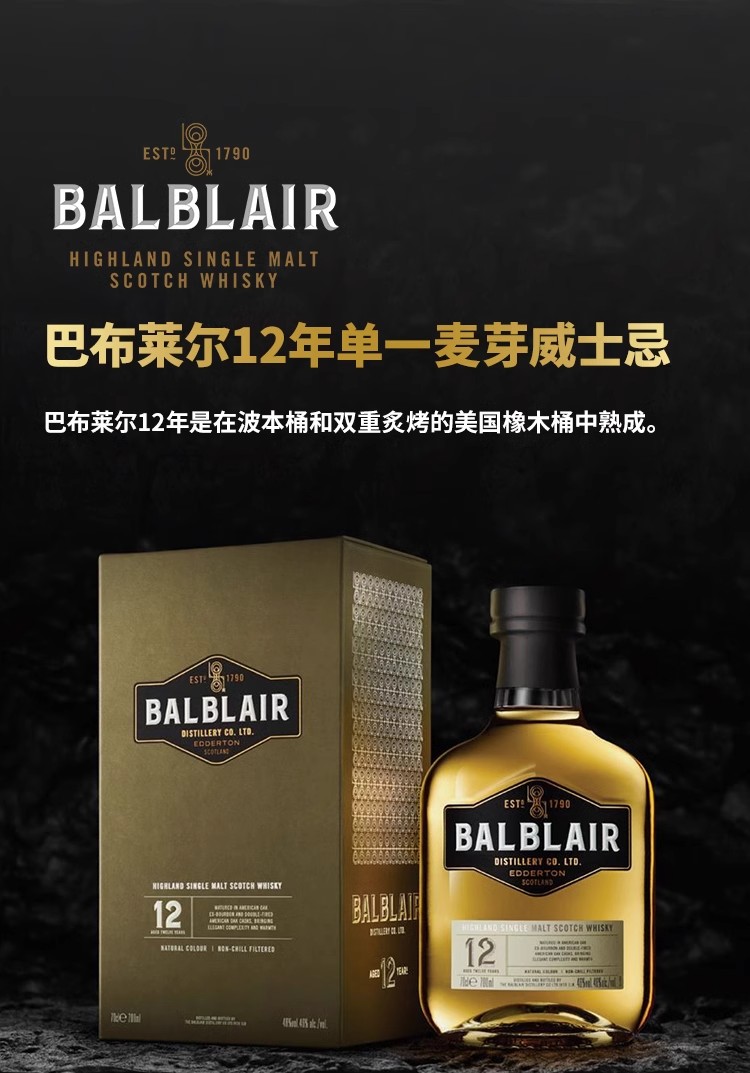BALBLAIR 巴布莱尔12年15年18/25年单一麦芽威士忌英国苏格兰纯麦