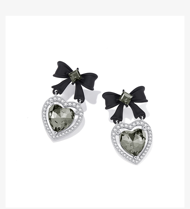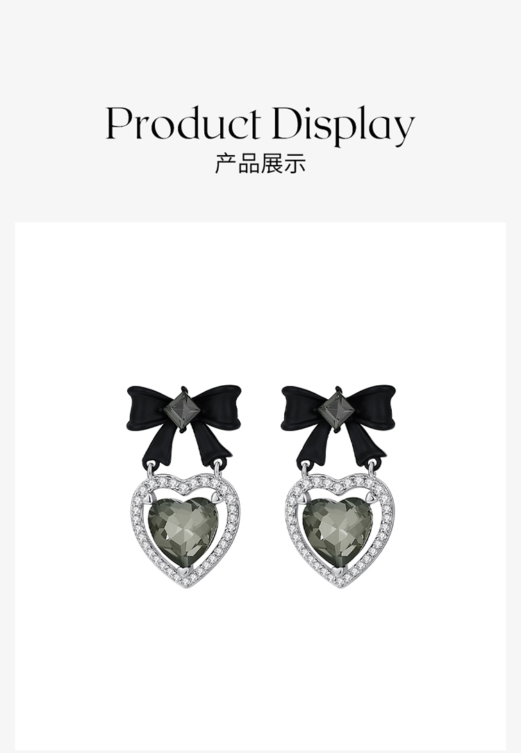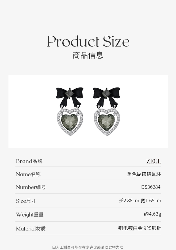 ZEGL设计师黑公主系列黑色蝴蝶结耳环女复古赫本风耳钉银针耳饰品