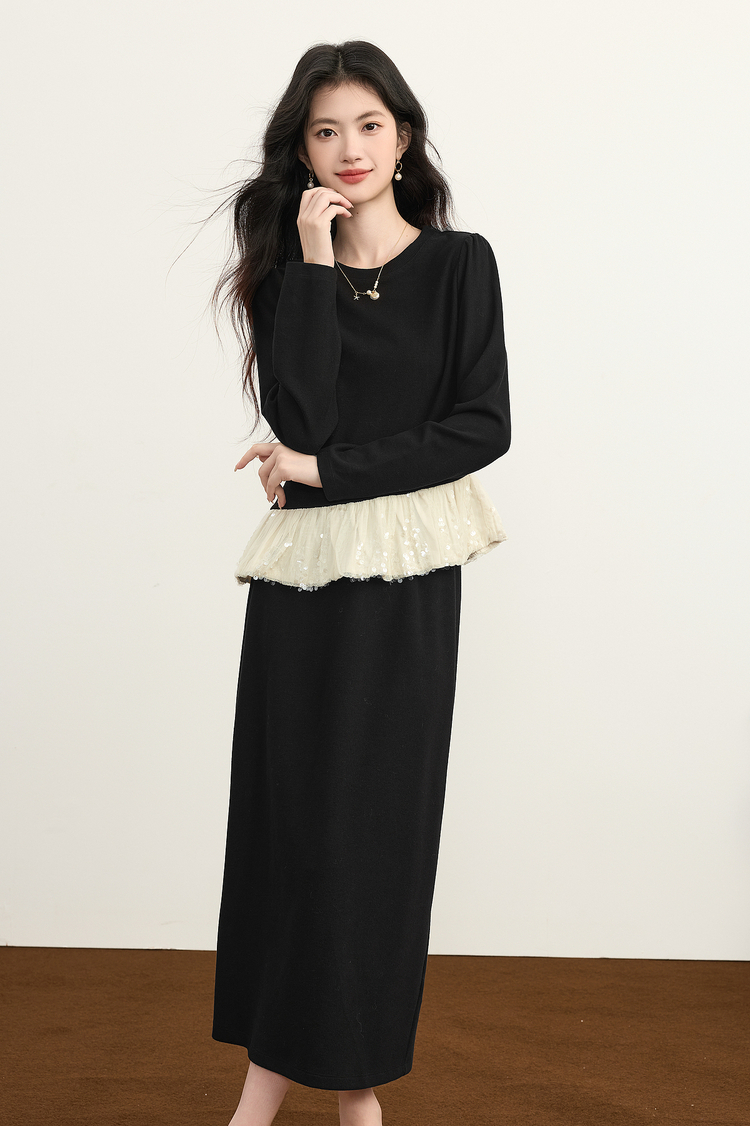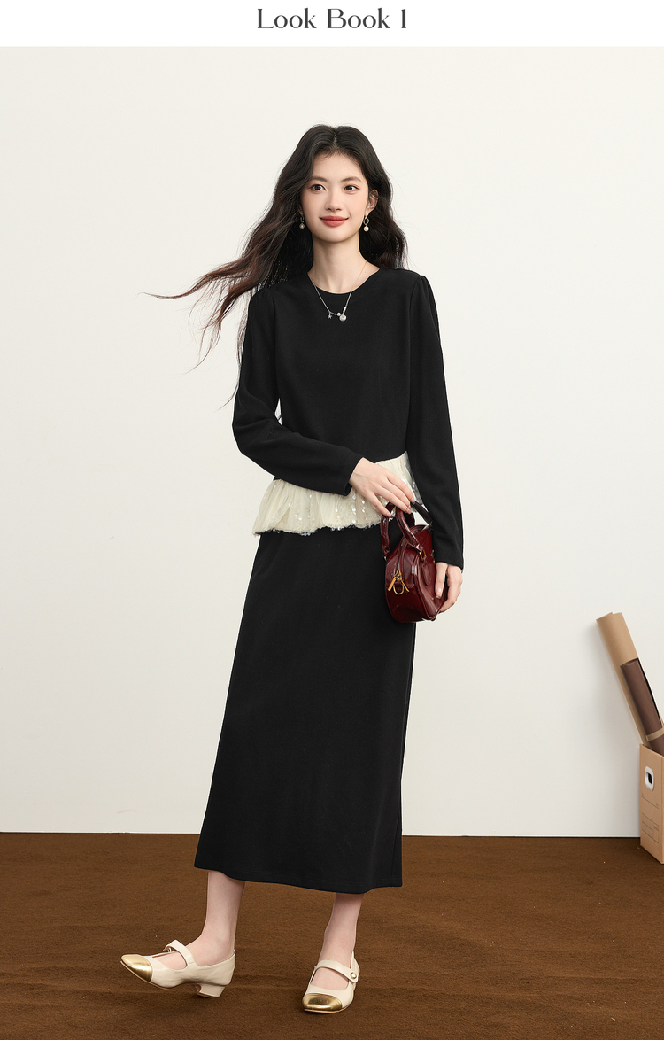 【12/03新品】熙世界千金小香风荷叶边上衣半身裙两件套装女秋冬气质穿搭一整套