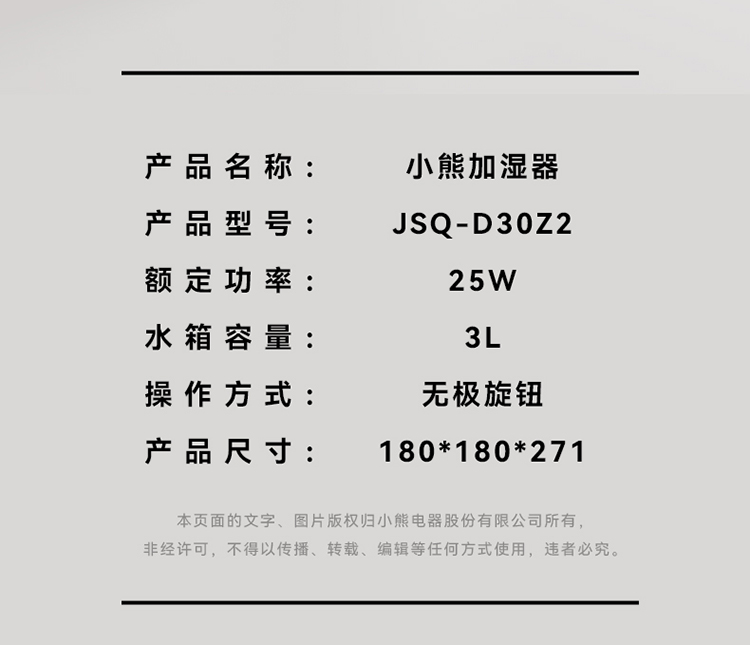 小熊 加湿器/JSQ-D30Z2