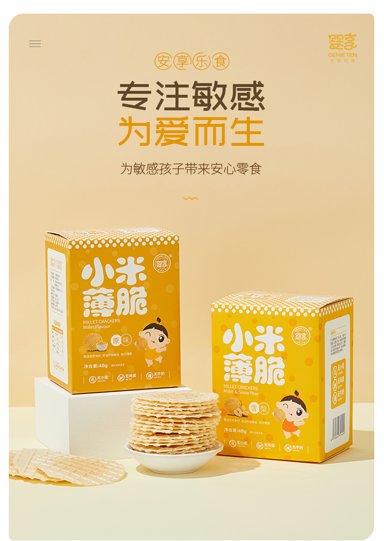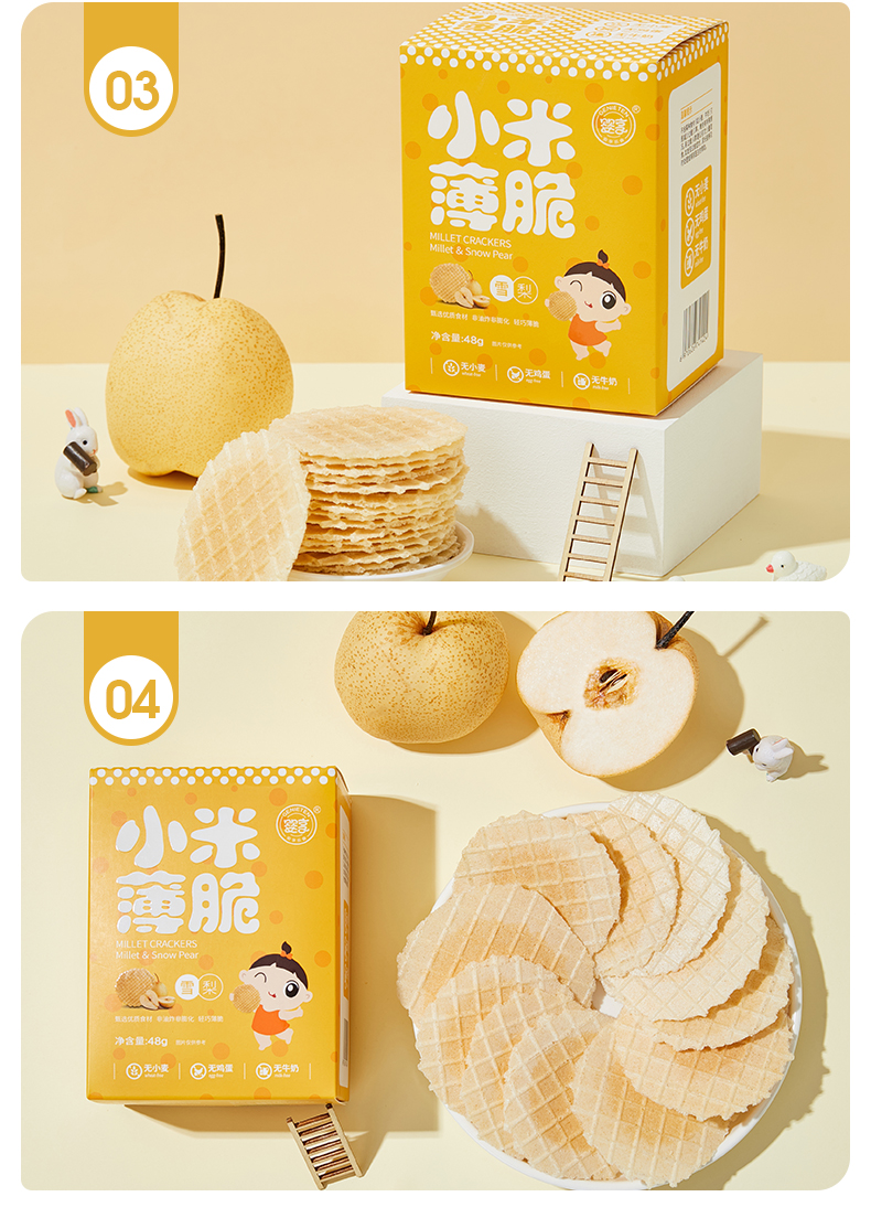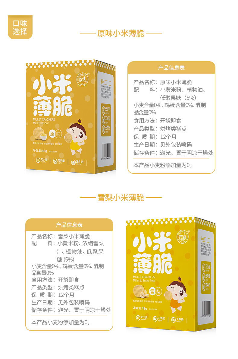 婴享无小麦无蛋无奶小米薄脆童零食饼干原味\雪梨味