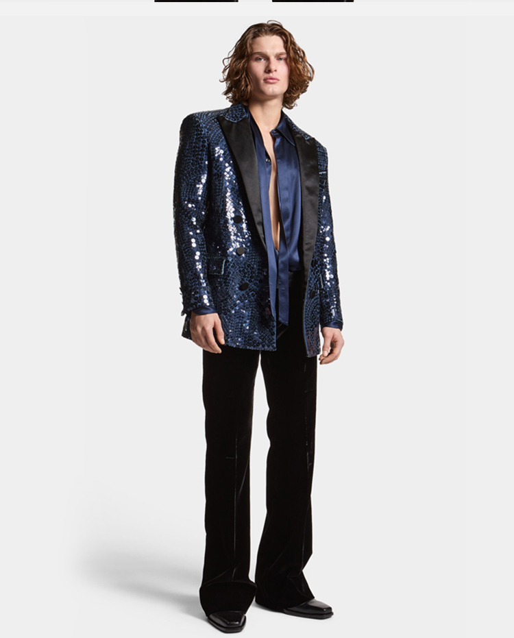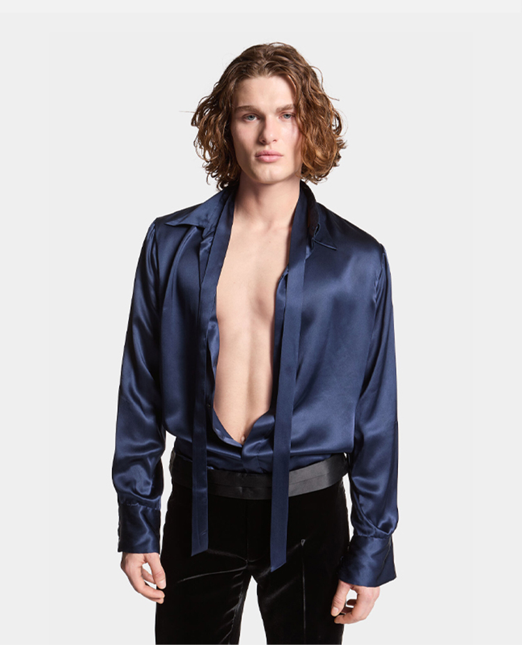 DSQUARED2 男士丝缎性感领带长袖衬衫 蓝色 S71DM0745 D35123 486