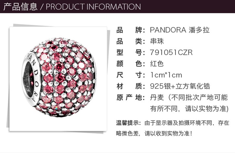 PANDORA/潘多拉 红色锆石串珠 791051CZRJPY带授权招加盟代理
