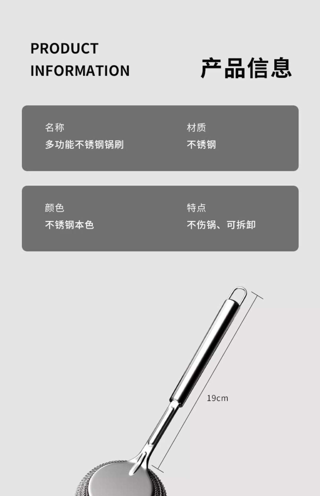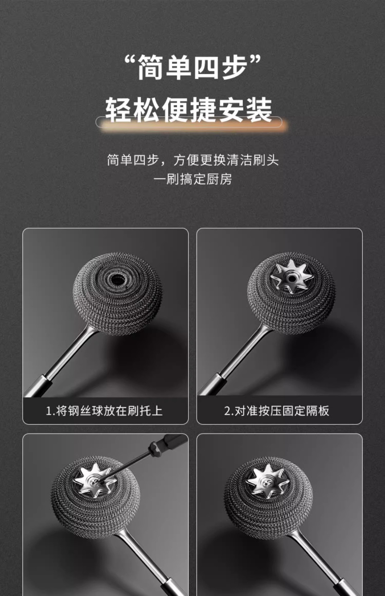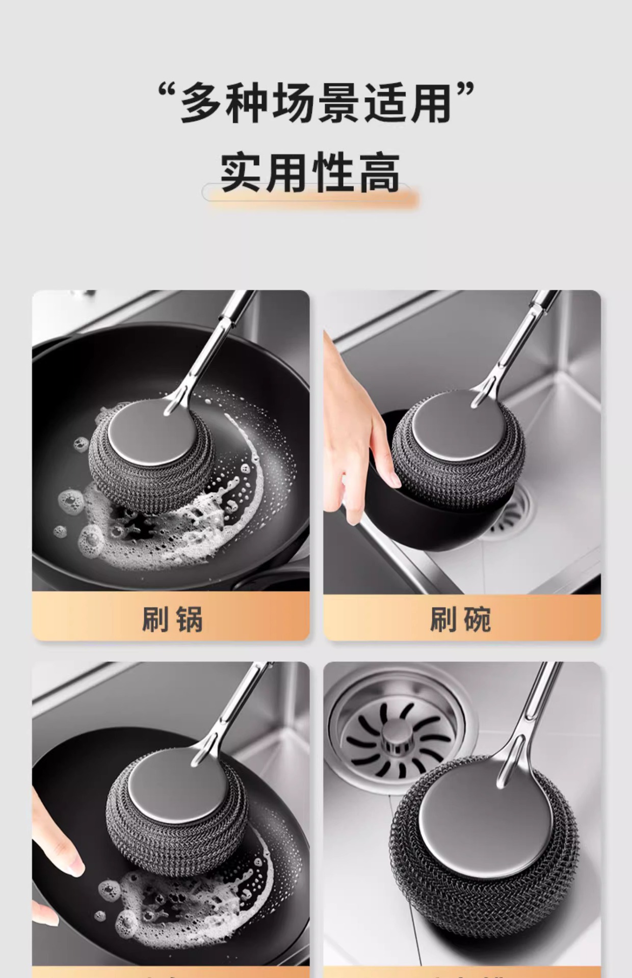 「加赠替换头!新款不锈钢锅刷」厨房用品洗锅钢丝球刷 长柄洗碗清洁工具刷子刷锅