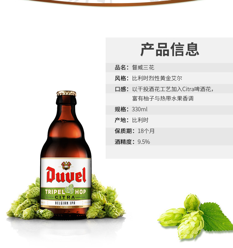 督威(DuveL)比利时 原瓶进口 精酿 三花啤酒 330ml*6瓶
