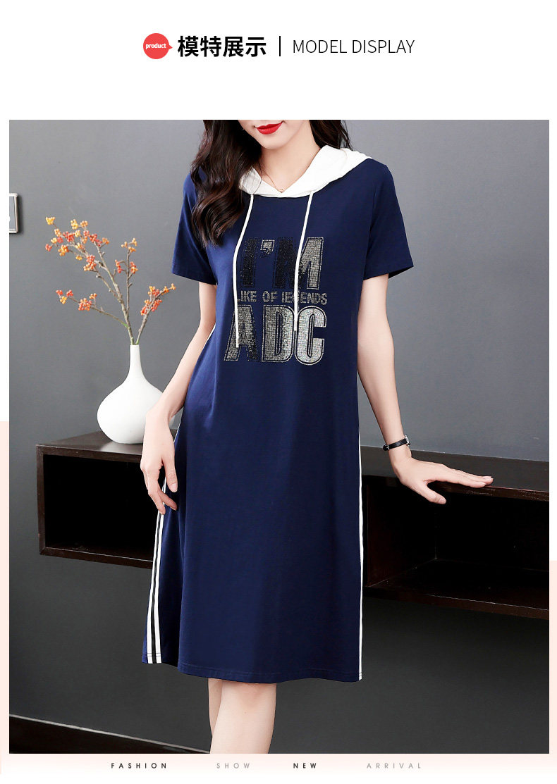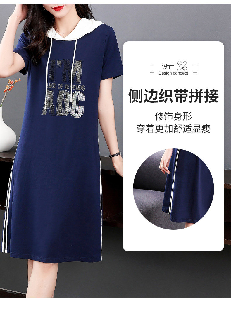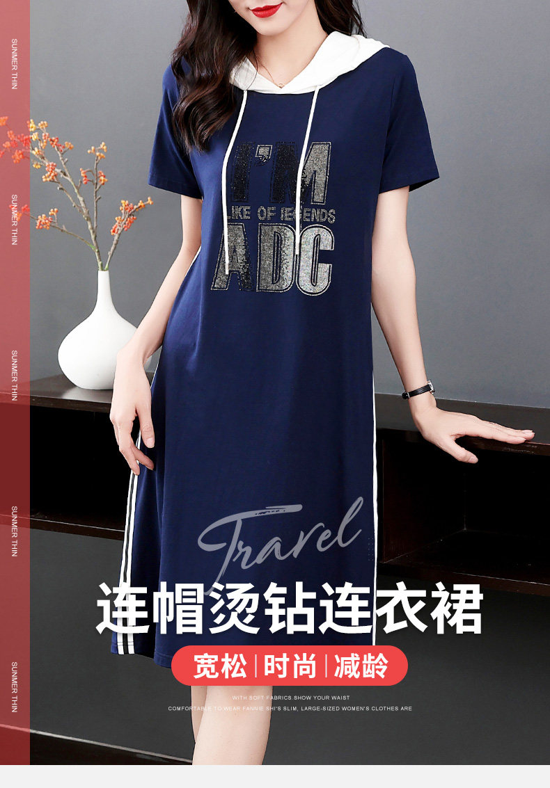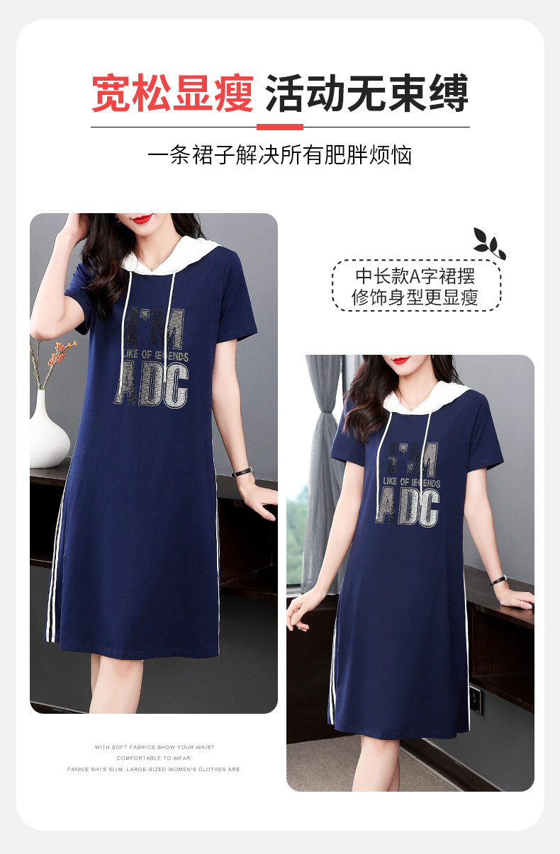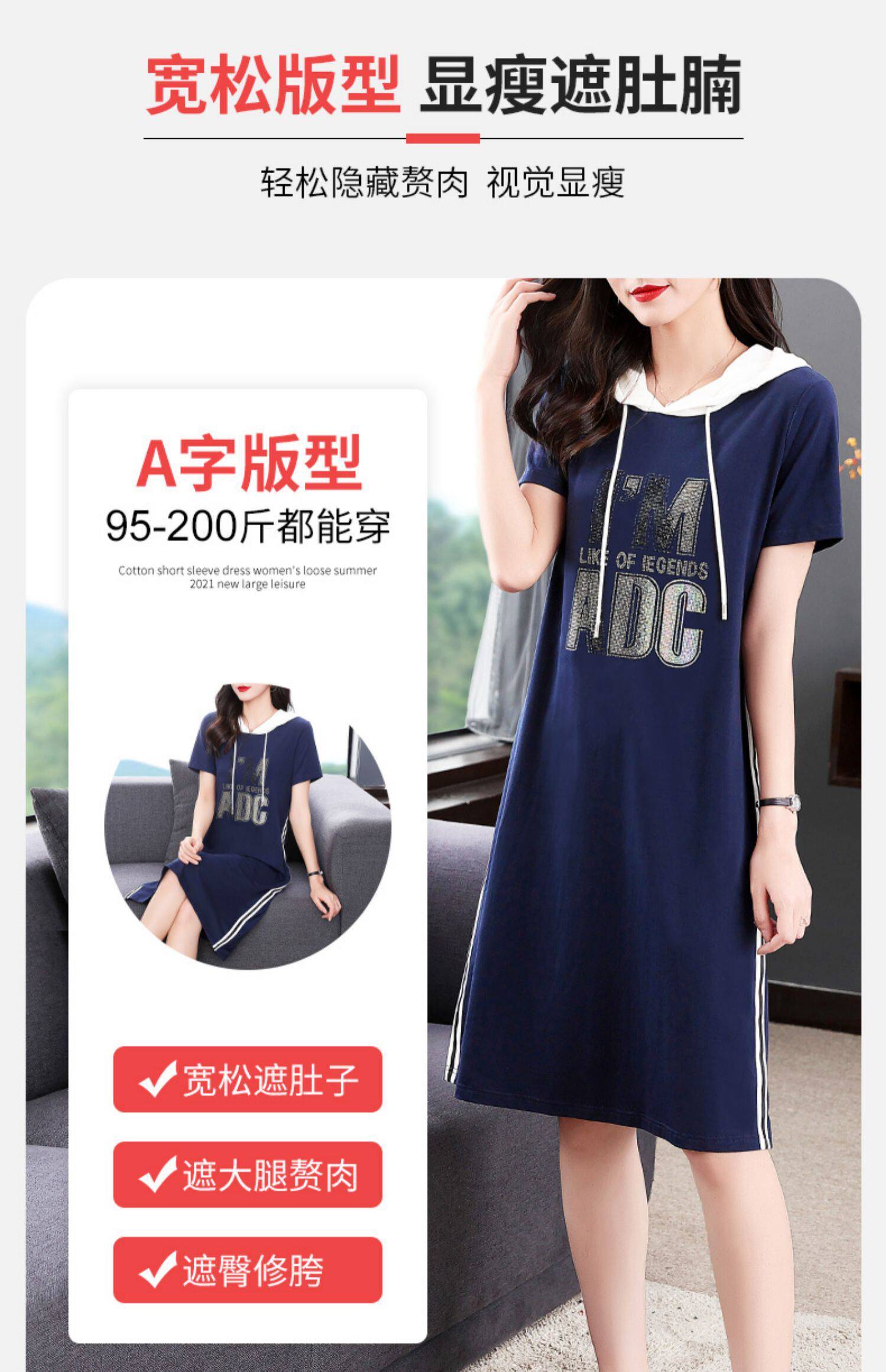 纯棉休闲连衣裙大码胖mm显瘦遮肚短袖卫衣裙子女减龄夏装2026新款