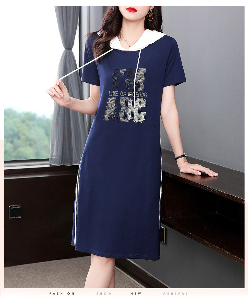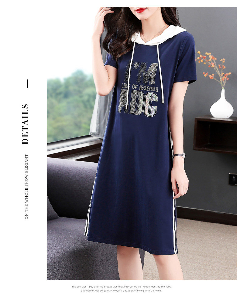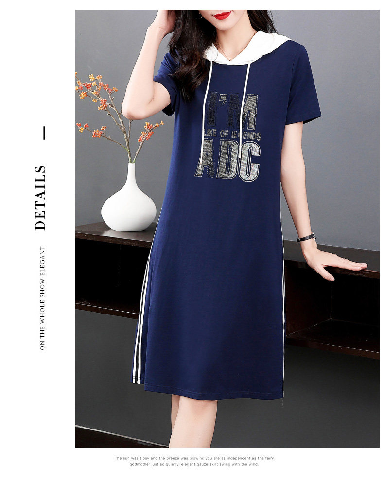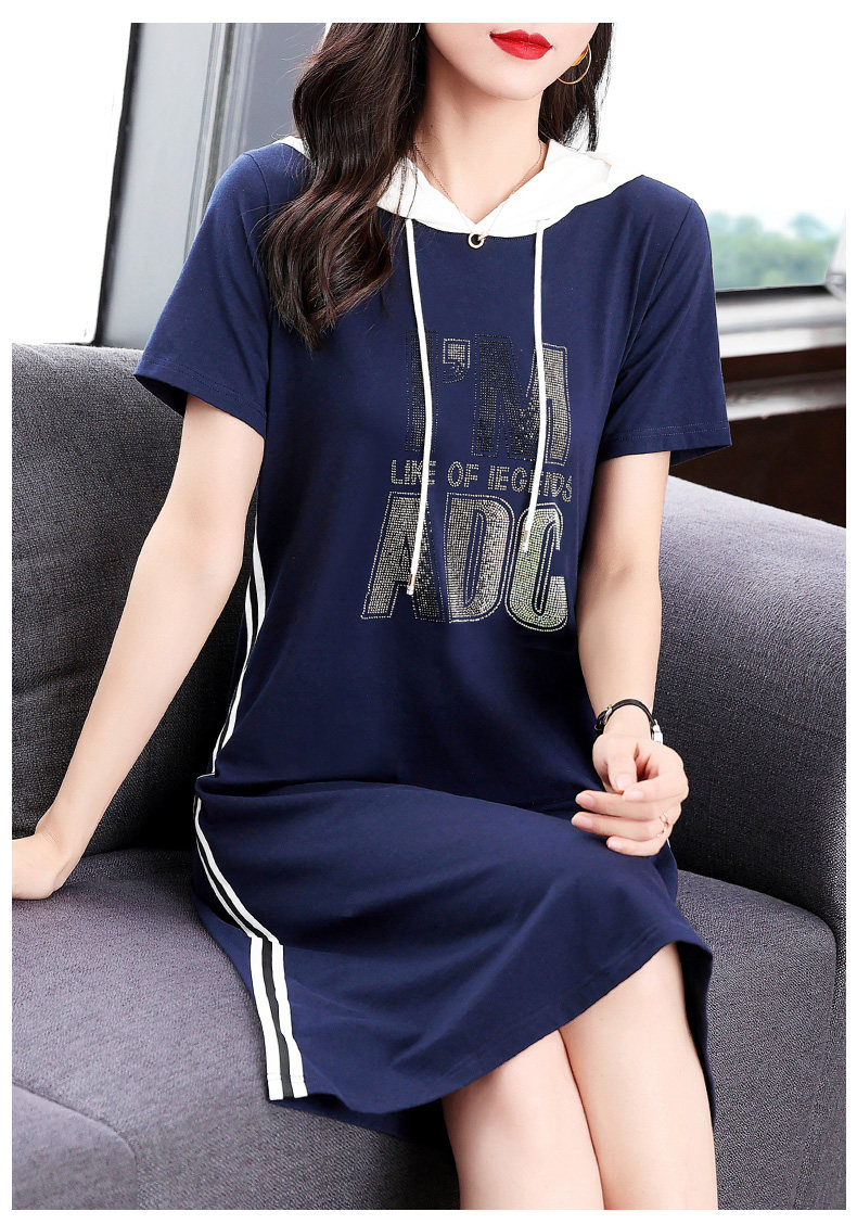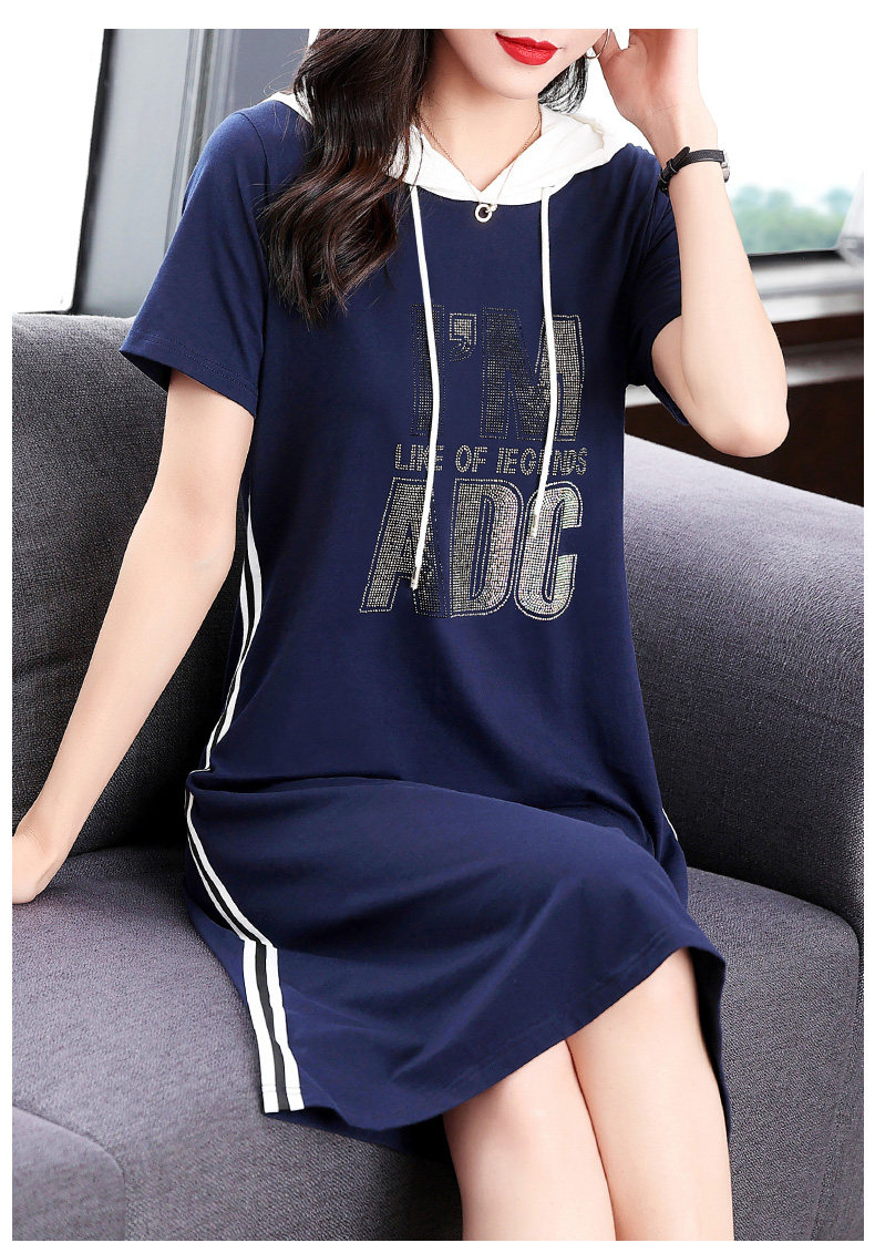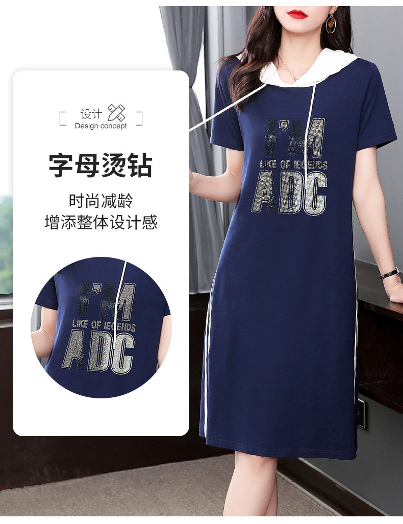 纯棉休闲连衣裙大码胖mm显瘦遮肚短袖卫衣裙子女减龄夏装2026新款