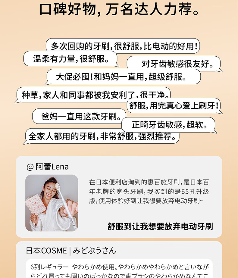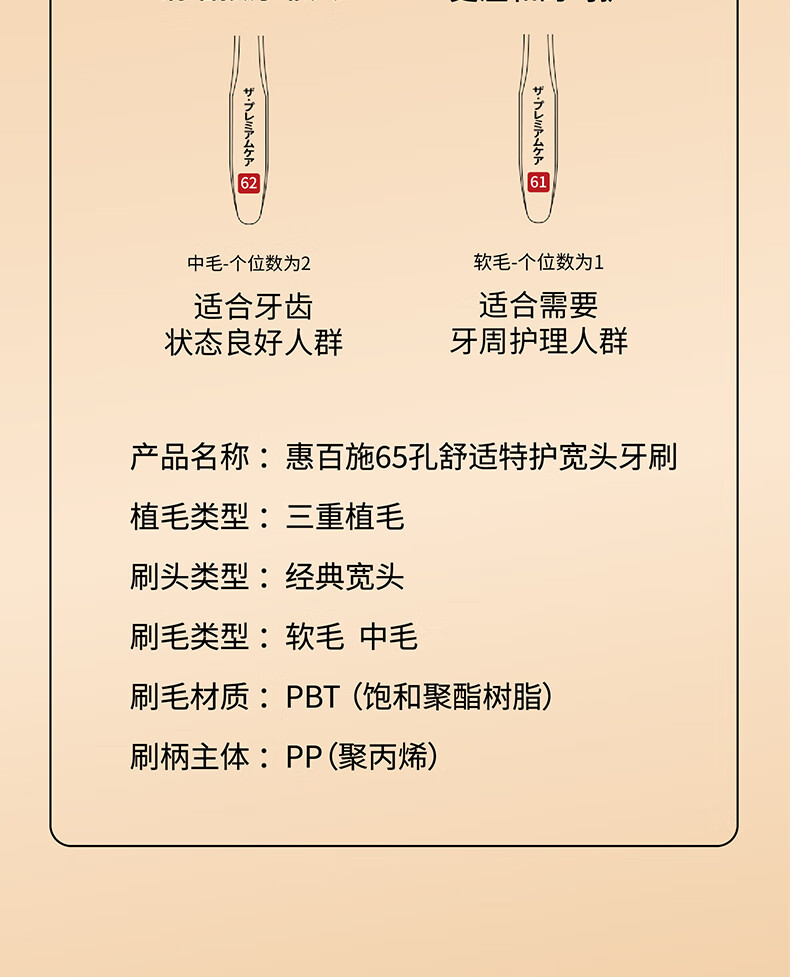 【分仓直发包邮】惠百施65孔经典宽头牙刷成人软毛61号(1支装颜色随机)