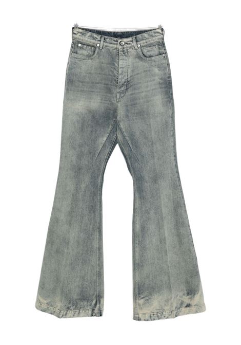 这款 BOLAN 牛仔裤是高腰修身版型,六口袋,及地微喇裤腿剪裁。裤腰采用腰部纽扣和隐形纽扣闭合。裤腰配有腰带环和口袋铆钉,后背有带明线缝线的贴袋。