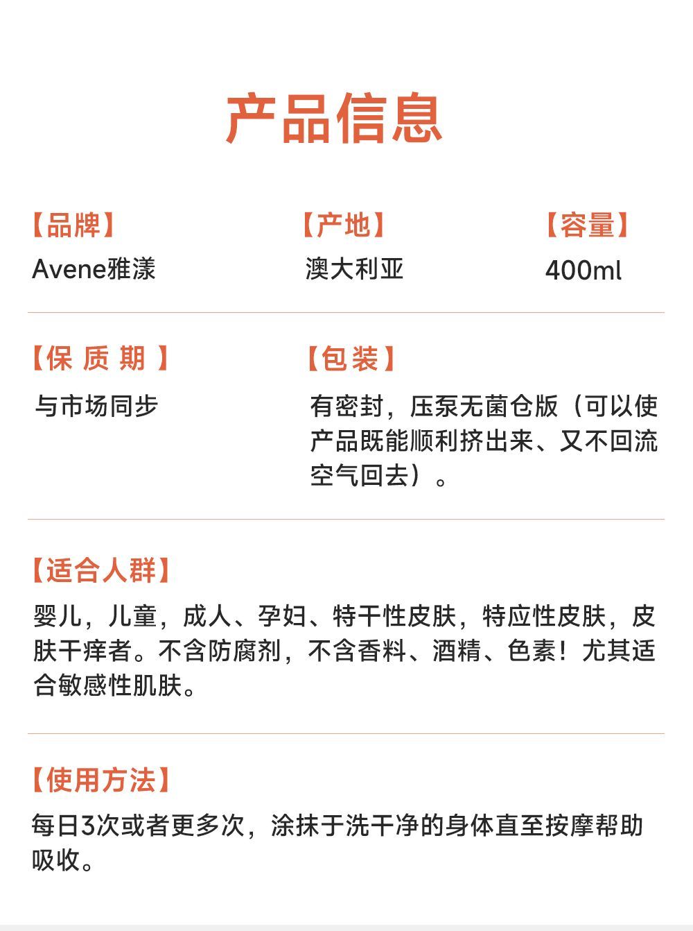 【跨境】AVENE雅漾25年款AD膏400ml(清爽款)--效期2028年1月